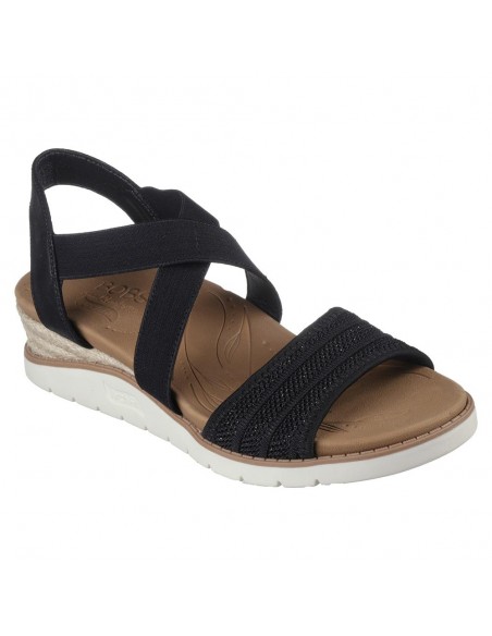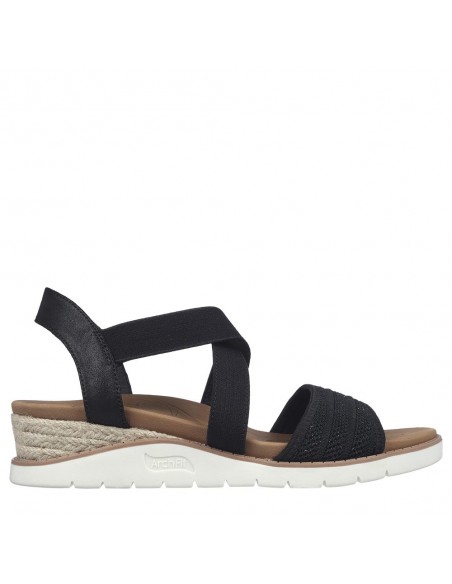 Descripción: Sandalia de mujer Skechers ARCH FIT BEACH KISS-BOHO BEYO en suave tejido negro con ajuste elástico cruzado al tono. Cómoda Plantilla Arch Fit, con más ajuste en el arco ofreciendo más estabilidad.