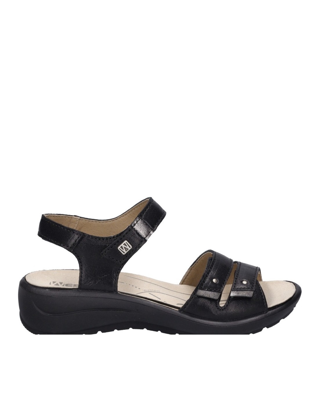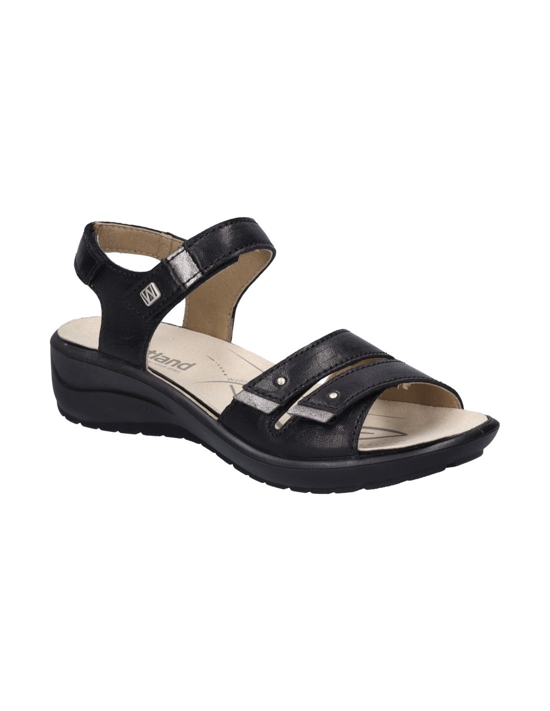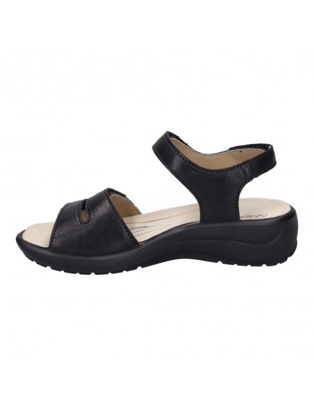 Descripción: Sandalia mujer Westland by Josef Seibel ANNECY-02 en piel negra y plata. Tiras ajustables con velcro. Plantilla extraible anatómica y acolchada. Cómoda cuña ligera de poliuretano antideslizante.