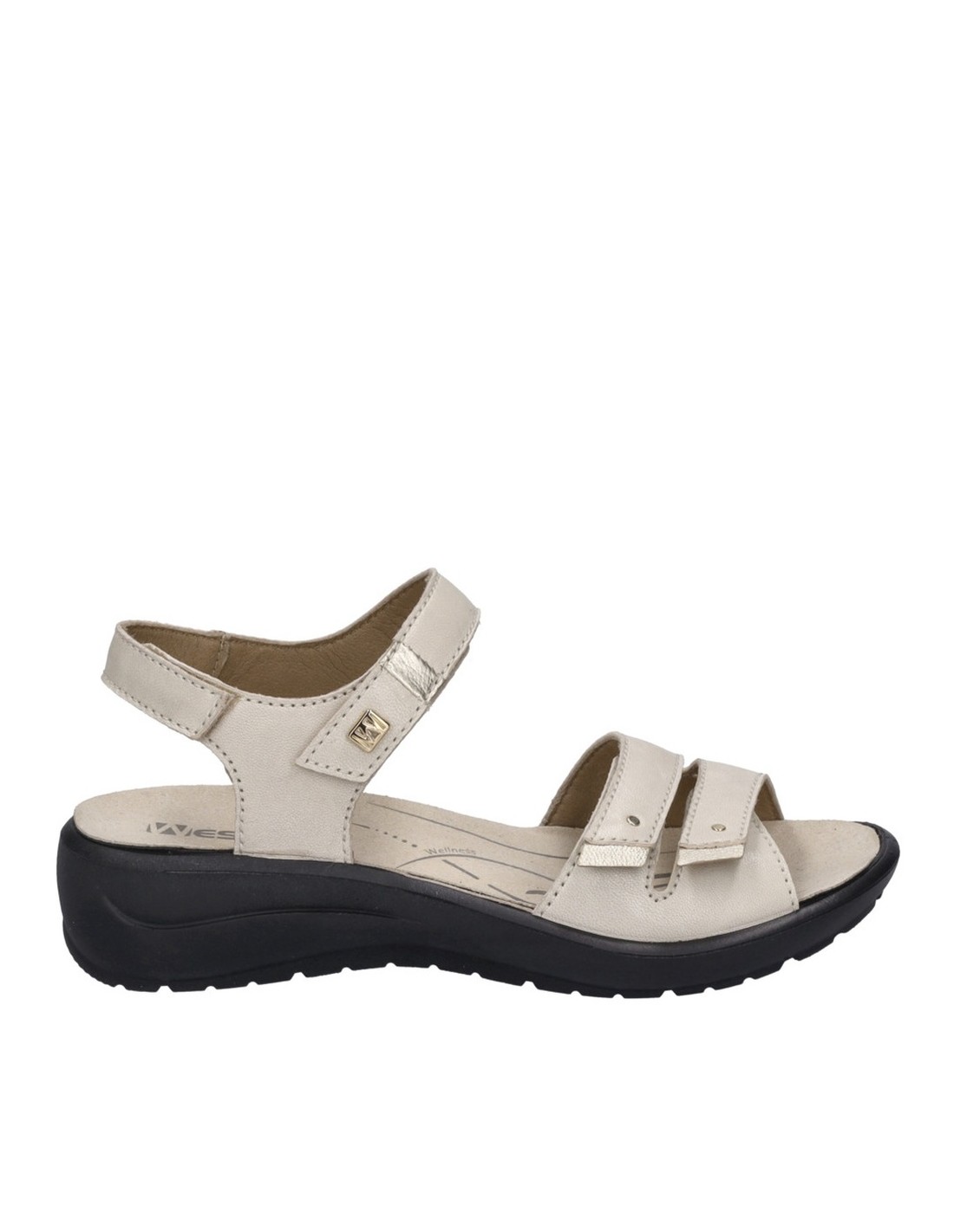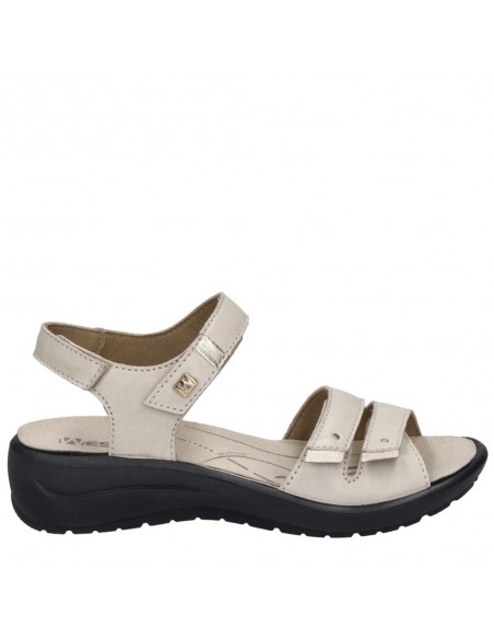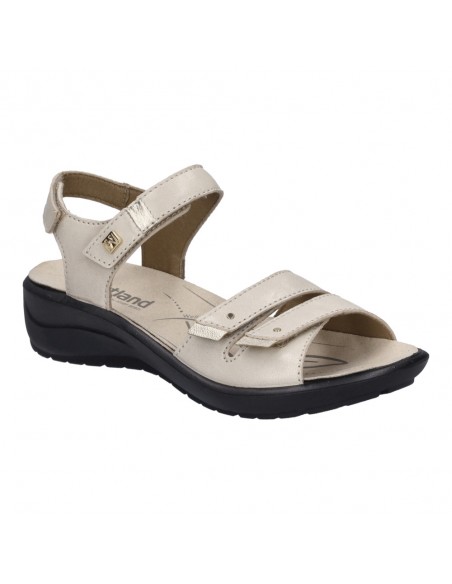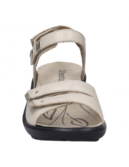 Descripción: Sandalia mujer Westland by Josef Seibel ANNECY-02 en piel beig y detalles oro. Tiras ajustables con velcro. Plantilla extraible anatómica y acolchada. Cómoda cuña ligera de poliuretano antideslizante