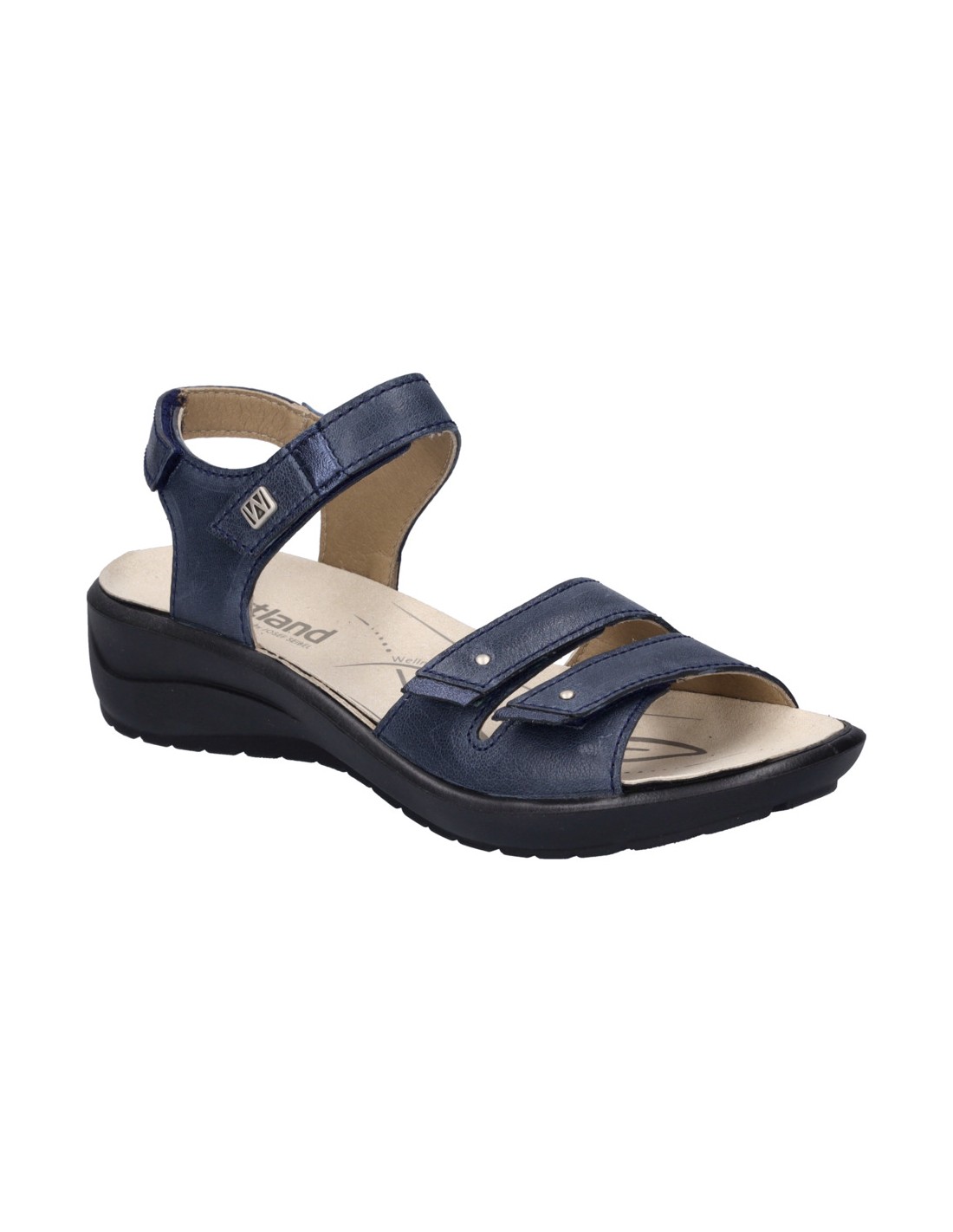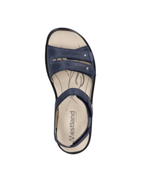 Descripción: Sandalia mujer Westland by Josef Seibel ANNECY-02 en piel azul y detalles en plata. Tiras ajustables con velcro. Plantilla extraible anatómica y acolchada. Cómoda cuña ligera de poliuretano antideslizante.