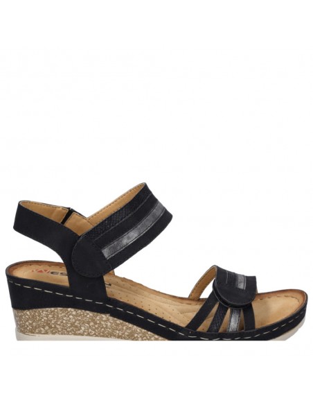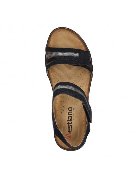 Descripción: Sandalia mujer Westland by Josef Seibel SAVOIE-03 en suave tejido negro. Tiras ajustables con velcro. Plantilla anátómica. Cómoda cuña ligera, flexible y antideslizante.