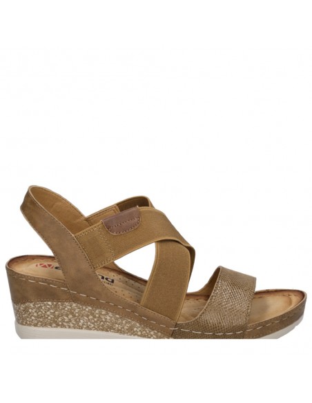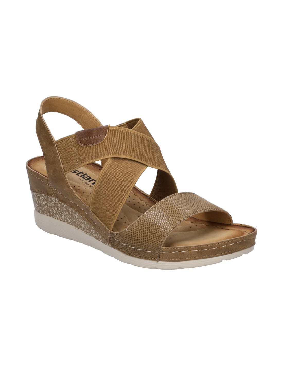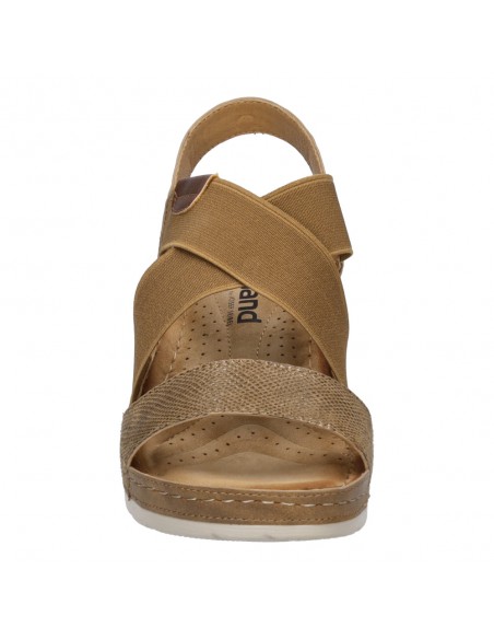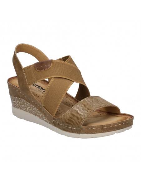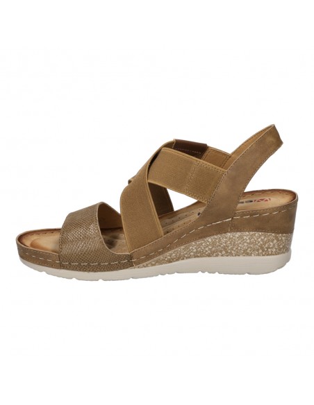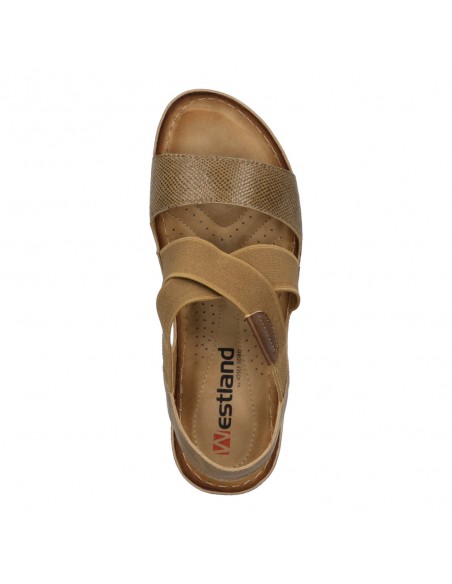 Descripción: Sandalia mujer Westland by Josef Seibel SAVOIE-03 en suave tejido camel y tiras cruzadas elásticas ajustables . Plantilla anatómica. Cómoda cuña ligera, flexible y antideslizante.