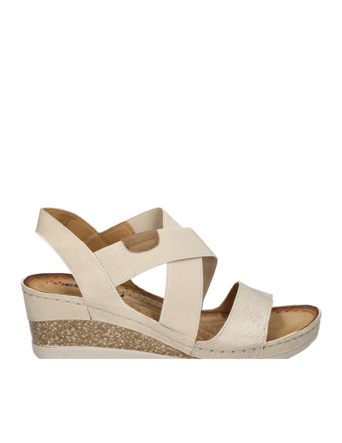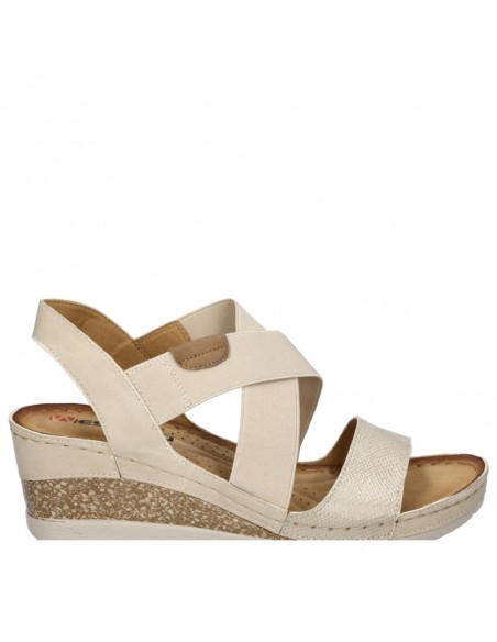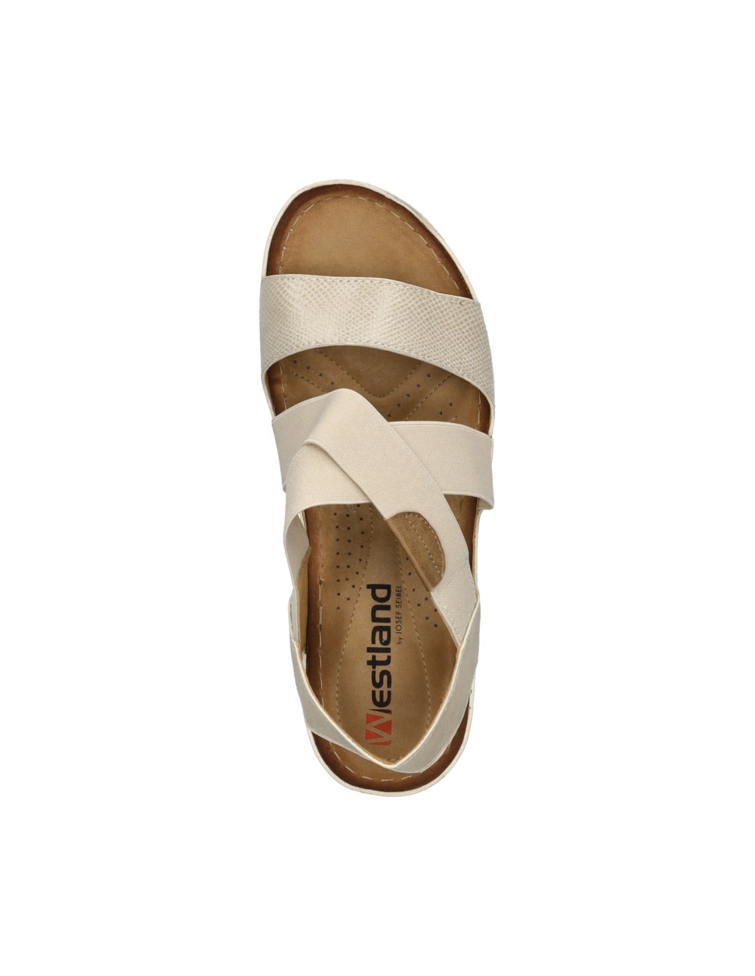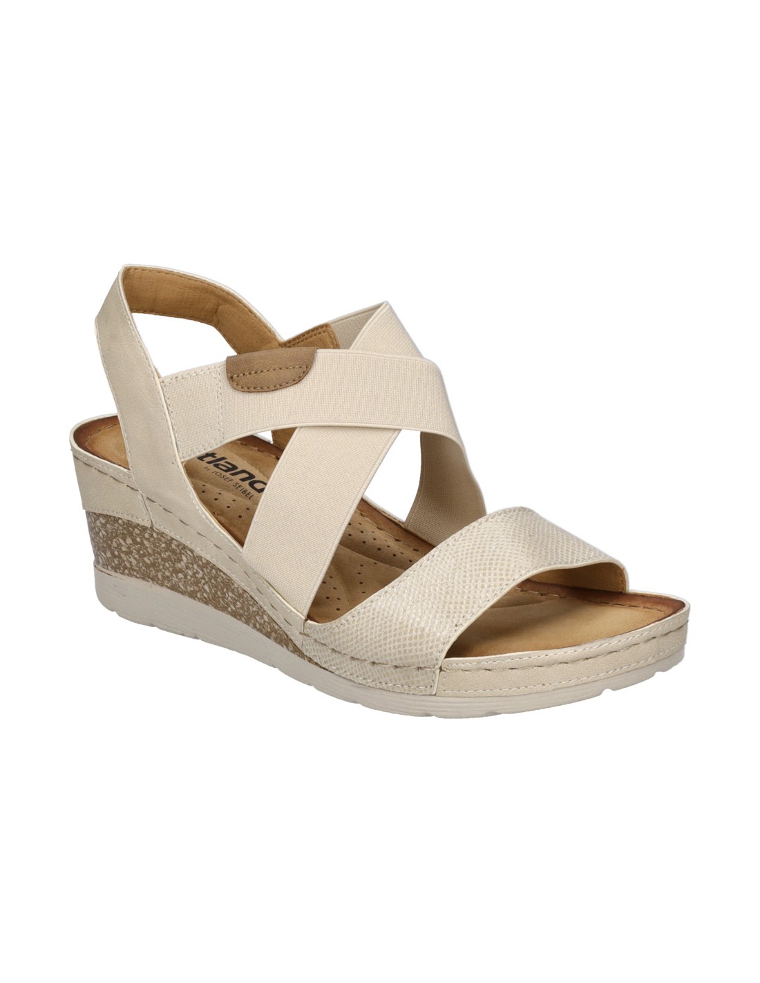 Descripción: Sandalia mujer Westland by Josef Seibel SAVOIE-03 en suave tejido beig y tiras cruzadas elásticas ajustables . Plantilla anatómica. Cómoda cuña ligera, flexible y antideslizante.