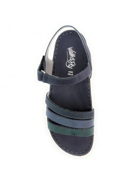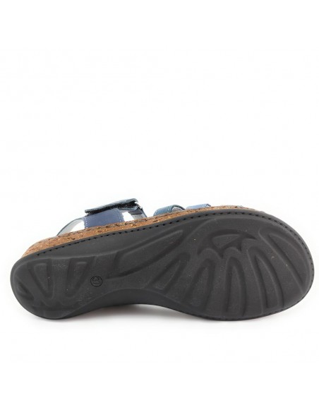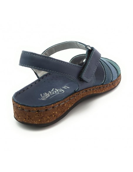 Descripción: Sandalia mujer WALK & FLY 3861-42670 en suave piel natural tonos azules. Forro y plantilla acolchada de gel forrados en piel. Suela ligera cosida a mano para mayor flexibilidad con piso antideslizante.