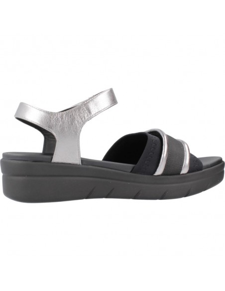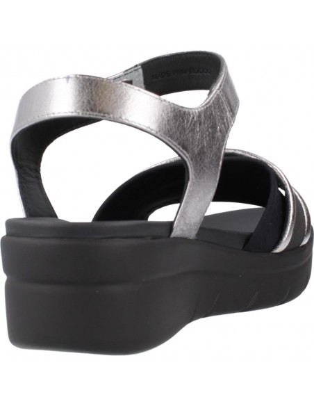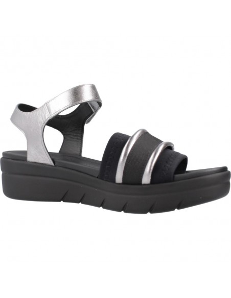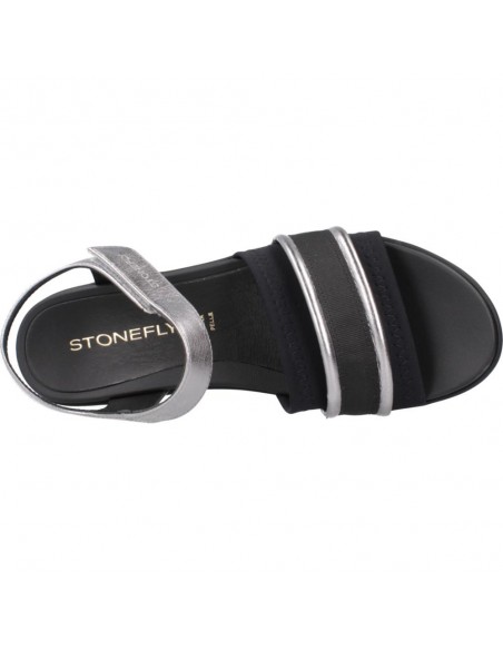 Descripción: Cómoda y elegante sandalia mujer de Stonefly Aqua-III-7 en suave piel metal antracita y licra negra. Ajuste de velcro en la tira tobillera. Planta con tecnología BLUSOFT amortiguadora.