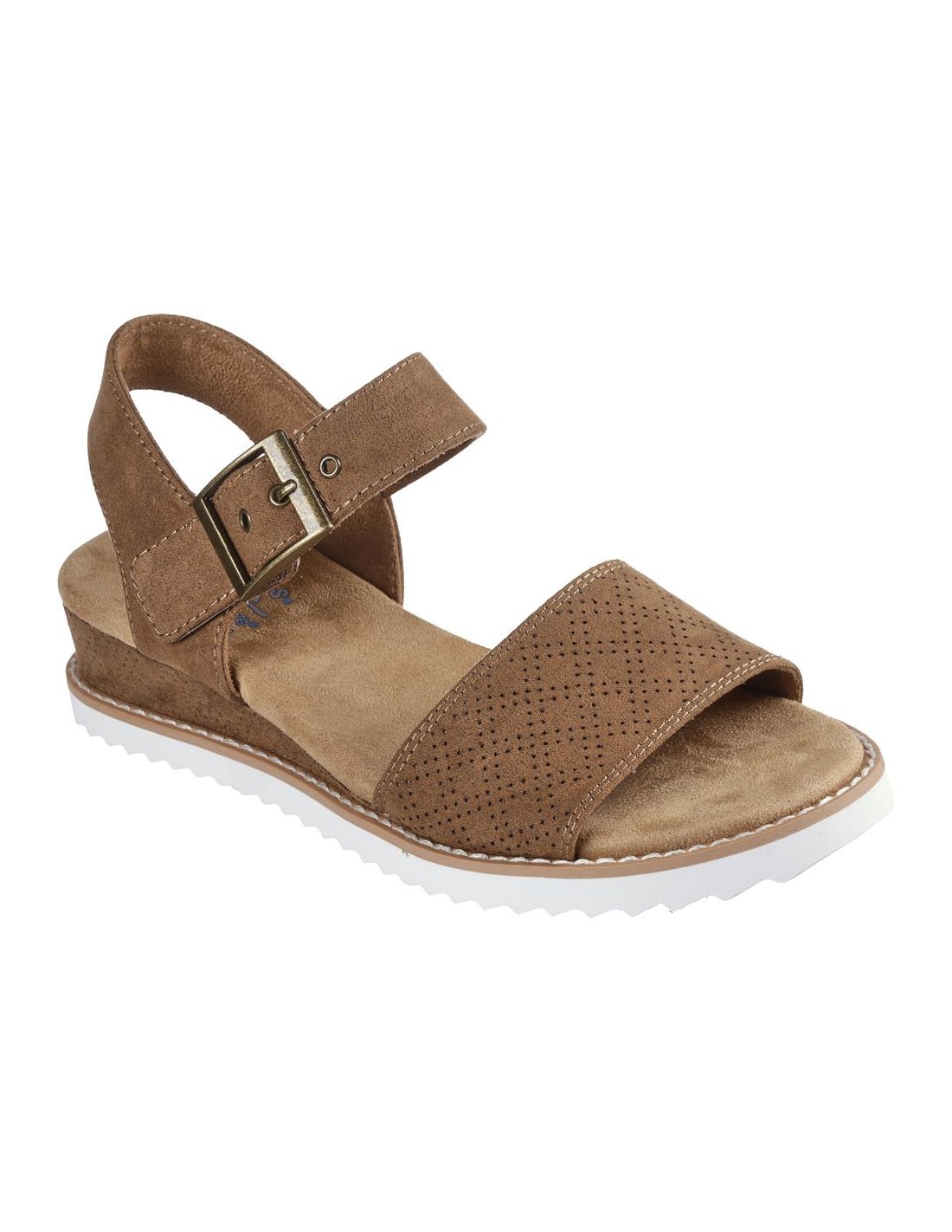 Descripción: Sandalia mujer Skechers DESERT KISS - SERENDIPITOUS en suave tejido marrón aspecto nubuck. Correa tobillera con ajuste de hebilla. Plantilla Memory Foam. Cuña forrada al tono con piso antideslizante.