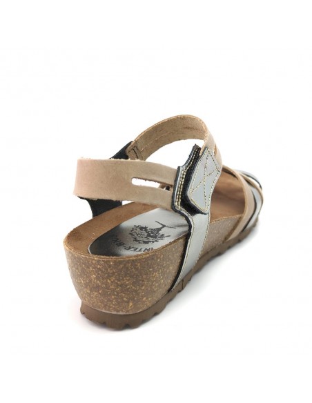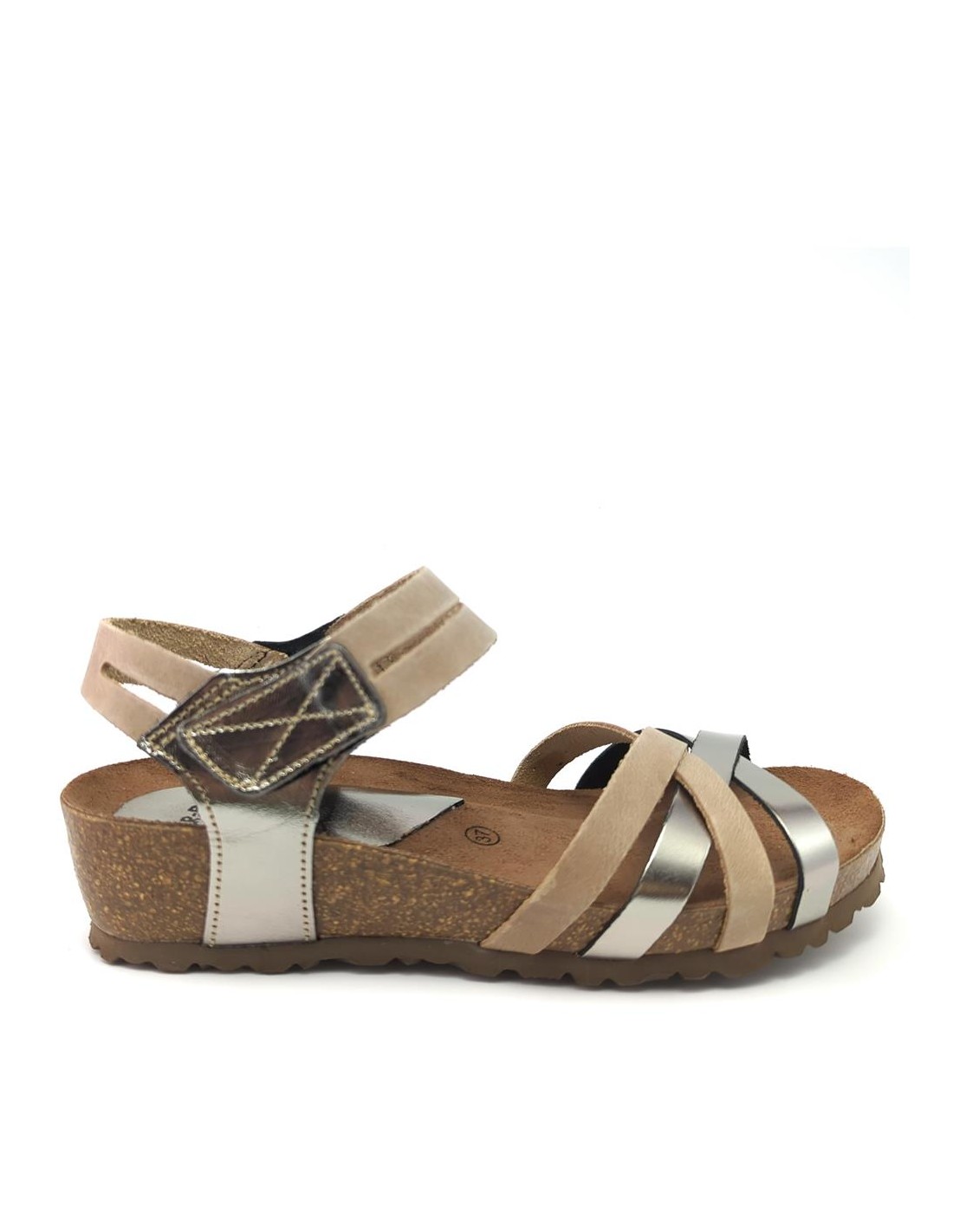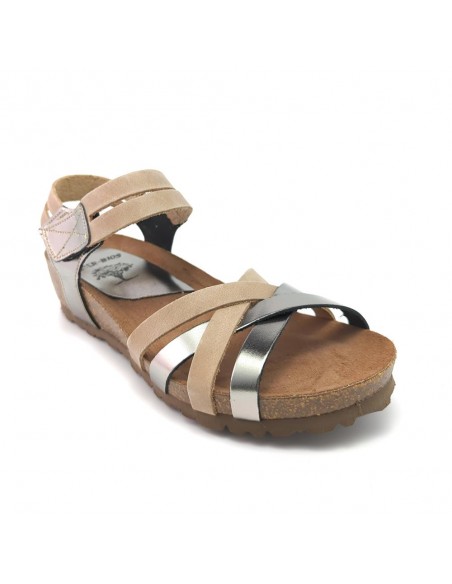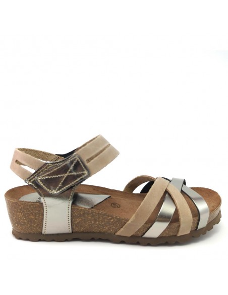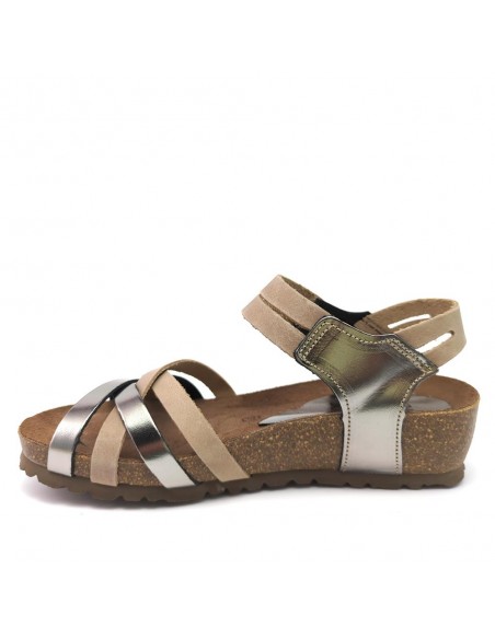 Descripción: Sandalia mujer INTERBIOS 5338 en piel combinada beig-acero. Cómoda planta anatómica en piel estilo BIO. Ajuste con cierre de velcro. Ligera y cómoda cuña de caucho con piso de goma antideslizante.