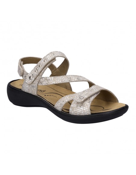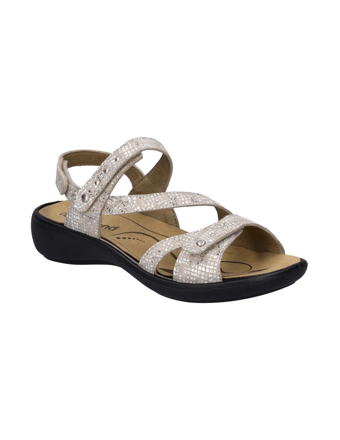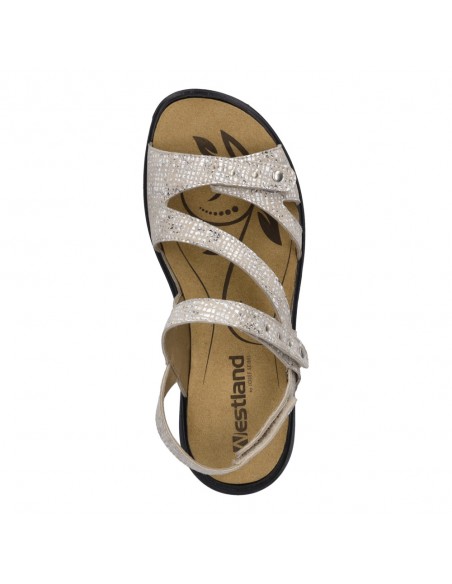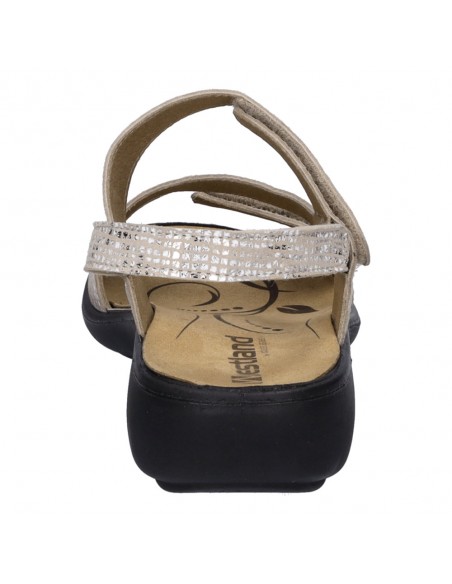 Descripción: Sandalia mujer Westland by Josef Seibel Ibiza-70 en piel estampada beig y tiras ajustables con velcro. Plantilla extraible anátomica y acolchada. Cómoda cuña de poliuretano ligera, flexible y antideslizante.