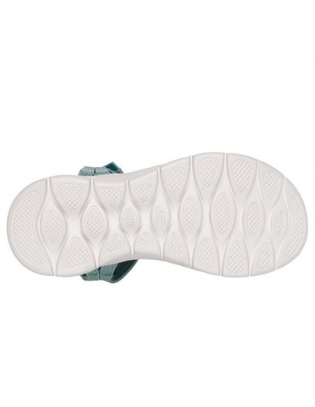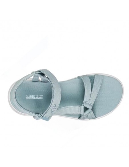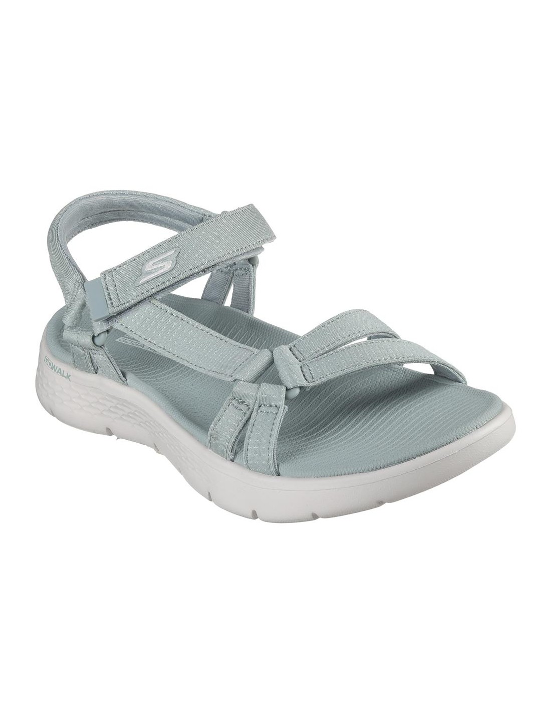 Descripción: Sandalia sport mujer SKECHERS GO WALK FLEX SANDAL - SUBLIME con tiras de suave tejido verde. Plantilla Goga Max® y entresuela ULTRA GO® con retención de memoria amortiguadora.