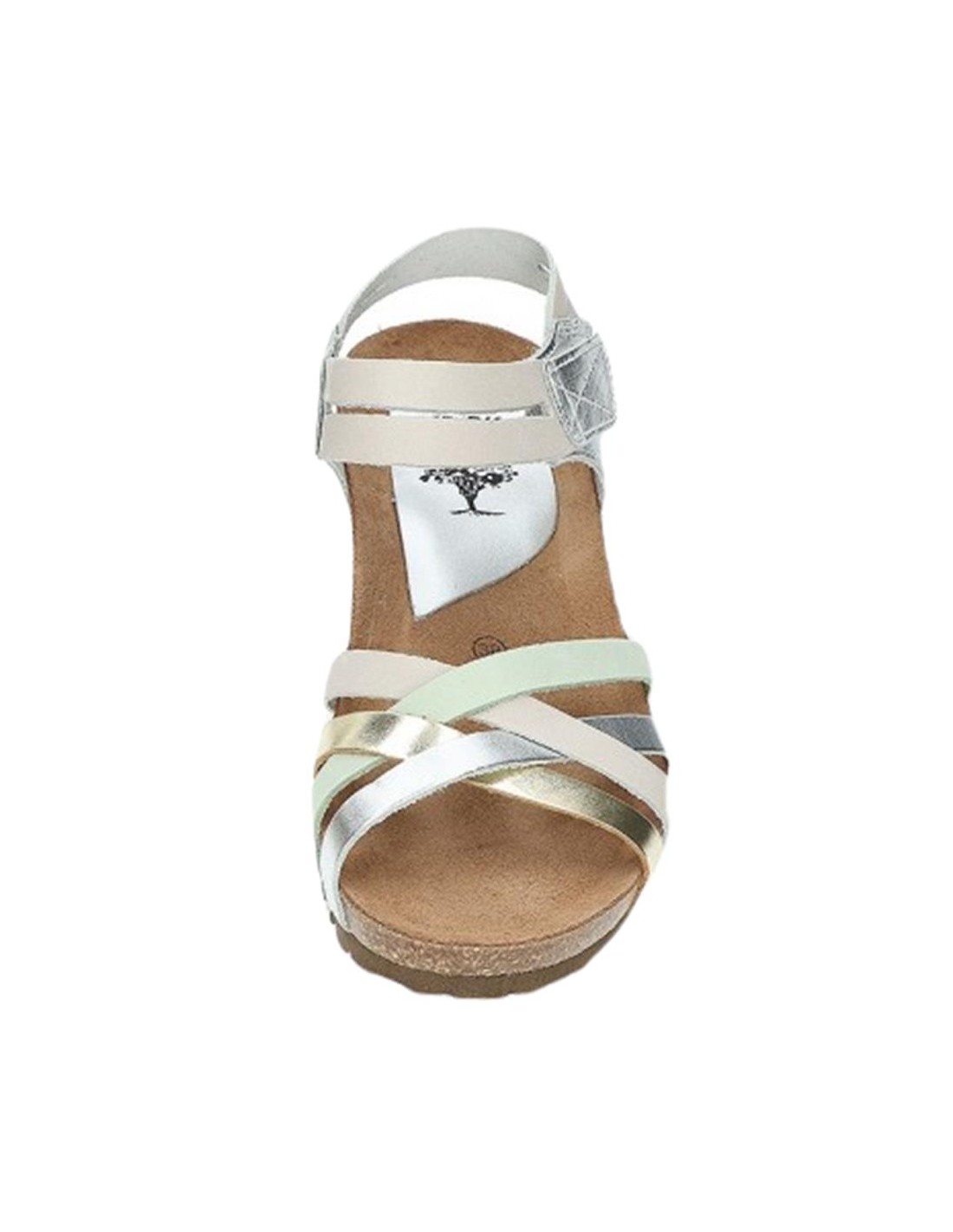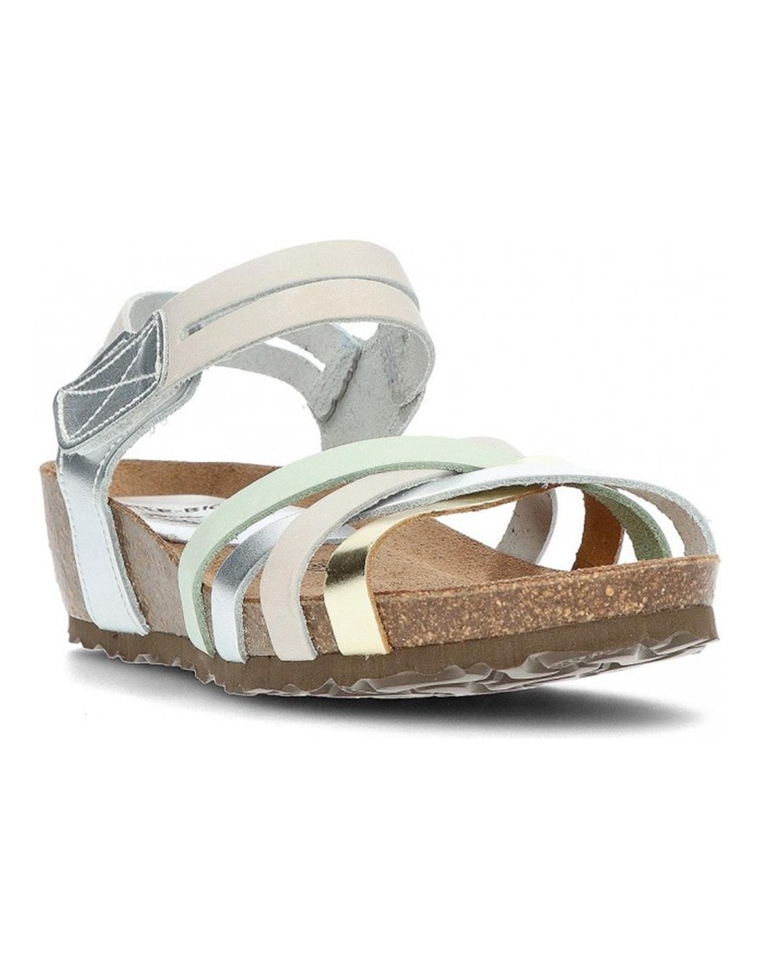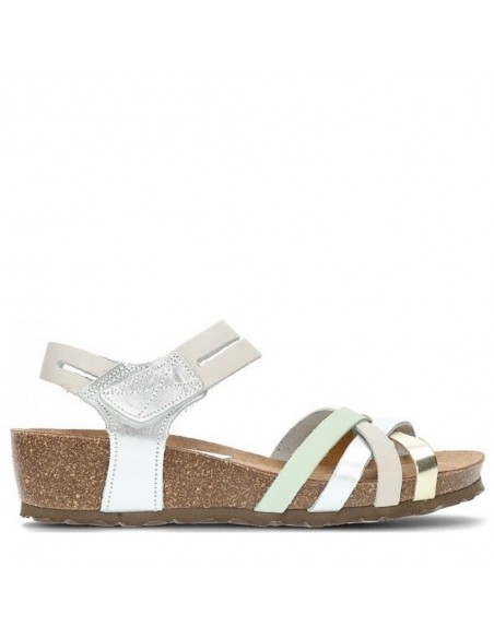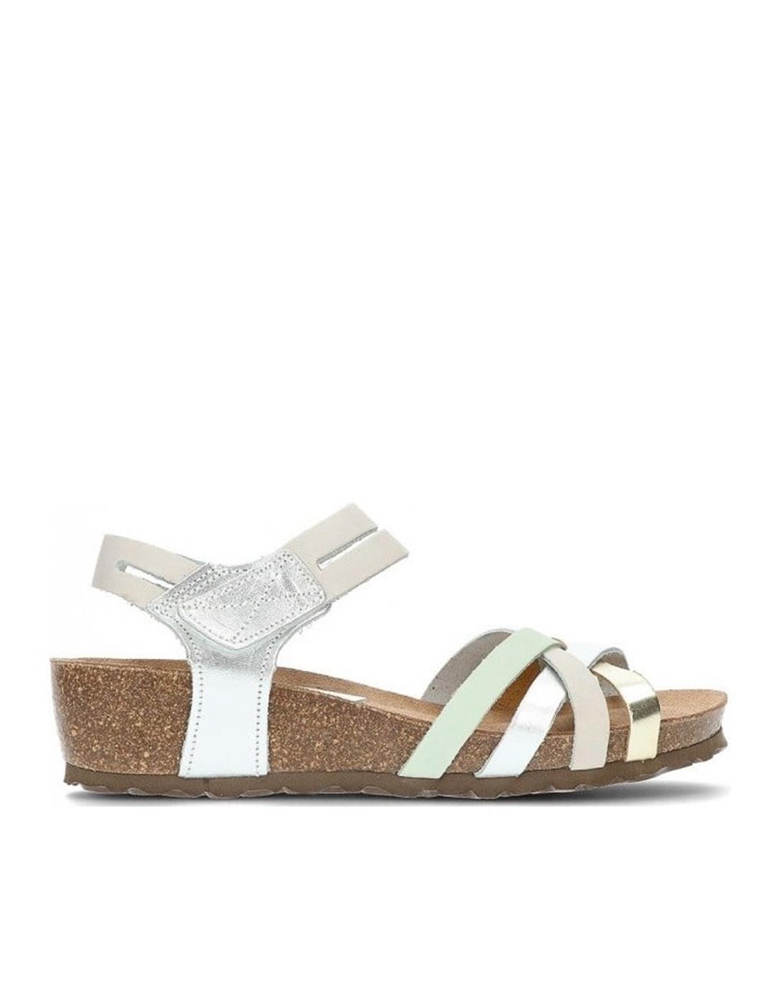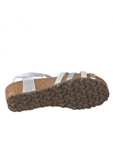 Descripción: Sandalia mujer INTERBIOS 5338 en piel combinada platino-gris-plata. Cómoda planta anatómica en piel estilo BIO. Ajuste con cierre de velcro. Ligera y cómoda cuña de caucho con piso de goma antideslizante.