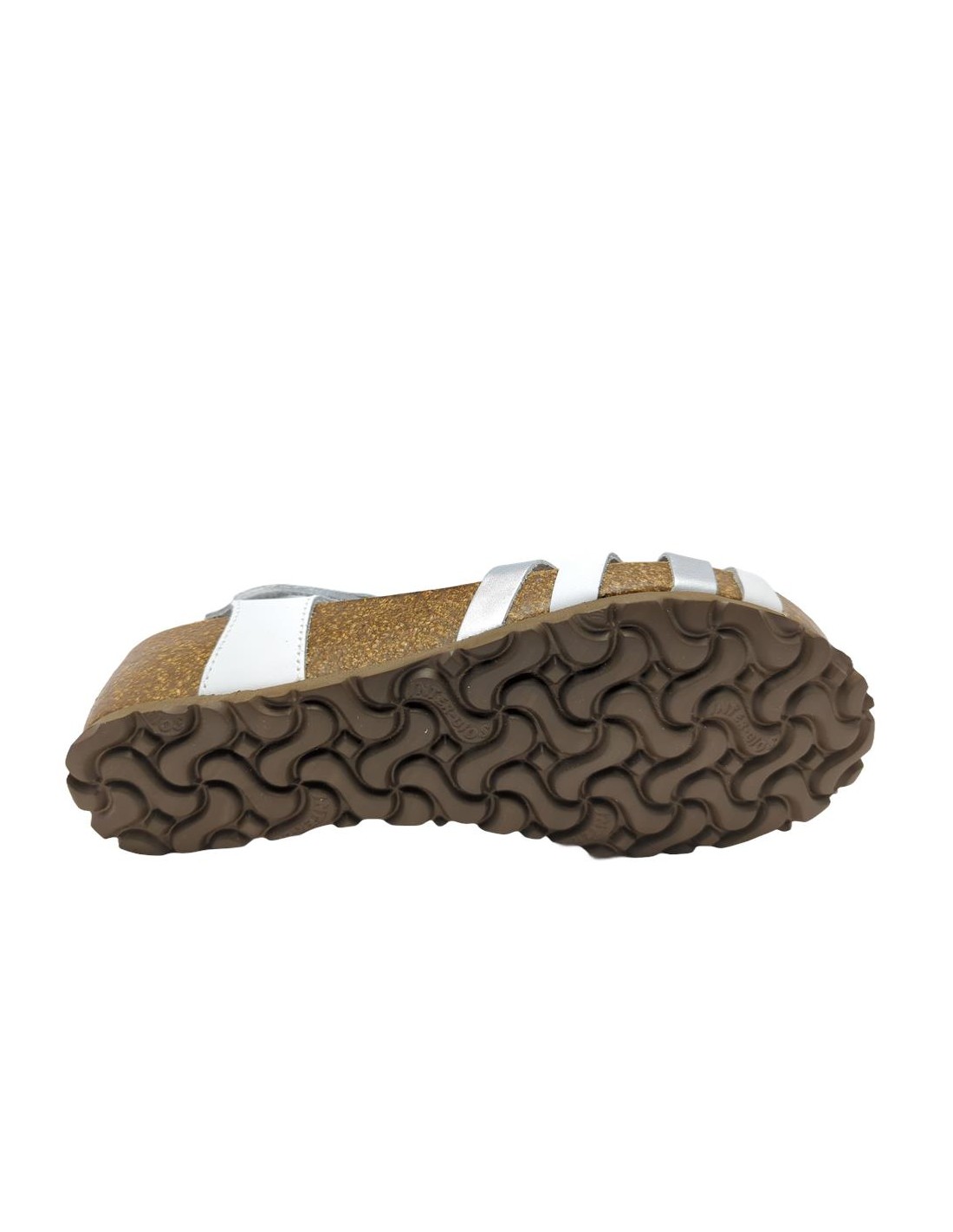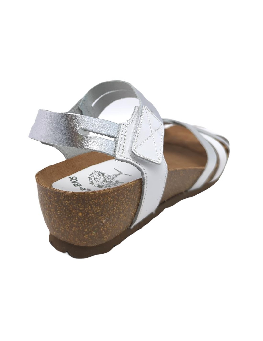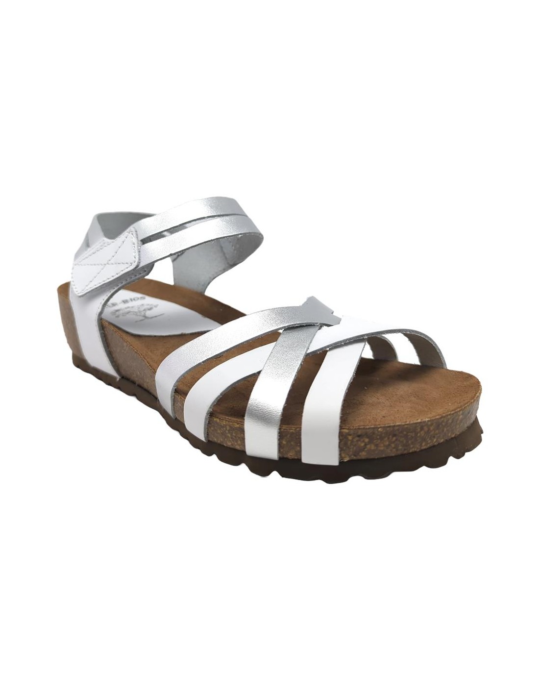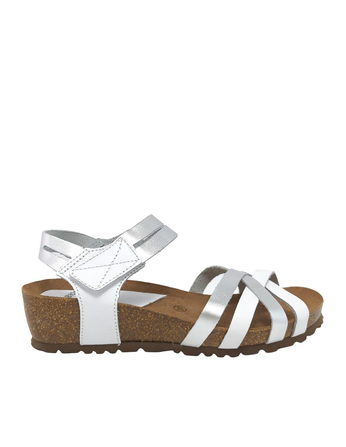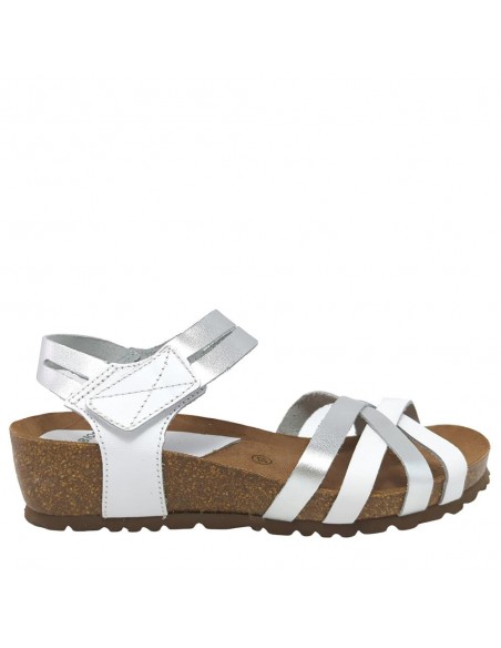 Descripción: Sandalia mujer INTERBIOS 5338 en piel combinada blanco-plata. Cómoda planta anatómica en piel estilo BIO. Ajuste con cierre de velcro. Ligera y cómoda cuña de caucho con piso de goma antideslizante.