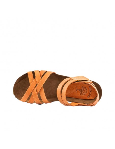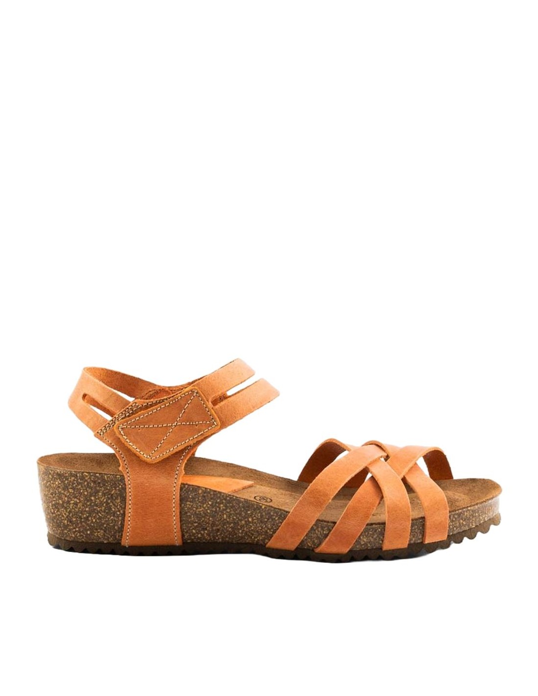 Descripción: Sandalia mujer INTERBIOS 5338 en piel natural naranja. Cómoda planta anatómica en piel estilo BIO. Ajuste con cierre de velcro. Ligera y cómoda cuña de caucho con piso de goma antideslizante.