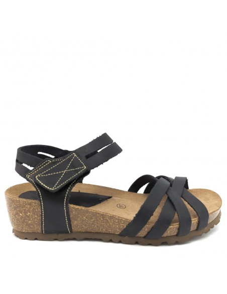 Descripción: Sandalia mujer INTERBIOS 5338 en piel natural negra. Cómoda planta anatómica en piel estilo BIO. Ajuste con cierre de velcro. Ligera y cómoda cuña de caucho con piso de goma antideslizante.
