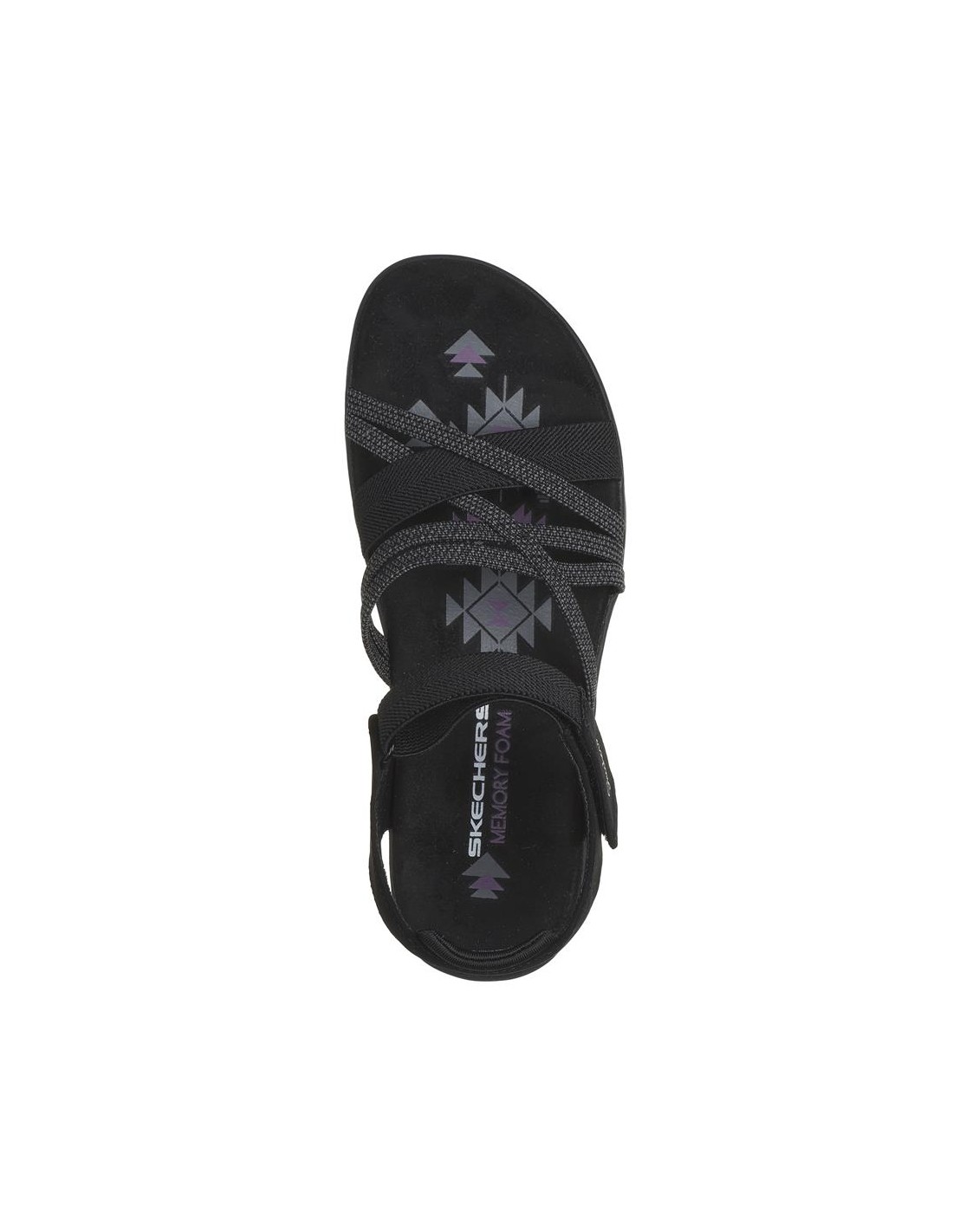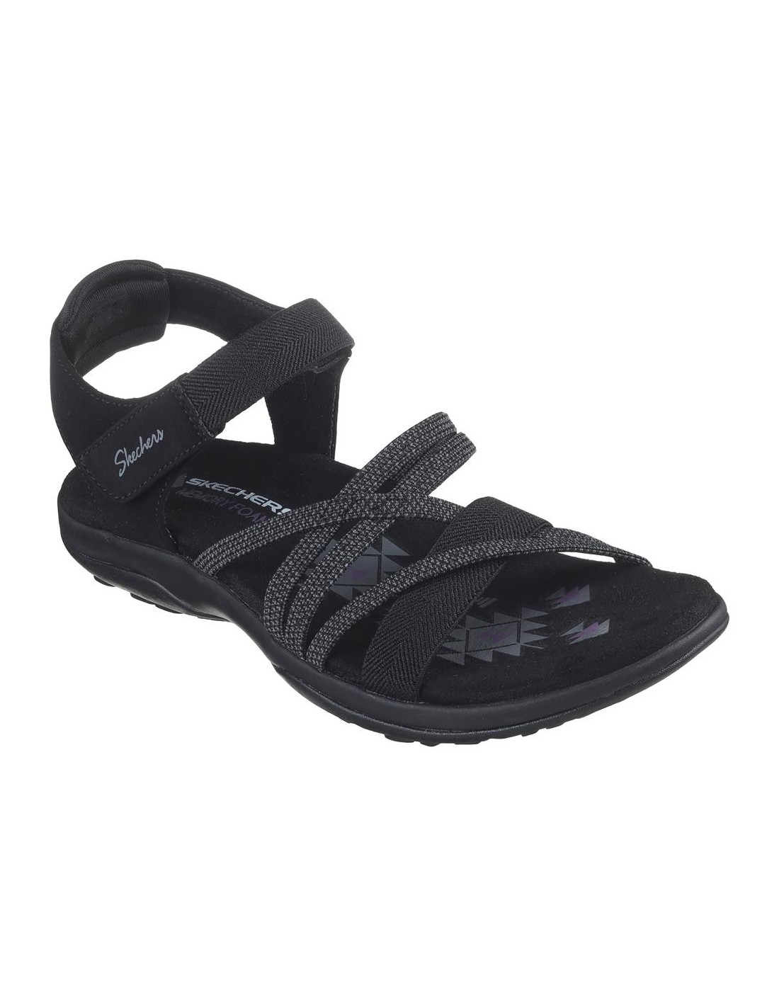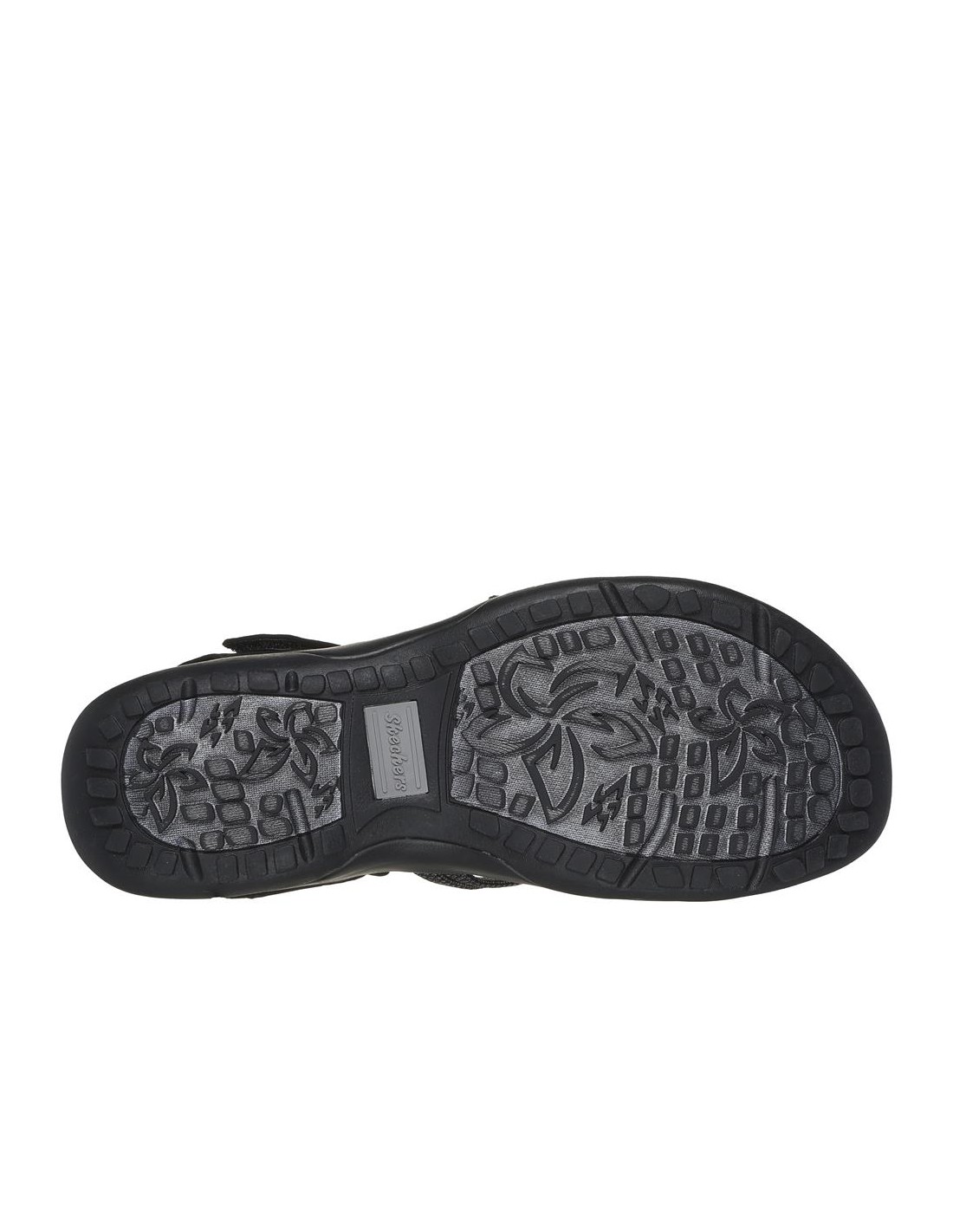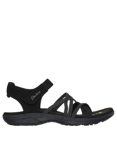 Descripción: Sandalia mujer Skechers REGGAE SLIM MEADOW GRAZER de bandas delgadas y elásticas negras. Tira tobillera con velcro. Plantilla Arch Comfort para un soporte suave y cómodo. Suela amortiguadora antideslizante.