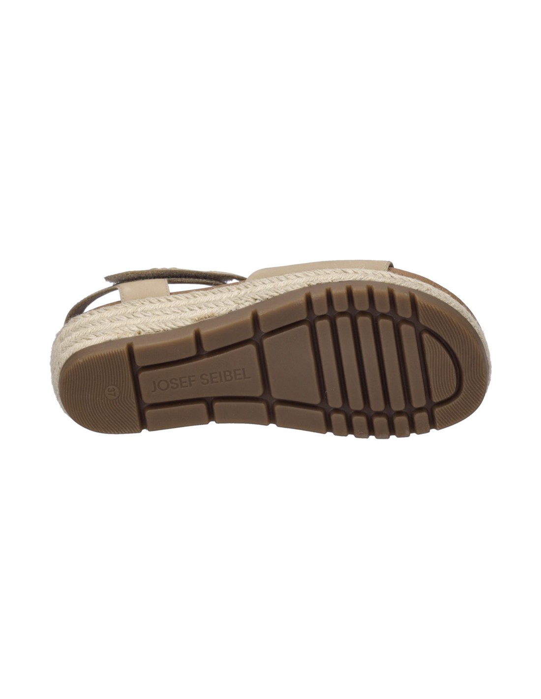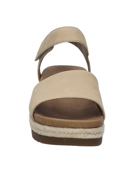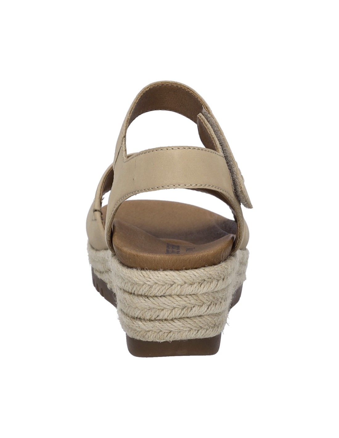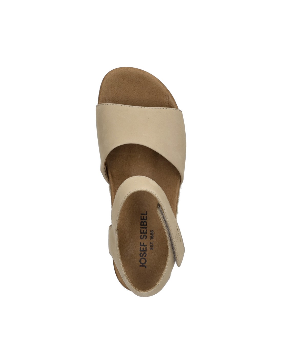 Descripción: Sandalia mujer de Josef Seibel MIRANDA-02 en suave nubuck beig y tira con ajustes de velcro. Planta acolchada anatómica forrada de piel. Cuña con plataforma de yute con piso antideslizante.