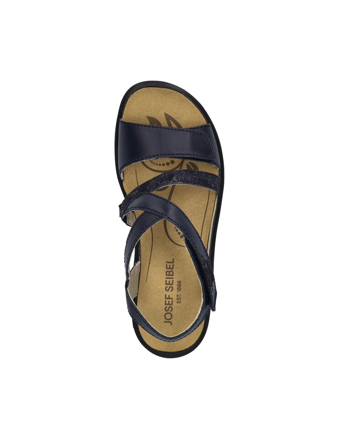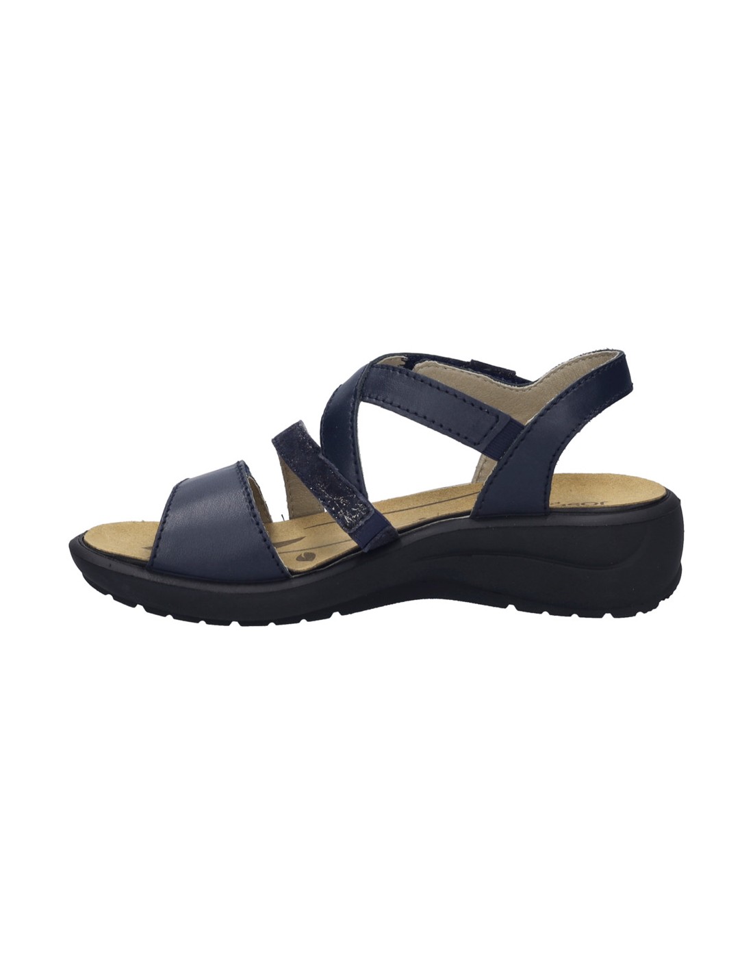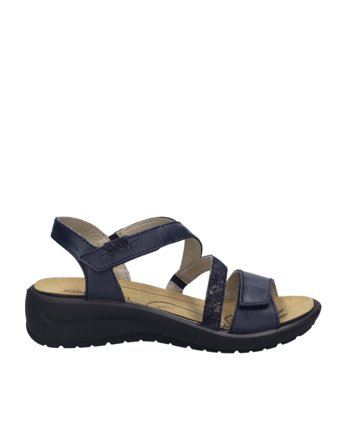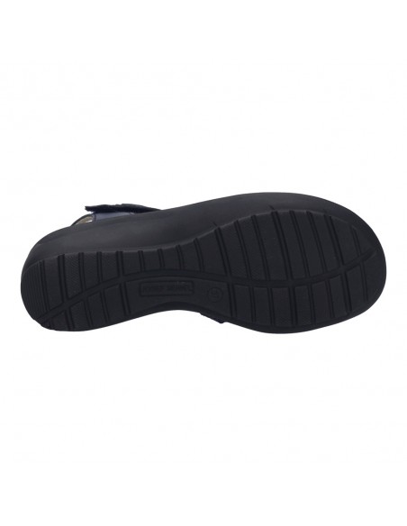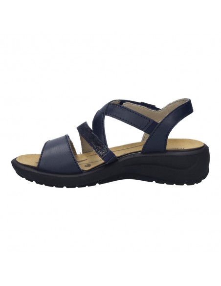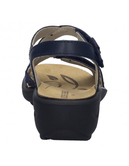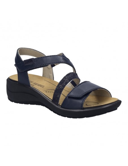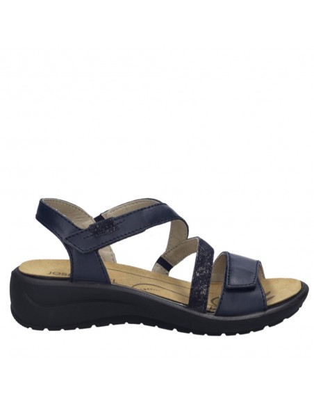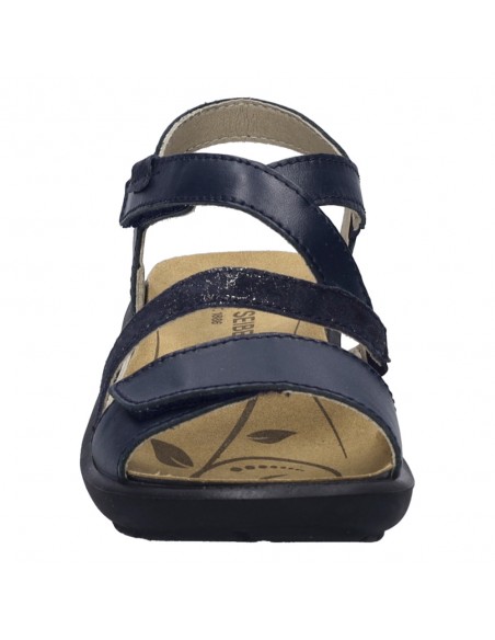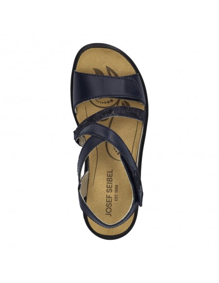 Descripción: Sandalia mujer de Josef Seibel ANNECY-12 en suave piel azul. Ajuste con velcros. Planta anatómica extraible. Piso de poliuretano inyectado ligero y con dibujo antideslizante.