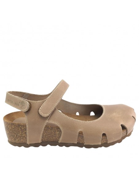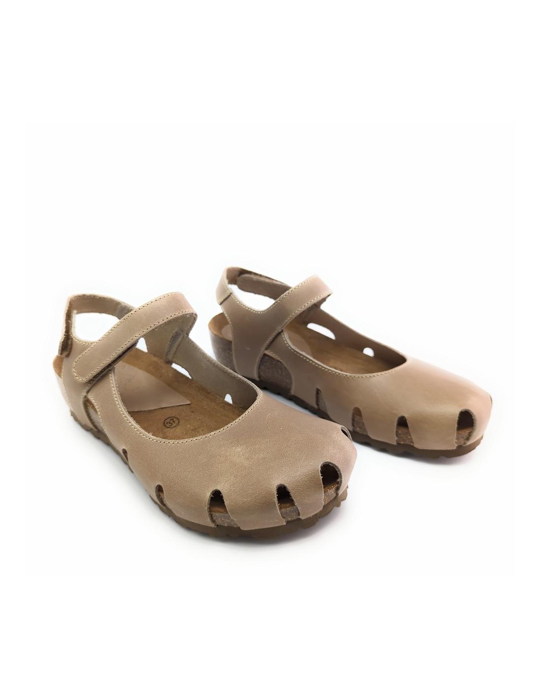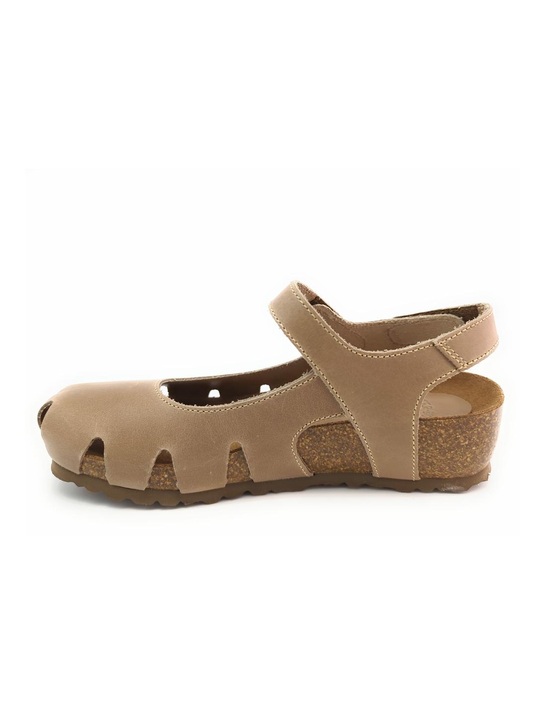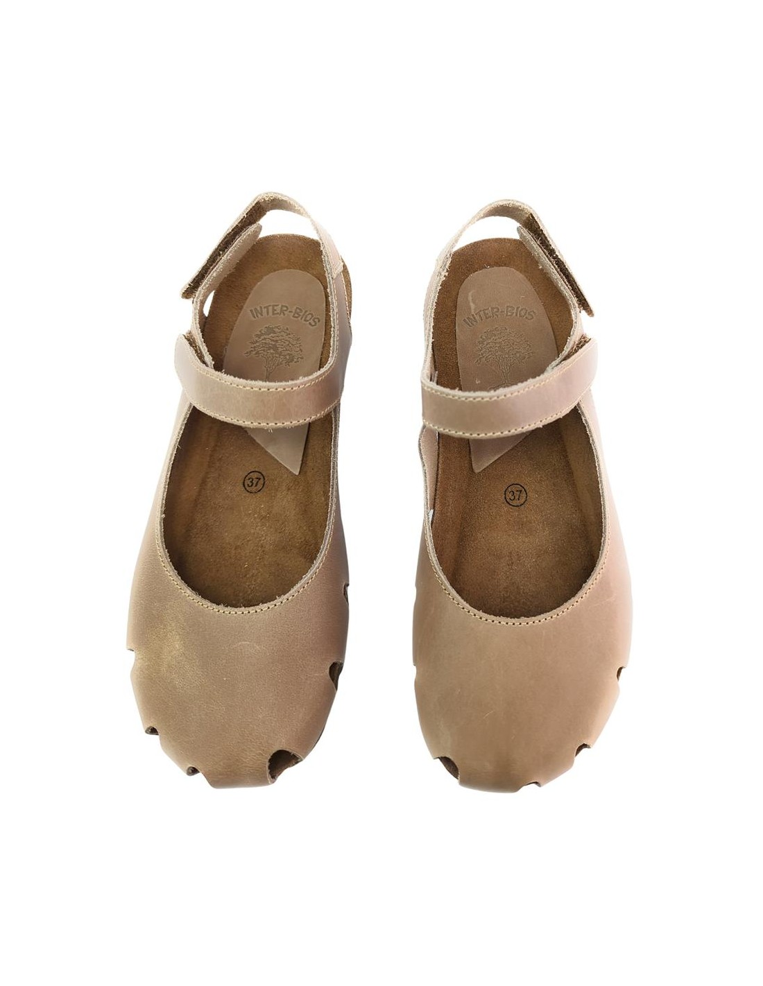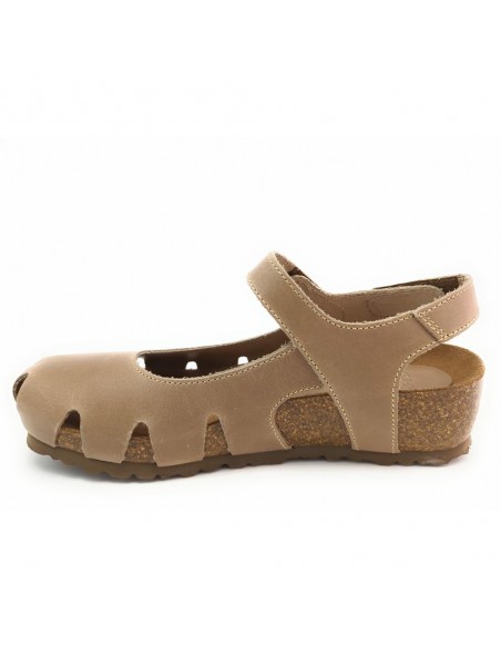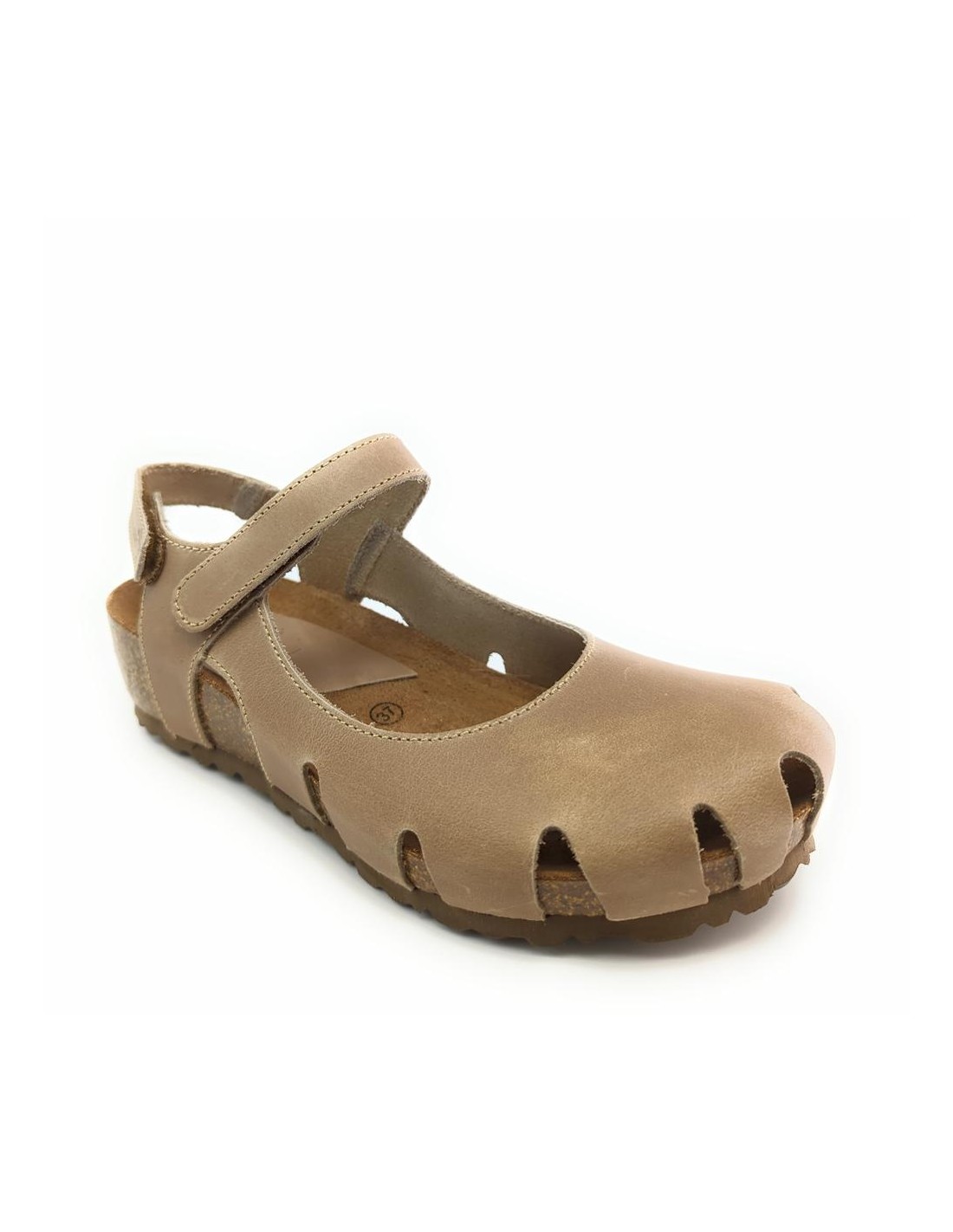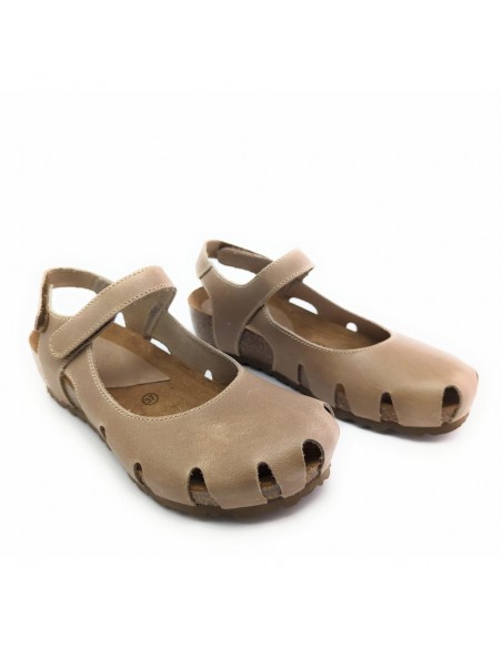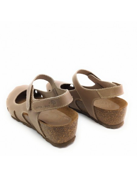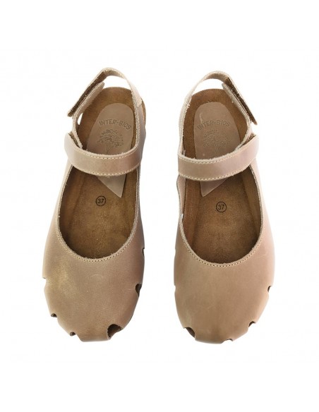 Descripción: Sandalia mujer INTERBIOS 5326 cerrada de la punta en piel natural beig. Cómoda planta anatómica en piel estilo BIO . Ajuste con cierre de velcro. Piso de goma antideslizante.