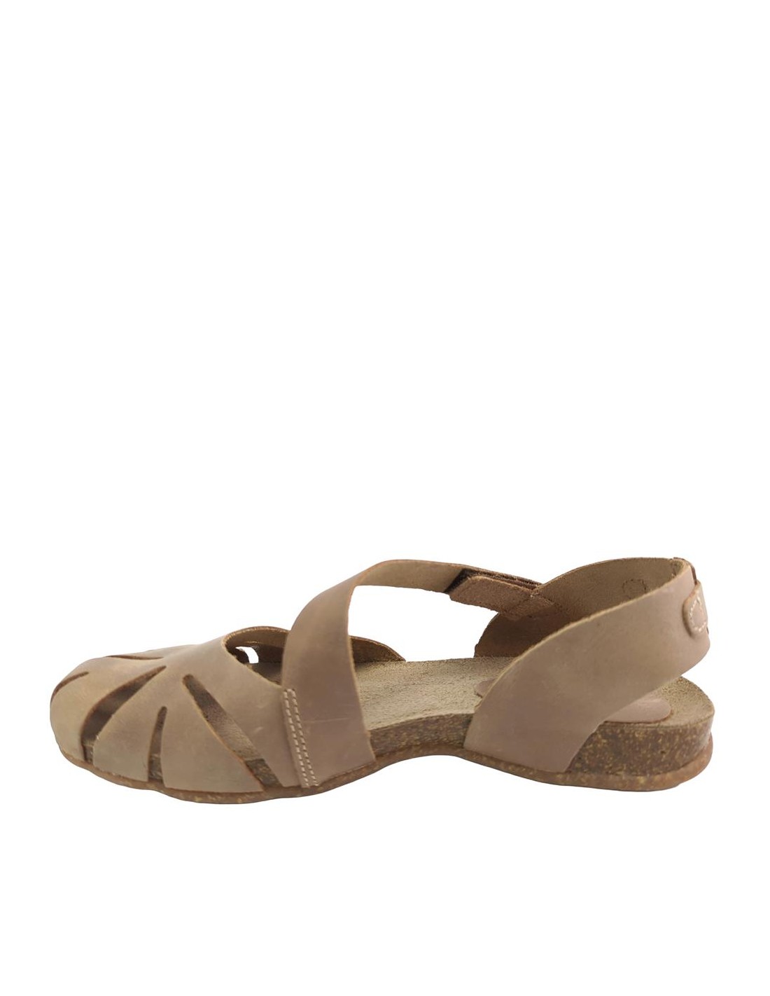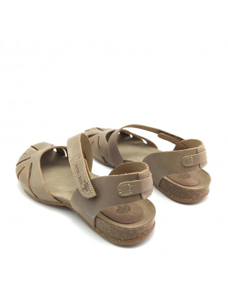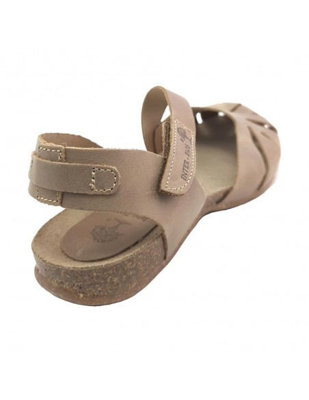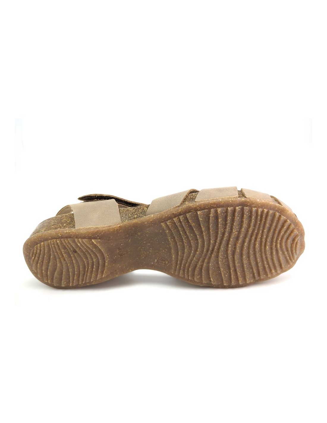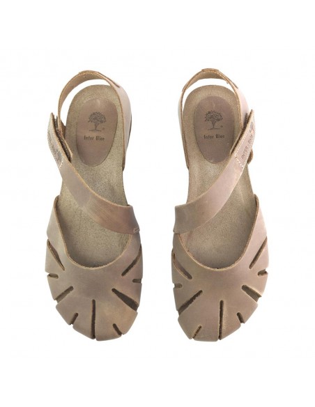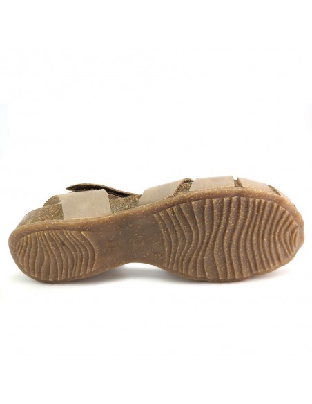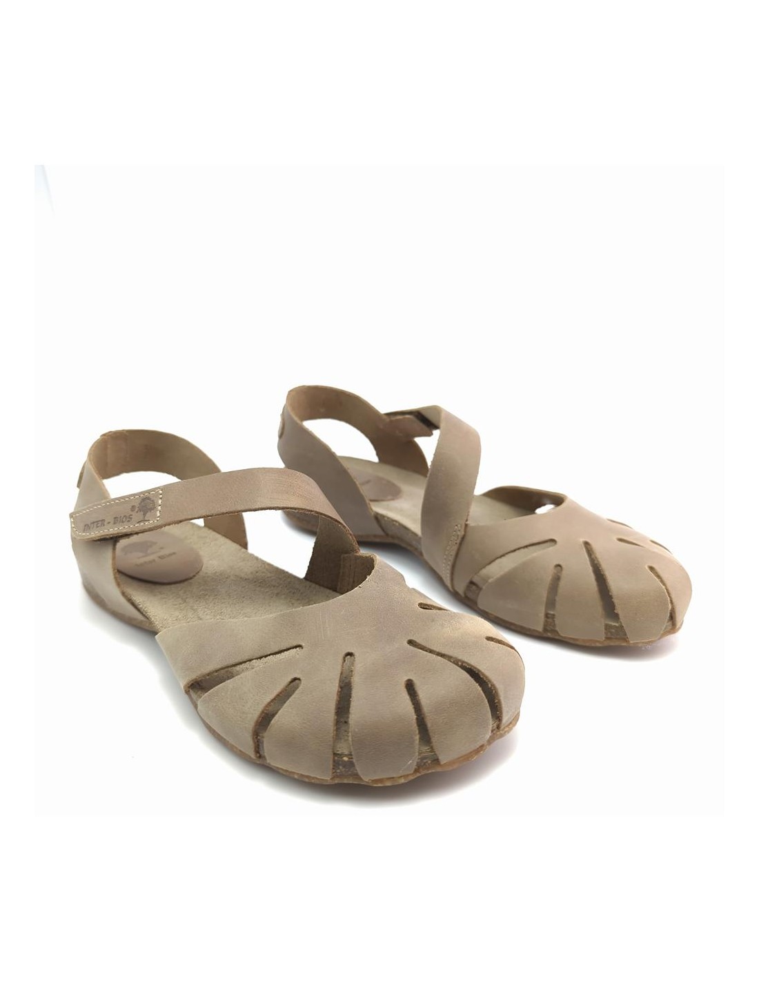 Descripción: Sandalia mujer INTERBIOS 4456 con puntera cerrada calada en piel natural beig. Cómoda planta anatómica en piel estilo BIO. Ajustable con banda cruzada de velcro. Piso de goma antideslizante.