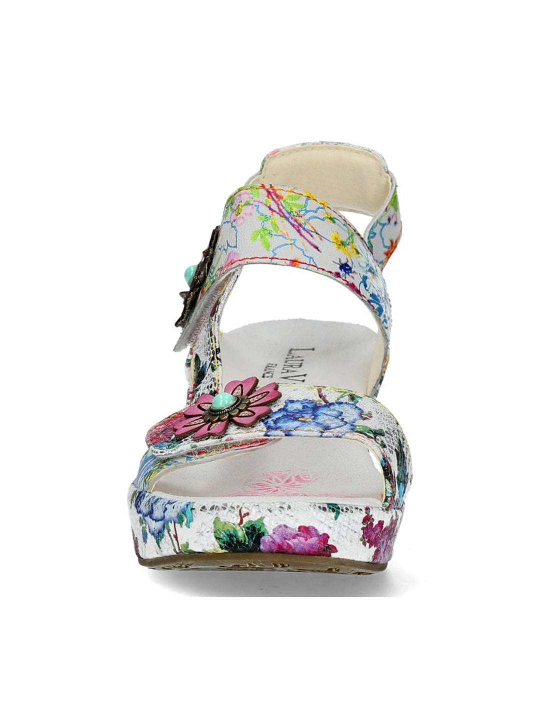 SANDALIA LAURA VITA FACDIO-37 PIEL BLANCA FLOREADA