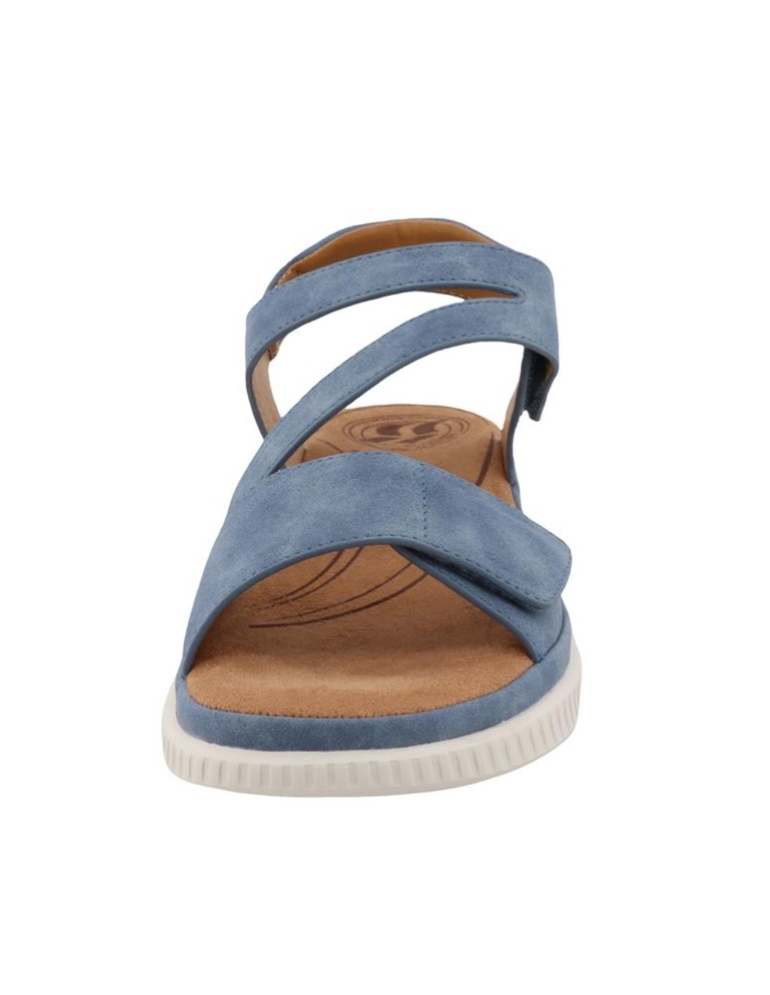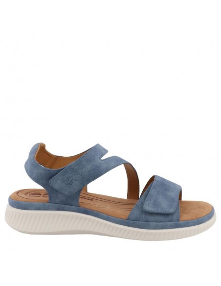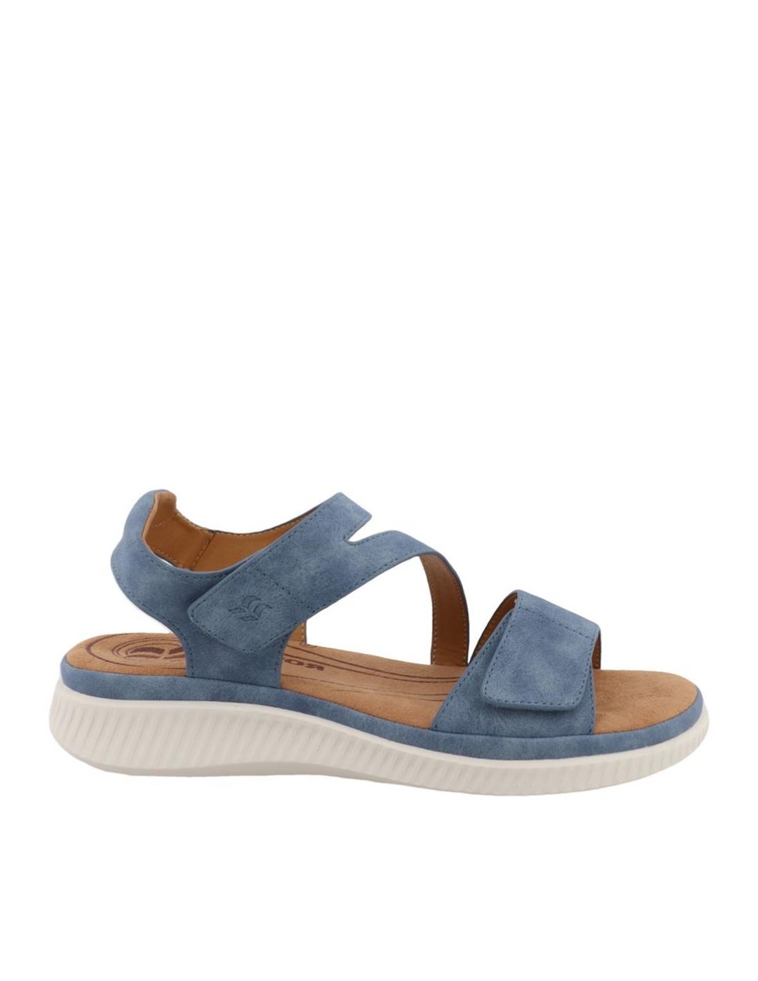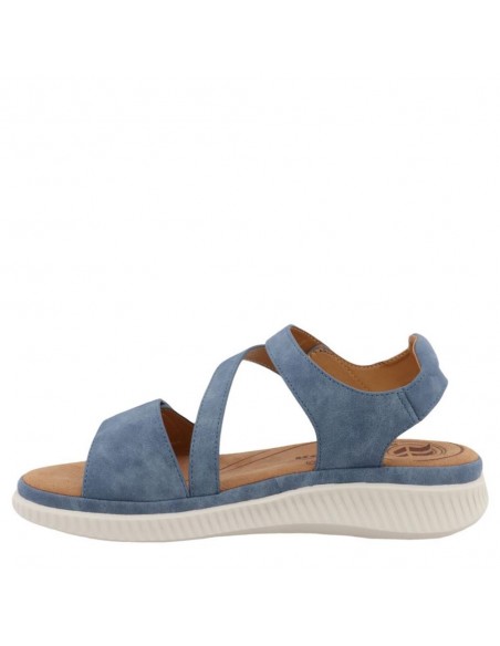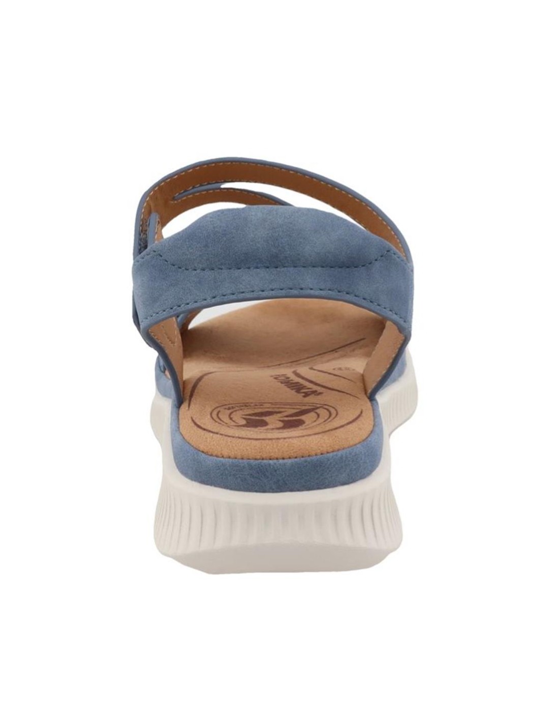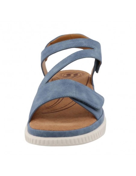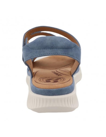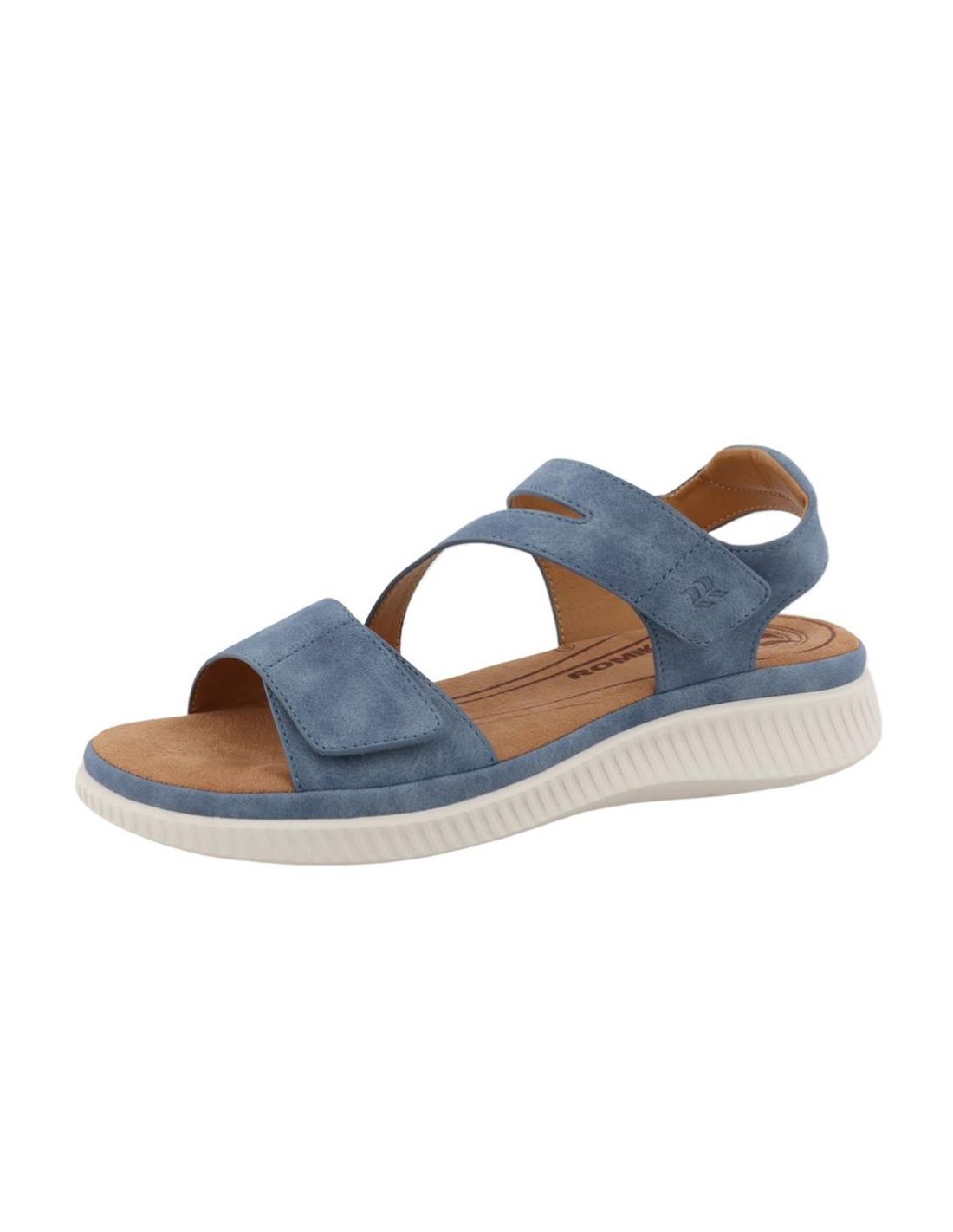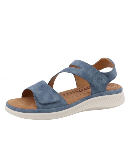 Descripción: Cómoda sandalia mujer de ROMIKA modelo 74R0092001 en suave tejido jeans aspecto nubuck. Ajuste con velcros. Planta acolchada. Cuña súper ligera y piso con dibujo antideslizante.