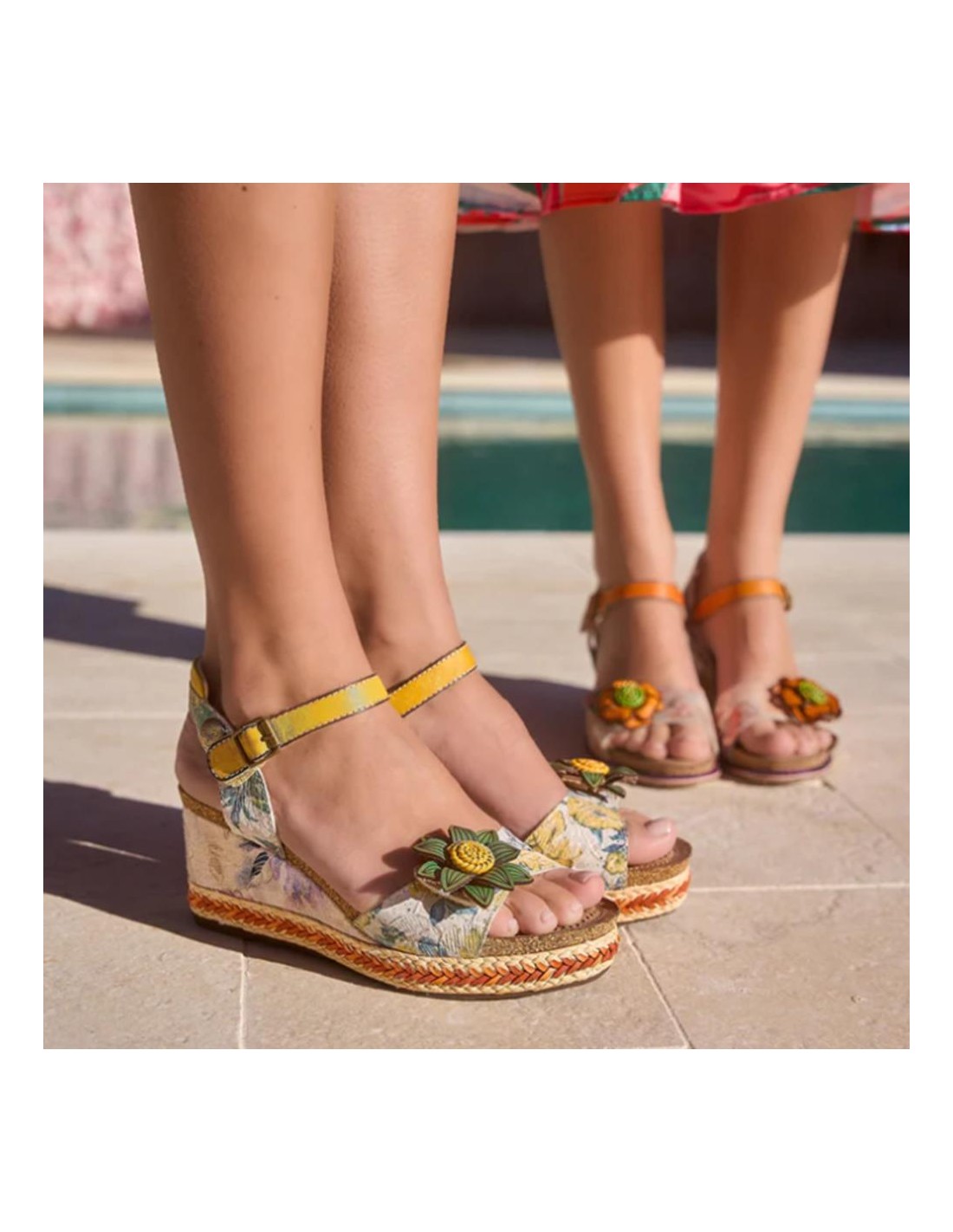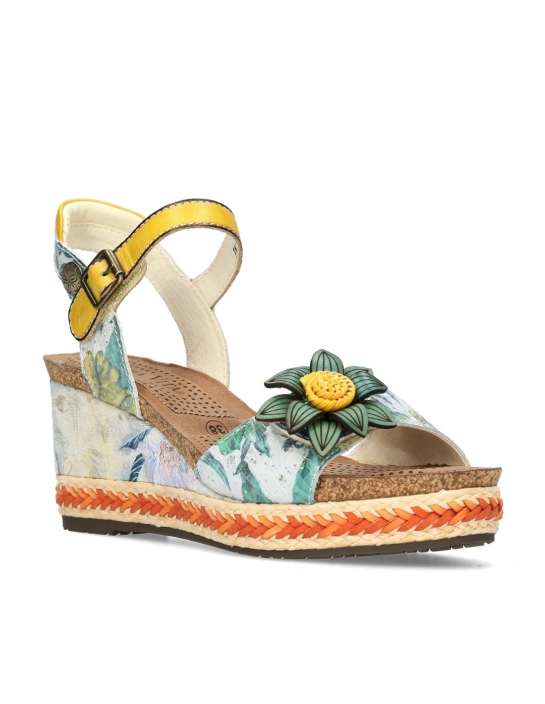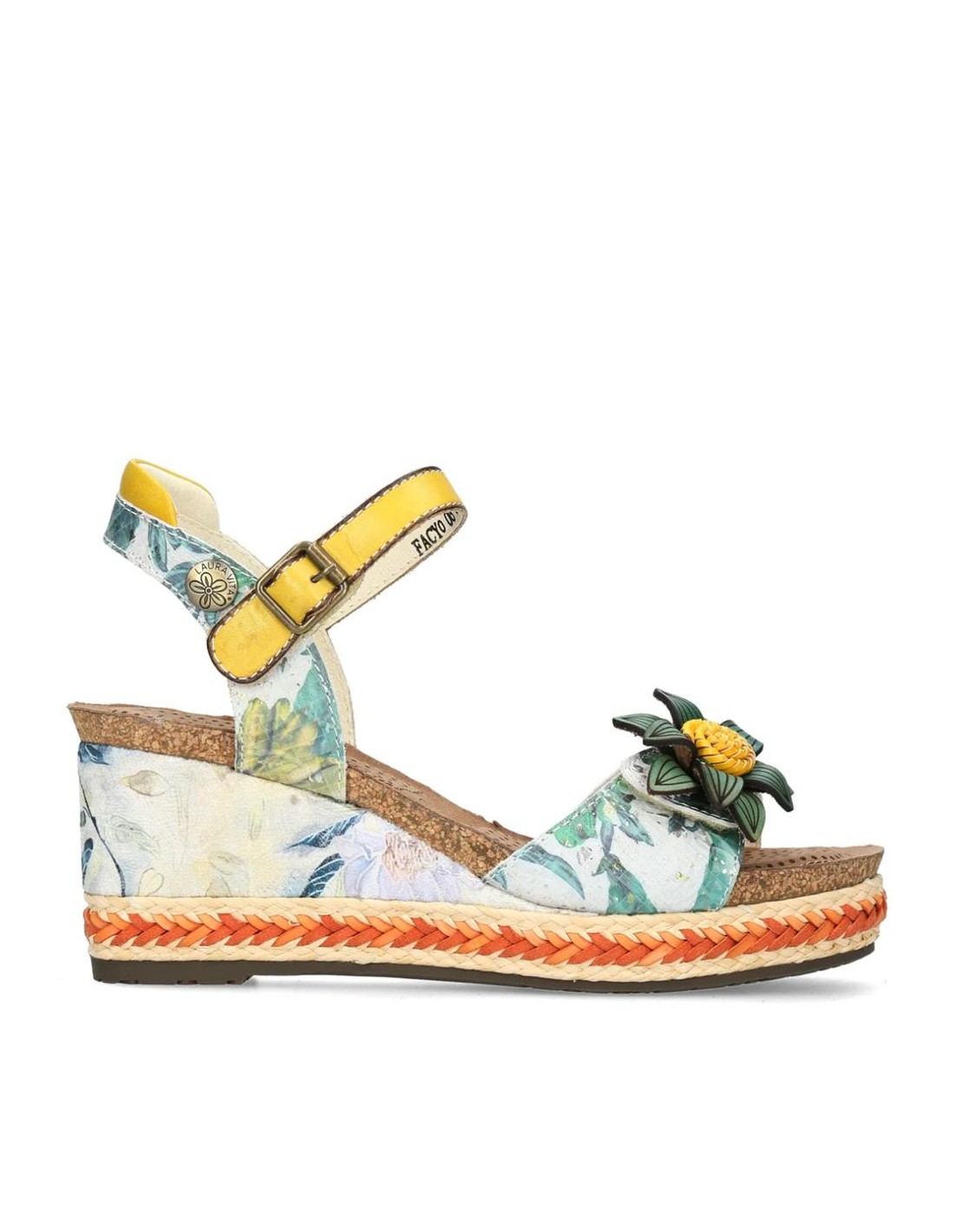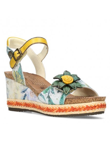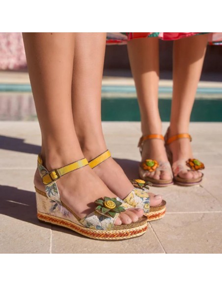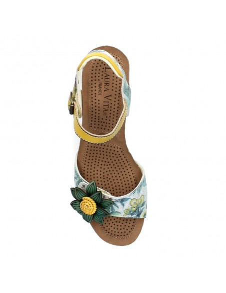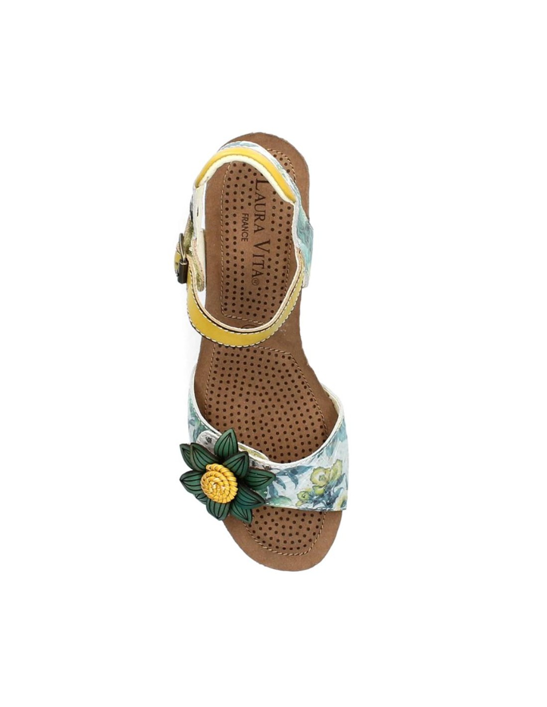 Descripción: Sandalia mujer Laura Vita FAICO-06 en piel kaki y amarilla con detalle floral. Esta marca ofrece originalidad inspirada en la naturaleza y las artes, colorido nuevo cada temporada y comodidad ergonómica.