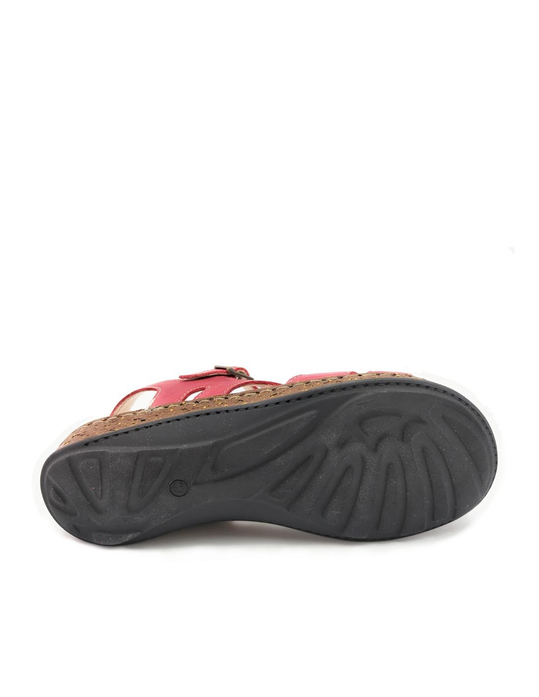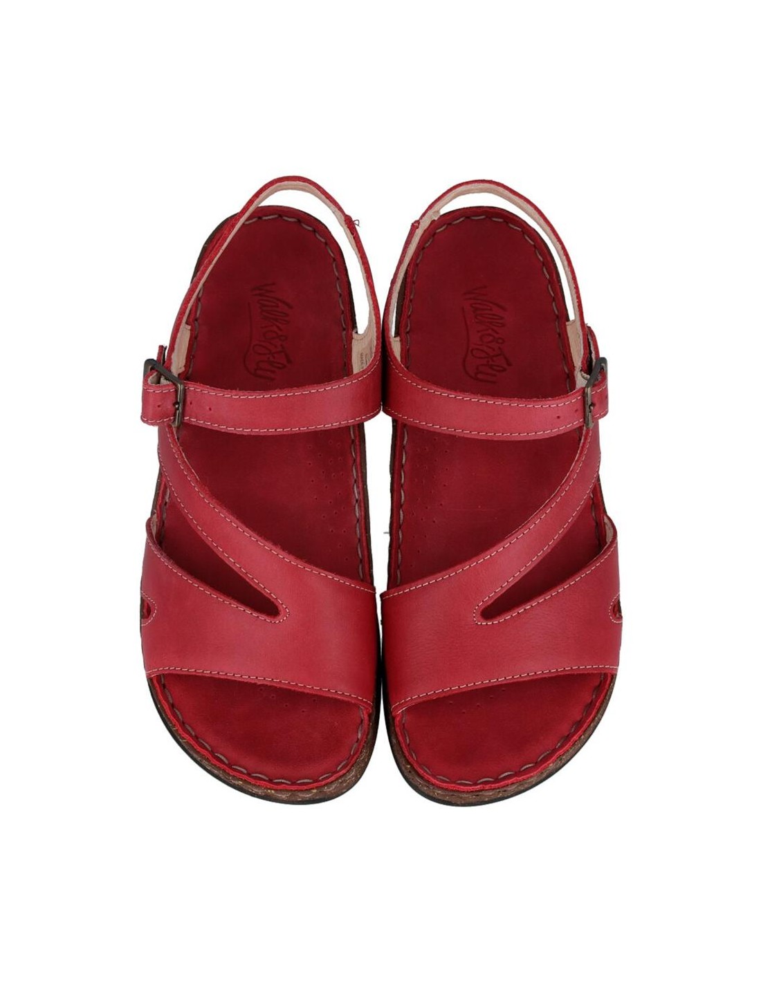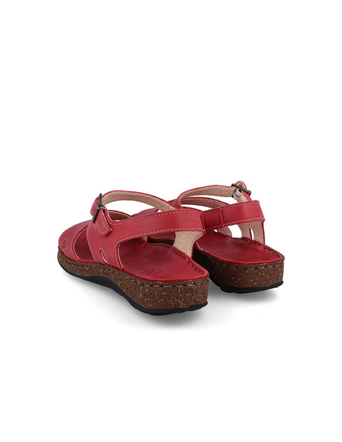 Descripción: Sandalia mujer WALK & FLY 3861-35580 en suave piel natural roja. Forro y plantilla acolchada de gel forrados en piel. Suela ligera beig cosida a mano para mayor flexibilidad con dibujo antideslizante