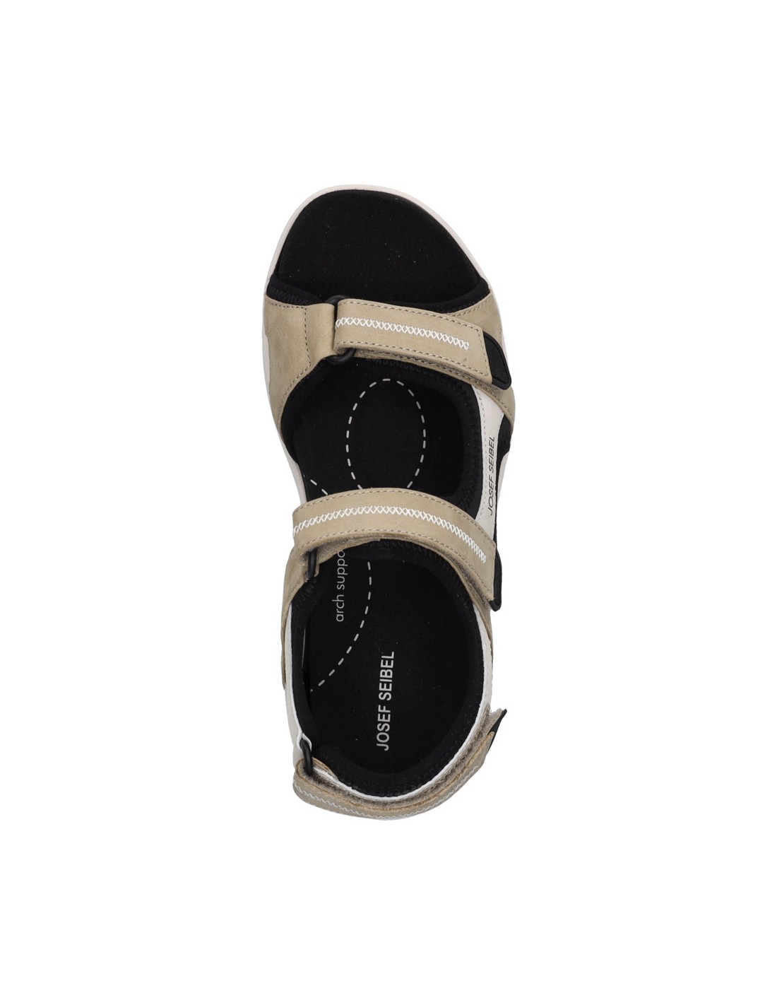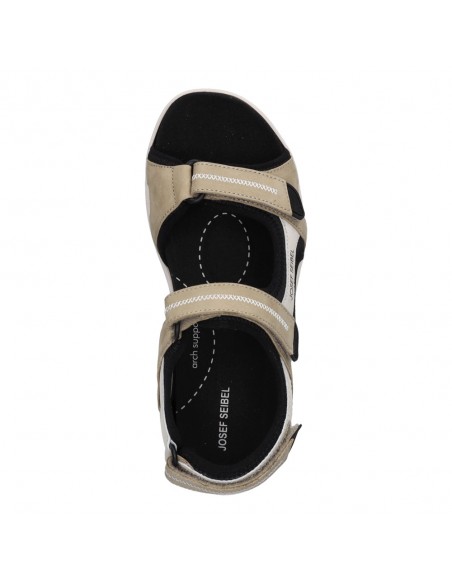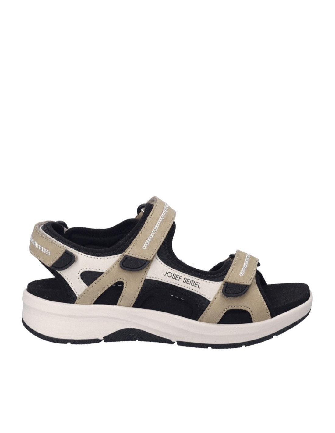 Descripción: Sandalia mujer Josef Seibel ESTELLE-02 en nubuck beig sobre suave licra. Ajuste con velcros. Plantilla anatómica extraible. Línea ergonómica iGoDynamick con soporte estabilizador en la suela.