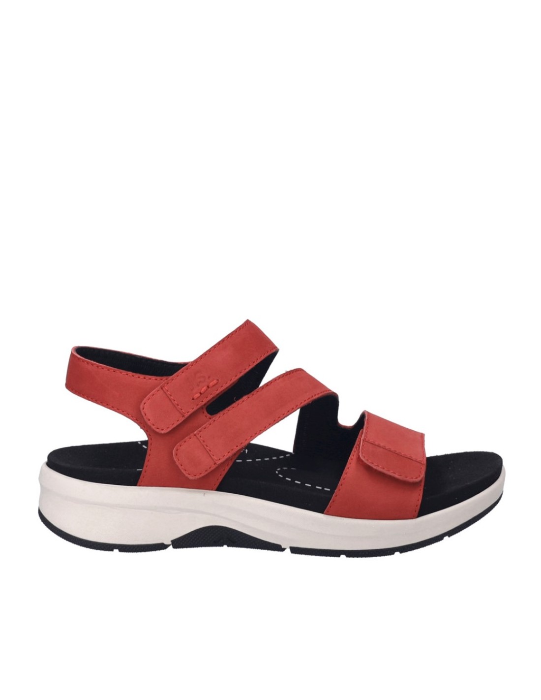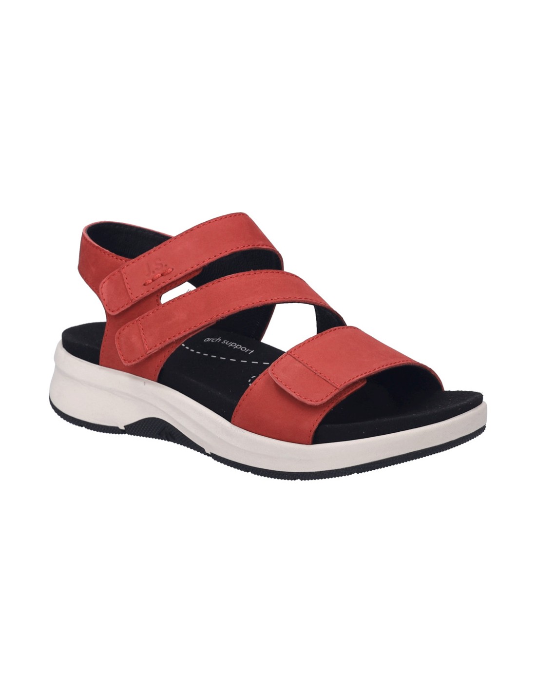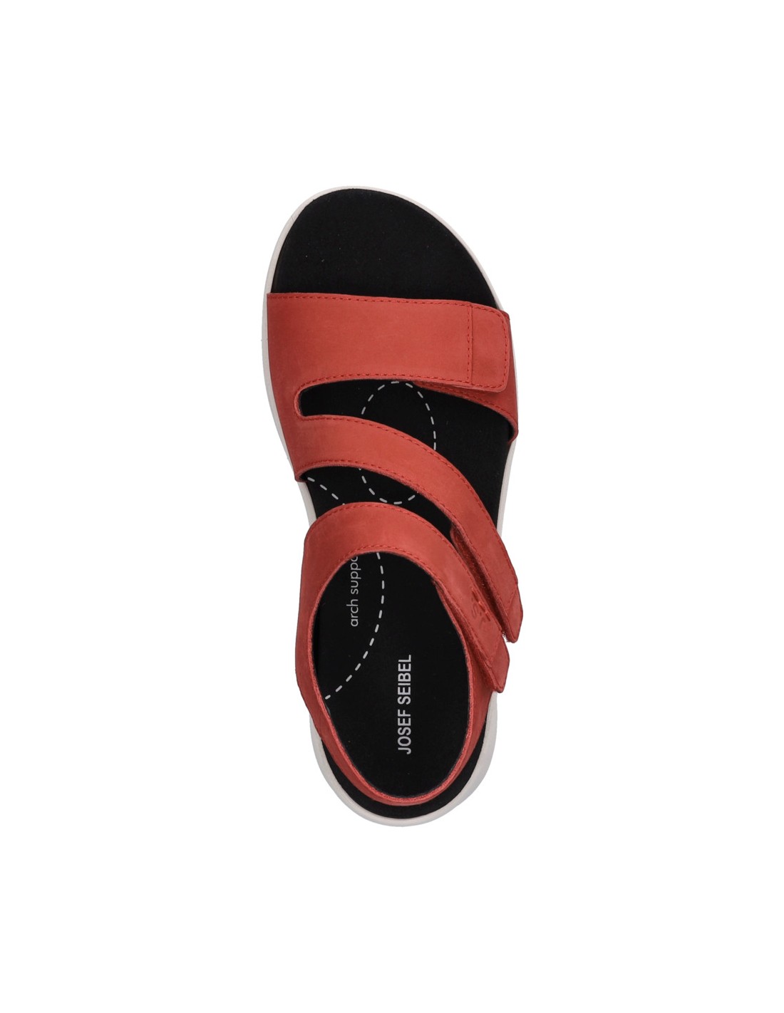 Descripción: Sandalia mujer Josef Seibel ESTELLE-04 en suave nubuck rojo. Ajuste con velcros. Plantilla anatómica extraible. Línea ergonómica iGoDynamick con soporte estabilizador en la suela.