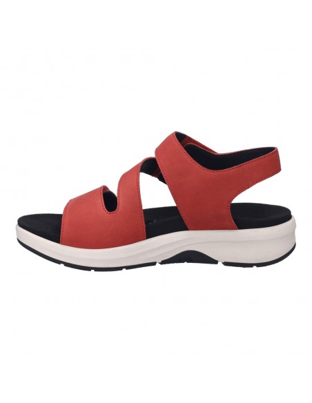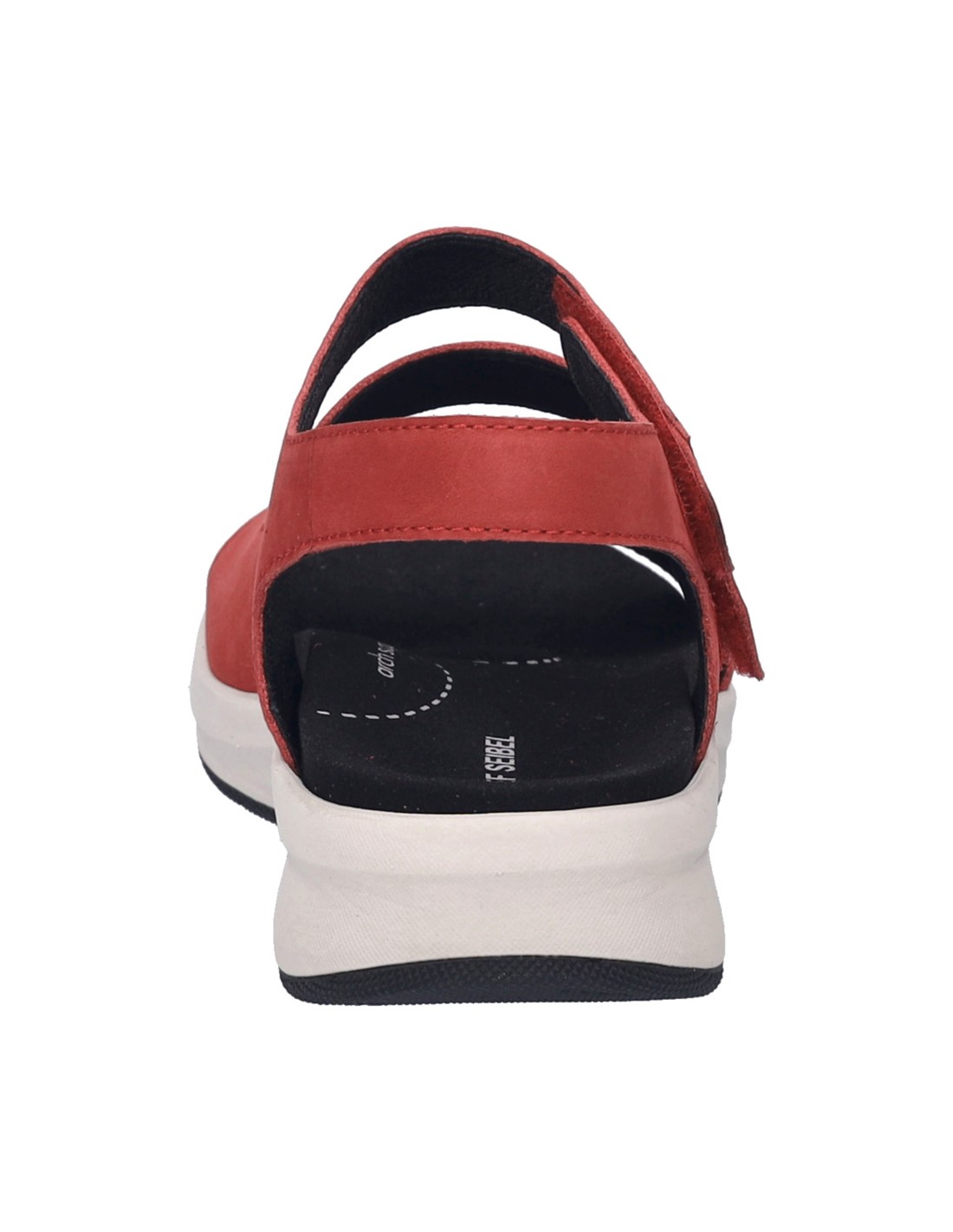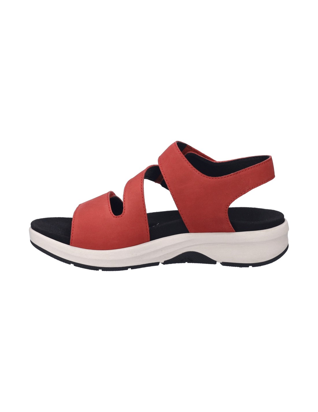 Descripción: Sandalia mujer Josef Seibel ESTELLE-04 en suave nubuck rojo. Ajuste con velcros. Plantilla anatómica extraible. Línea ergonómica iGoDynamick con soporte estabilizador en la suela.