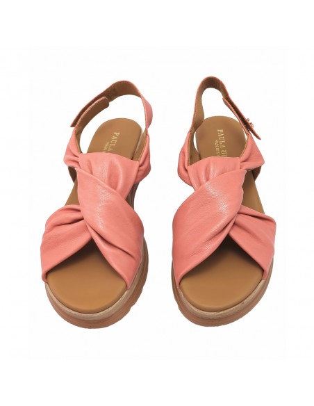Descripción: Sandalia mujer PAULA URBAN 24-335 en suave piel anudada roja. Ajuste con velcro trasero. Forro y cómoda planta anatómica en piel. Piso ligero con plataforma antideslizante.