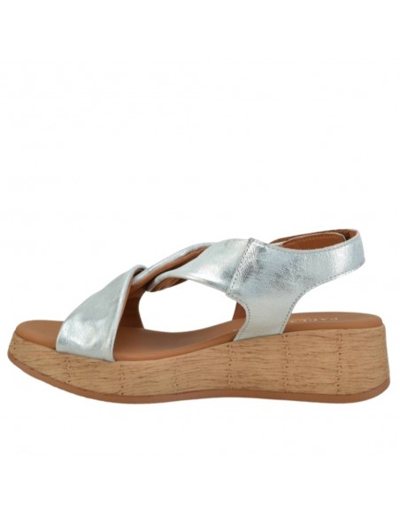 Descripción: Sandalia mujer PAULA URBAN 33-614 en suave piel anudada ligeramente metalizada blanca. Ajuste con velcro trasero. Forro y cómoda planta anatómica en piel. Piso ligero con plataforma antideslizante.