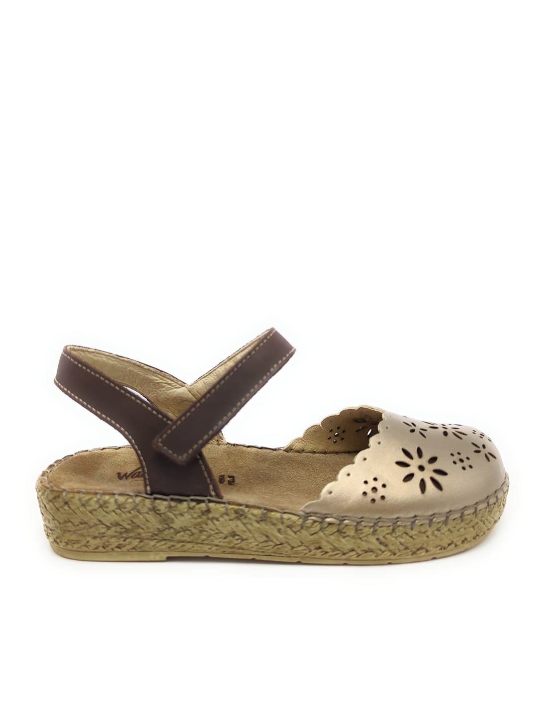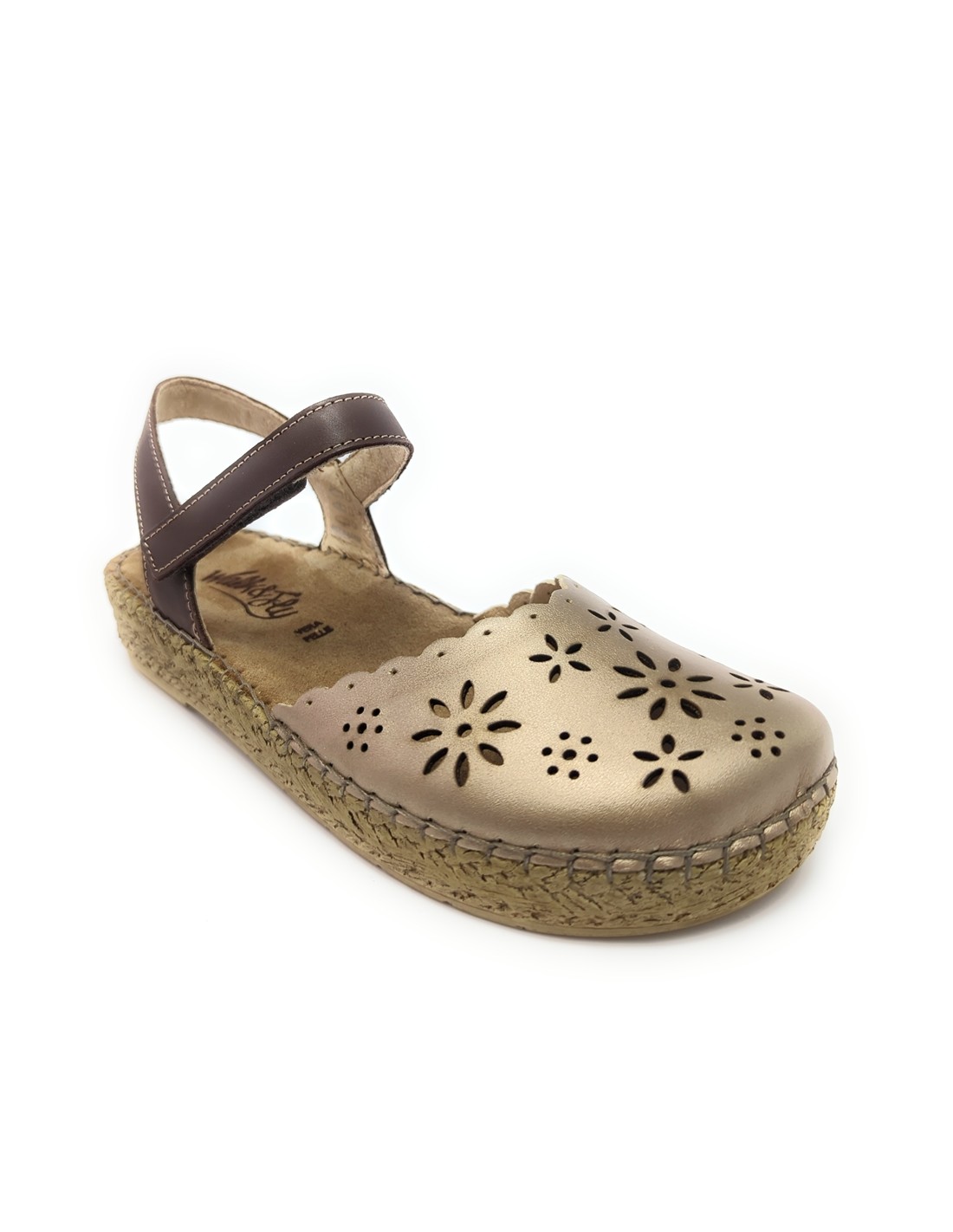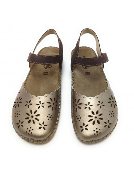 Descripción: Sandalia mujer cerrada punta WALK & FLY 7261-50411 en suave pile platino y tira tobillera con velcro en piel marrón. Forro y plantilla acolchada de gel forrados en piel. Plataforma ligera cosida a mano, flexible con suela antideslizante.