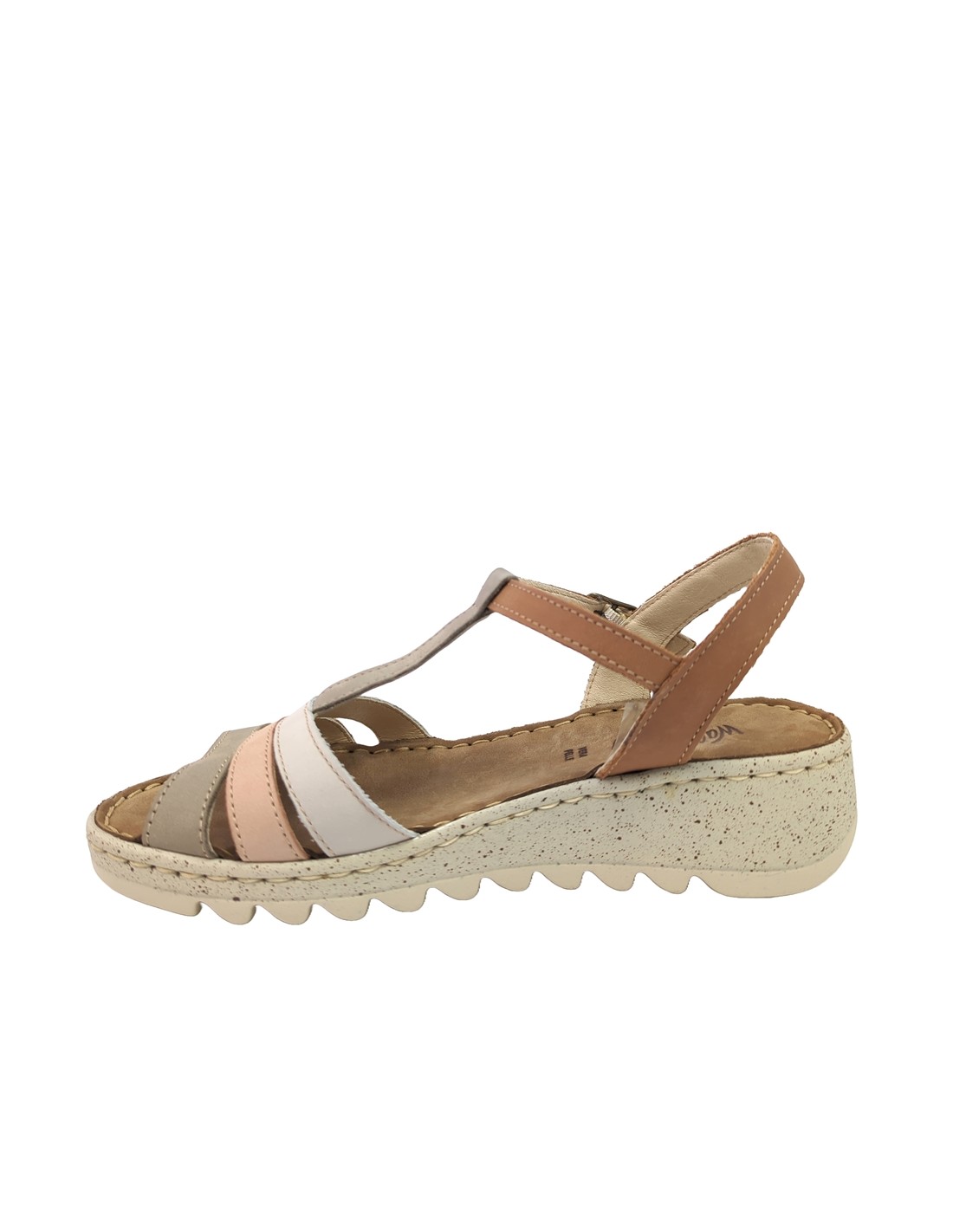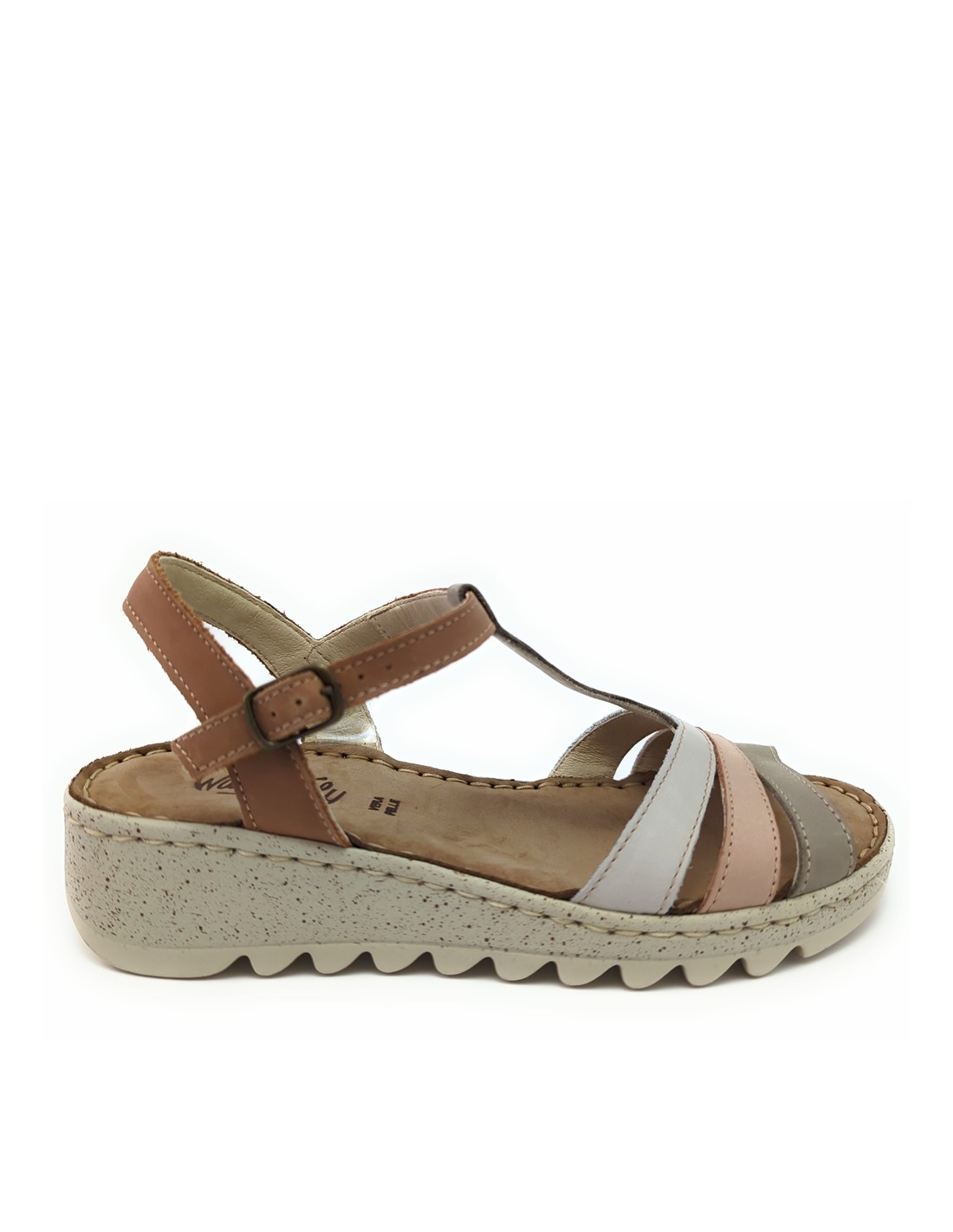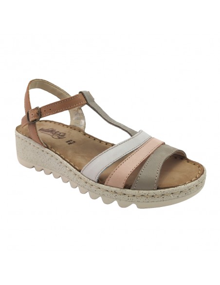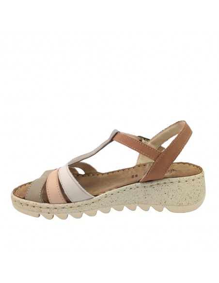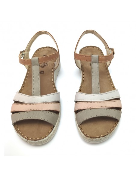 Descripción: Sandalia mujer WALK & FLY 9371-50680 en suave piel natural cuero, ofwhite, beig y gris. Forro y plantilla acolchada de gel forrados en piel. Suela ligera beig cosida a mano para mayor flexibilidad antideslizante.