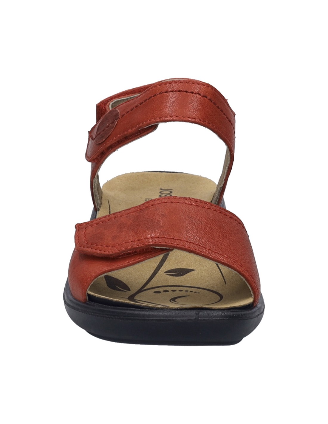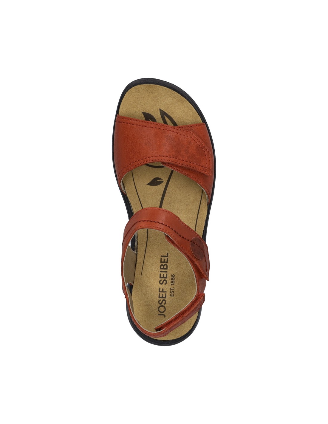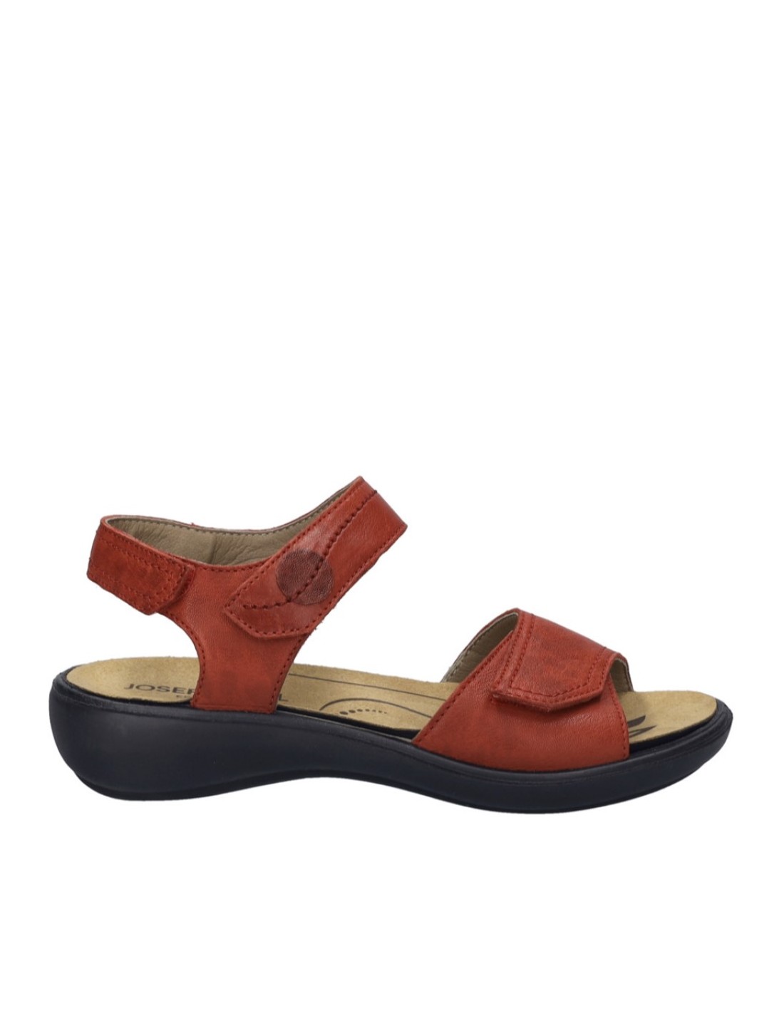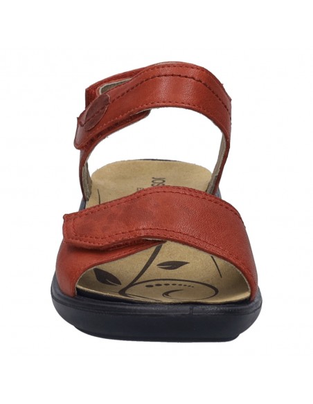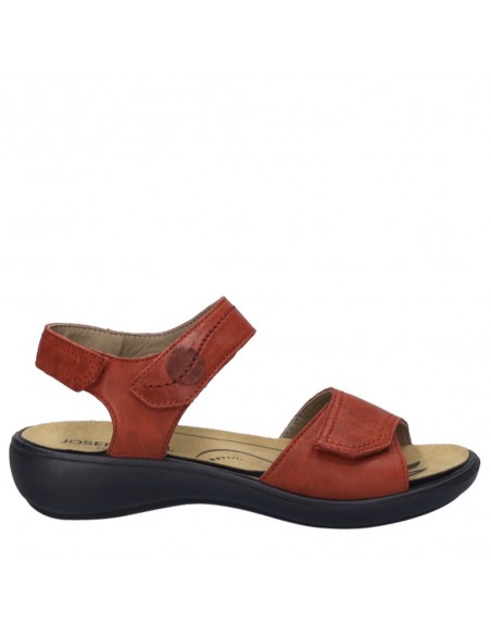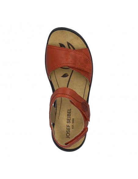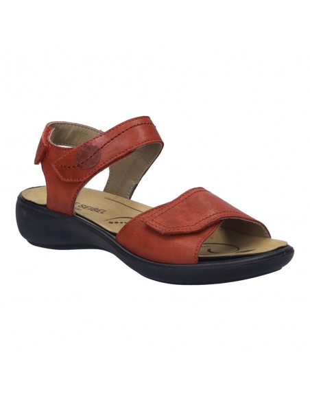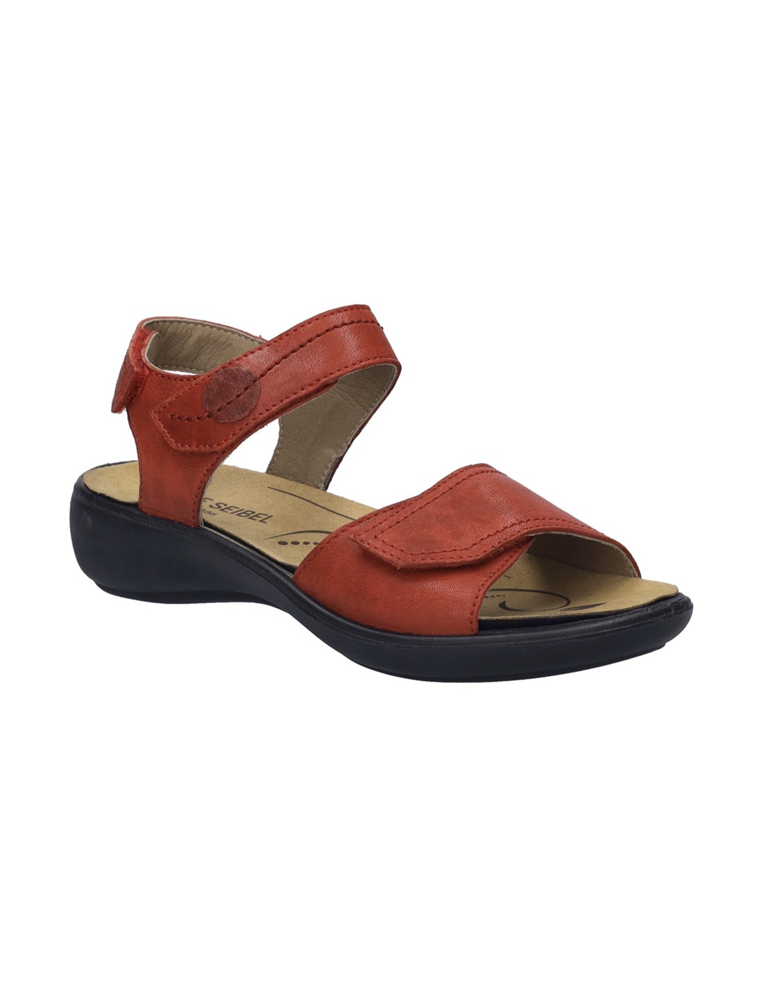 Descripción: Sandalia mujer de Josef Seibel IBIZA-79 en suave piel roja. Ajuste con velcros. Planta anatómica extraible. Piso de poliuretano inyectado ligero y con dibujo antideslizante.
