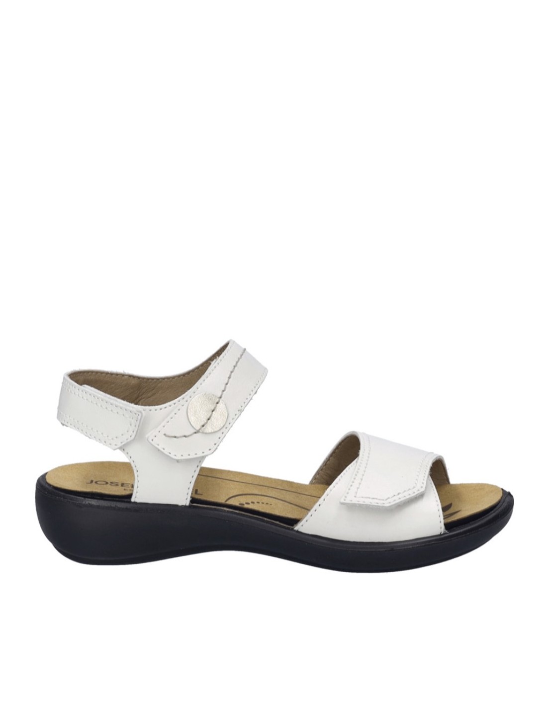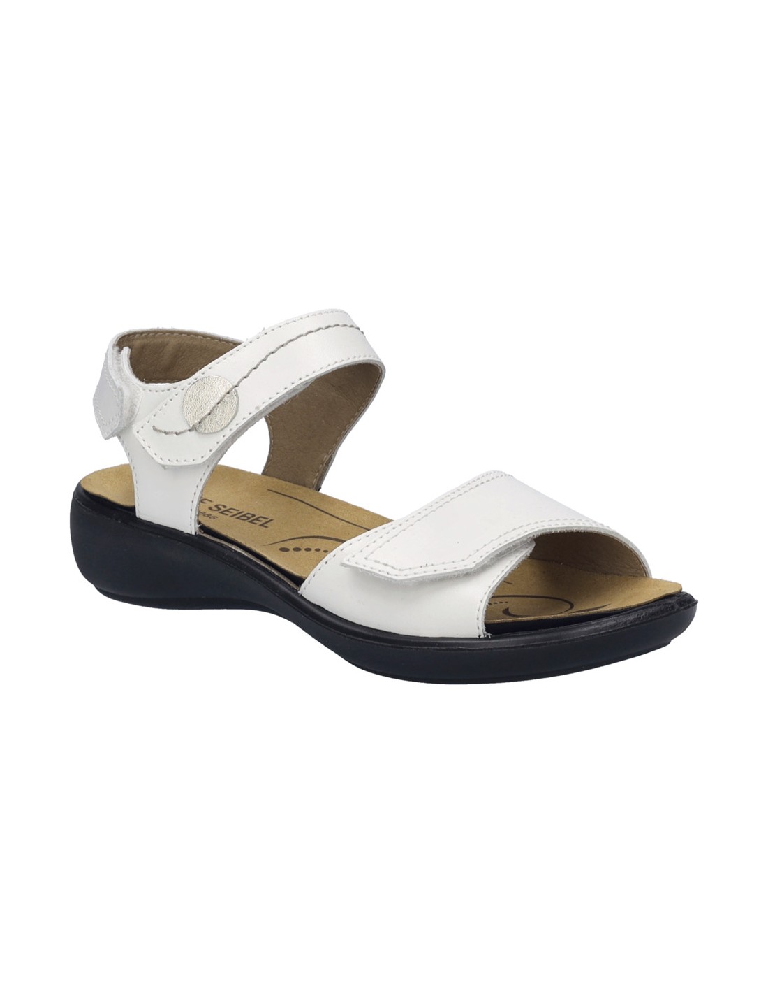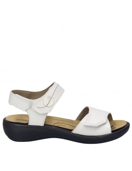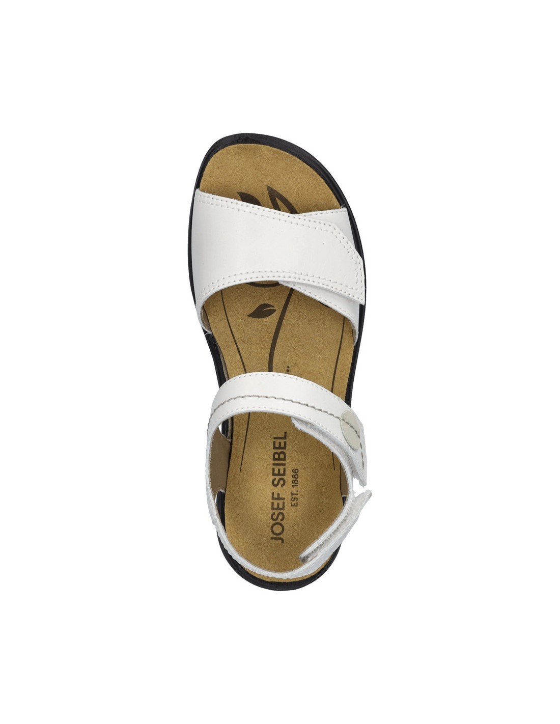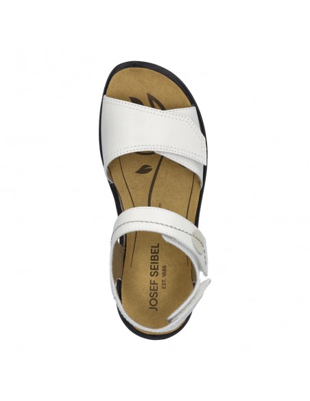 Descripción: Sandalia mujer de Josef Seibel IBIZA-79 en suave piel blanca. Ajuste con velcros. Planta anatómica extraible. Piso de poliuretano inyectado ligero y con dibujo antideslizante.
