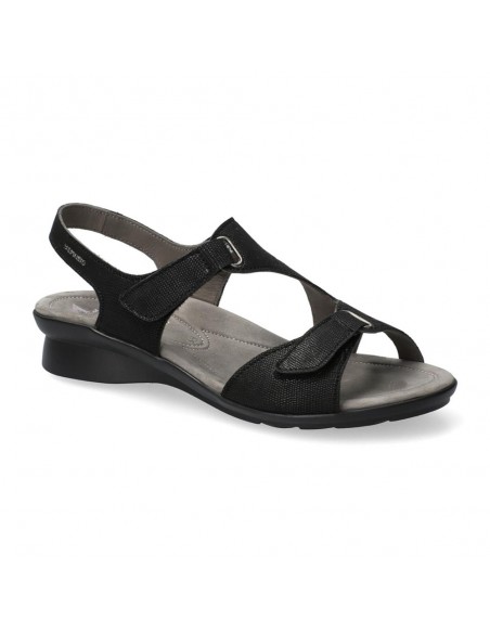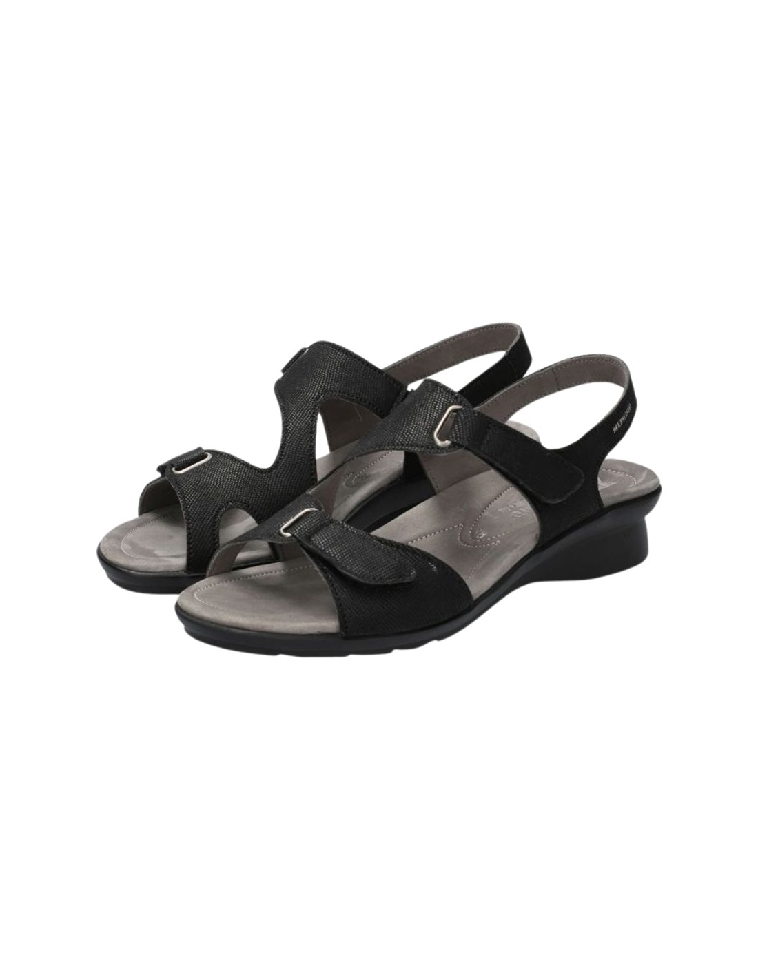 Descripción: Sandalia mujer Mephisto Paris en suave nubuck negro con ajuste de velcro. Plantilla anatómica suave, ideal para pies frágiles y sensibles. Piso de TR ligero flexible y antideslizante.