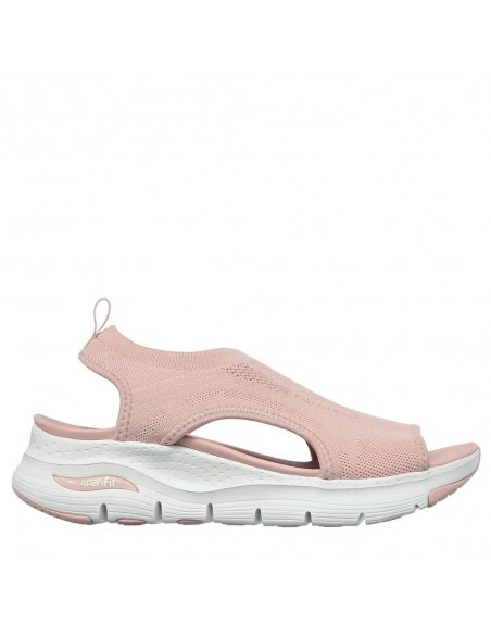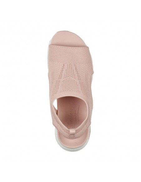 Descripción: Sandalia de mujer Skechers ARCH FIT SANDAL CITY CATCH en suave tejido rosa adaptable. Con entre suela de aire amortiguadora. Plantilla Arch Fit, con más ajuste en el arco ofreciendo más estabilidad.