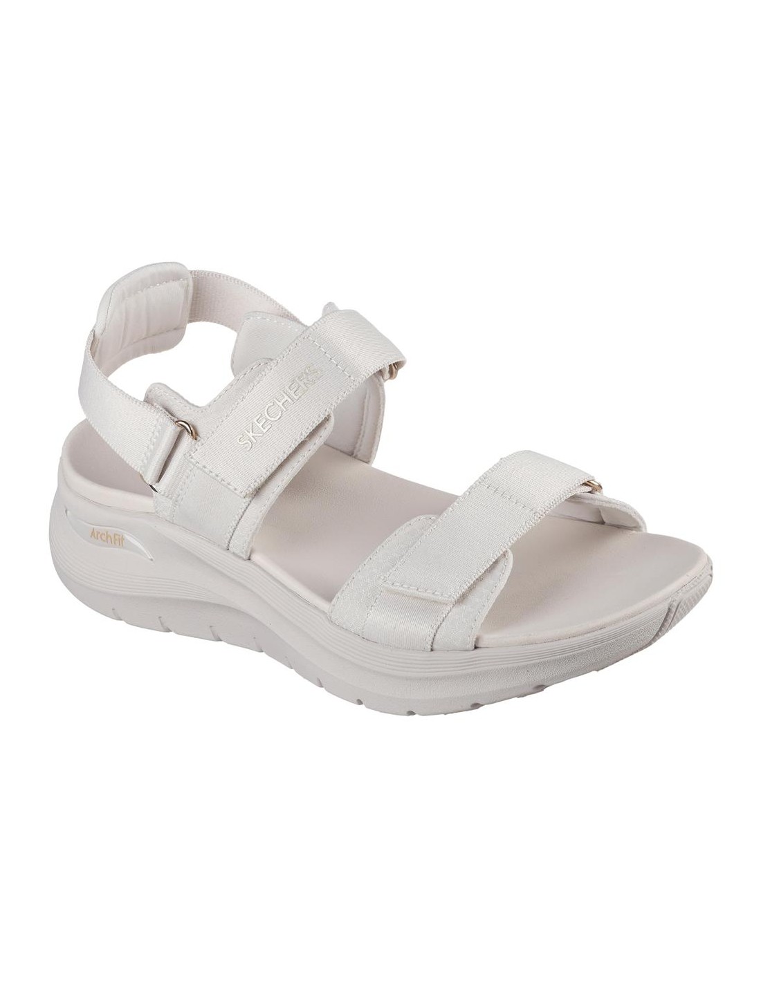 Descripción: Sandalia de mujer Skechers ARCH FIT SANDAL 2.0 en suaves tiras anchas de lona ofwite con ajustes de velcro. Plantilla Arch Fit, con más ajuste en el arco ofreciendo más estabilidad. Piso antideslizante Y amortiguador.