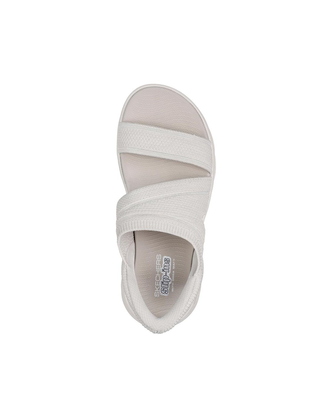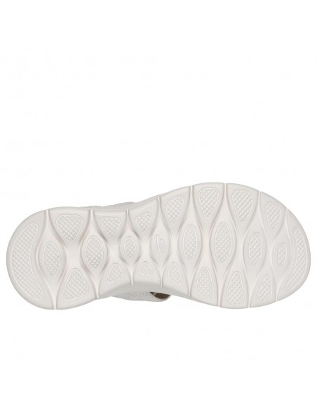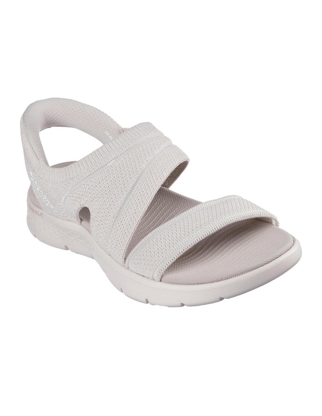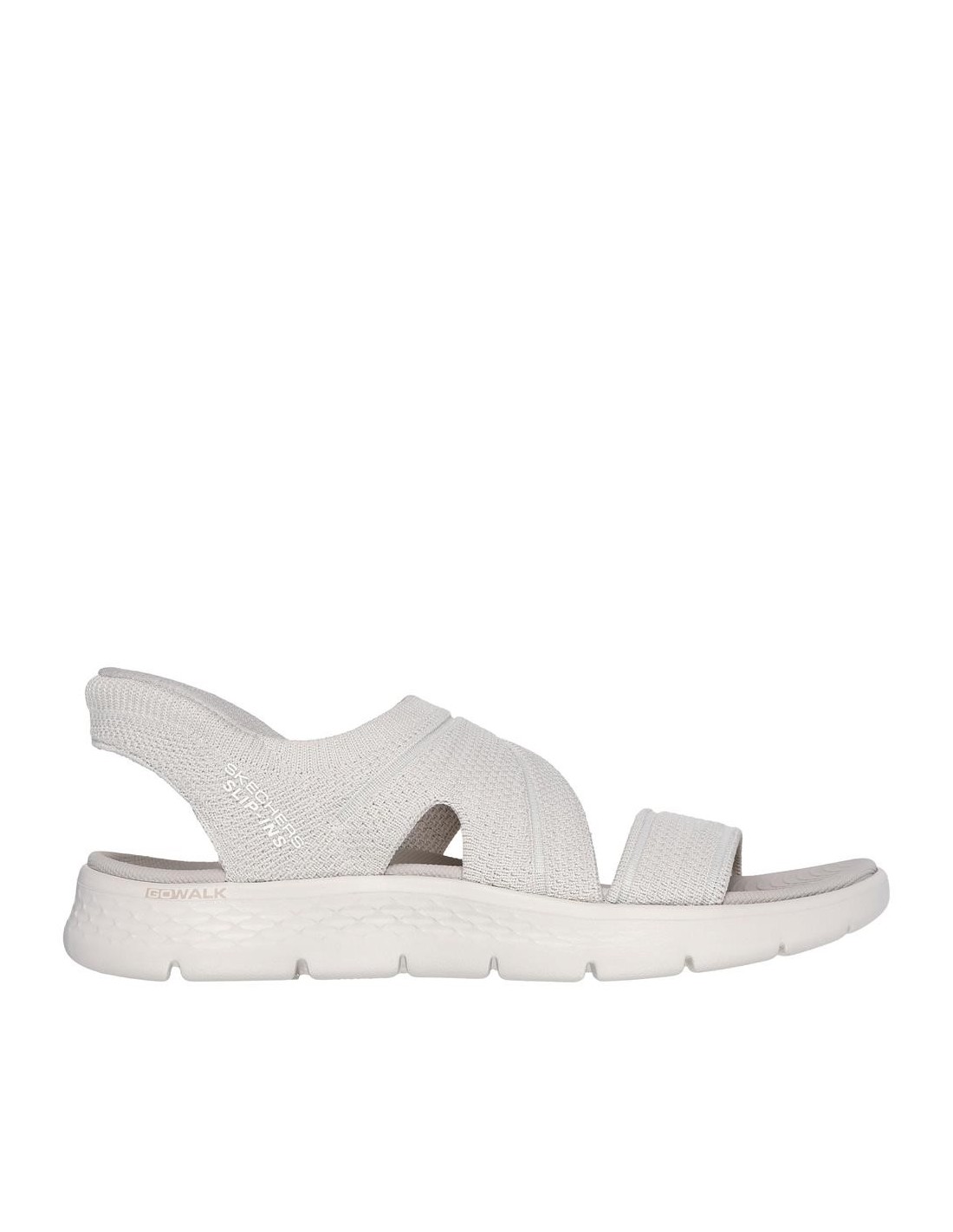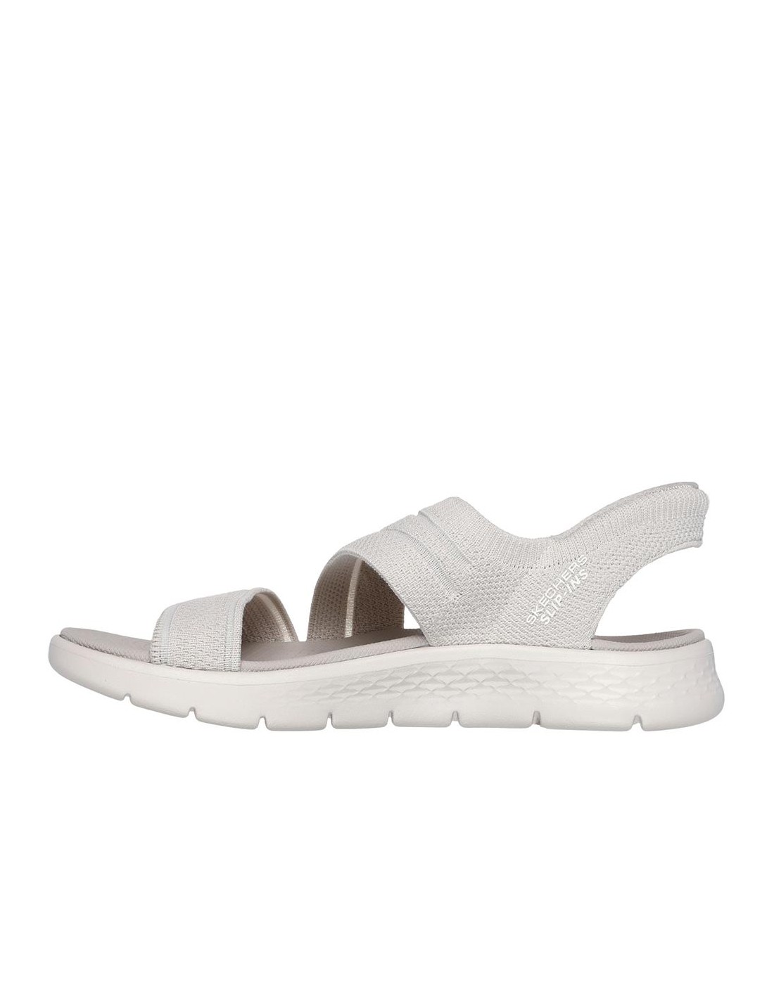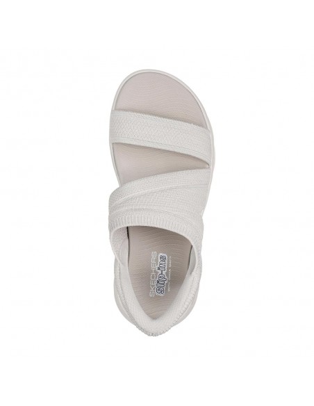 Descripción: Sandalia de mujer Skechers SLIP-INS GO WALK FLEX SANDAL ENTICING en suave tejido beig y ajustes con velcro. Skechers Hands Free Slip-ins® Sistema Heel Pillow para calzar sin manos. Planilla Ultra Go® amortiguadora.