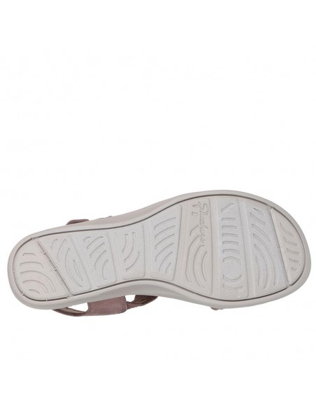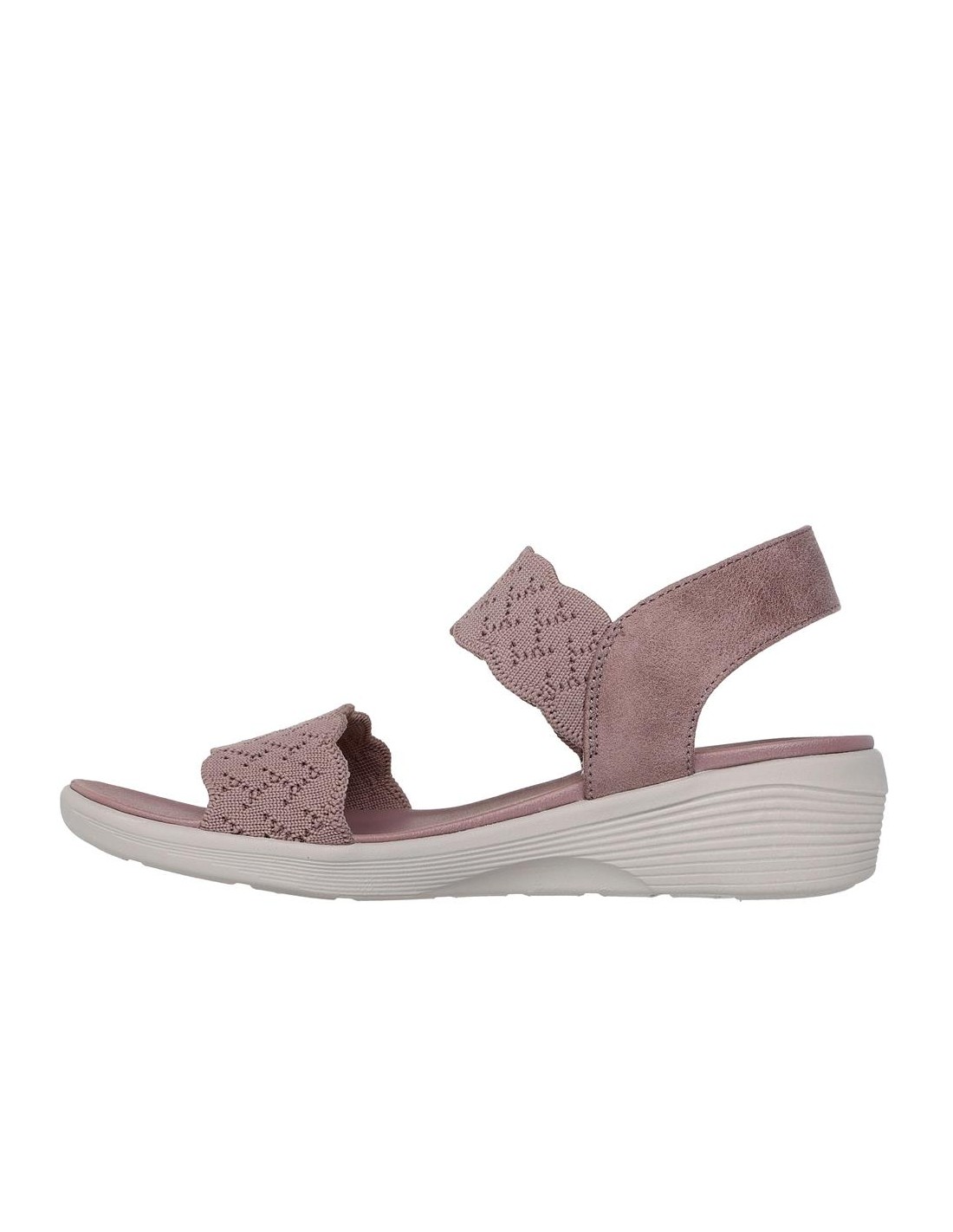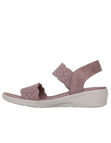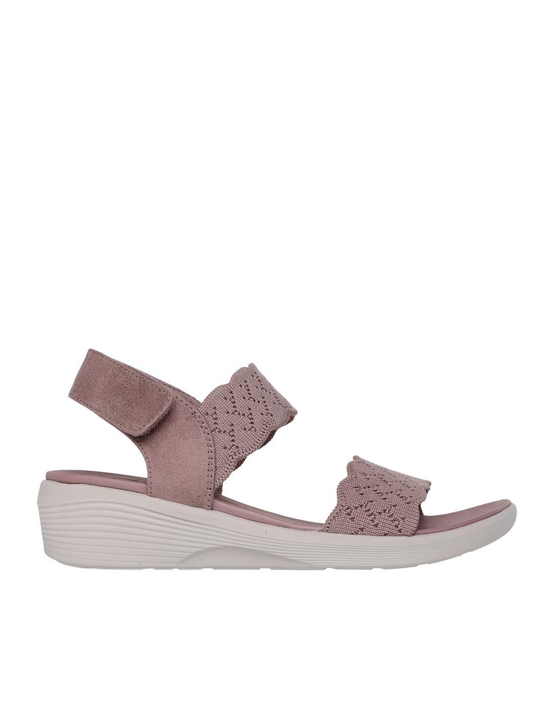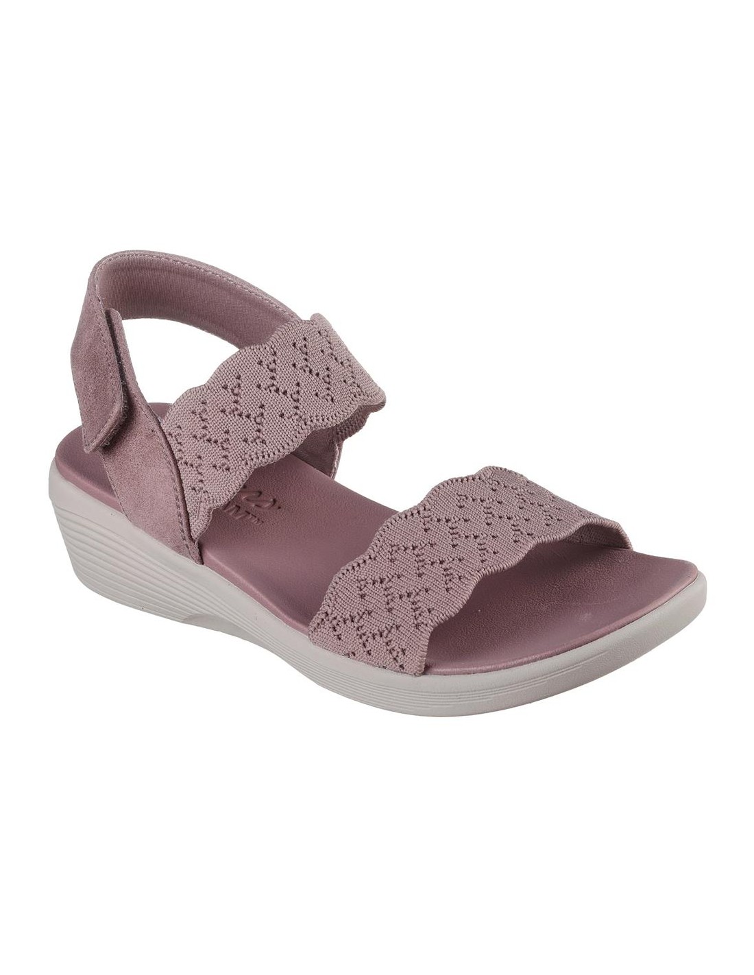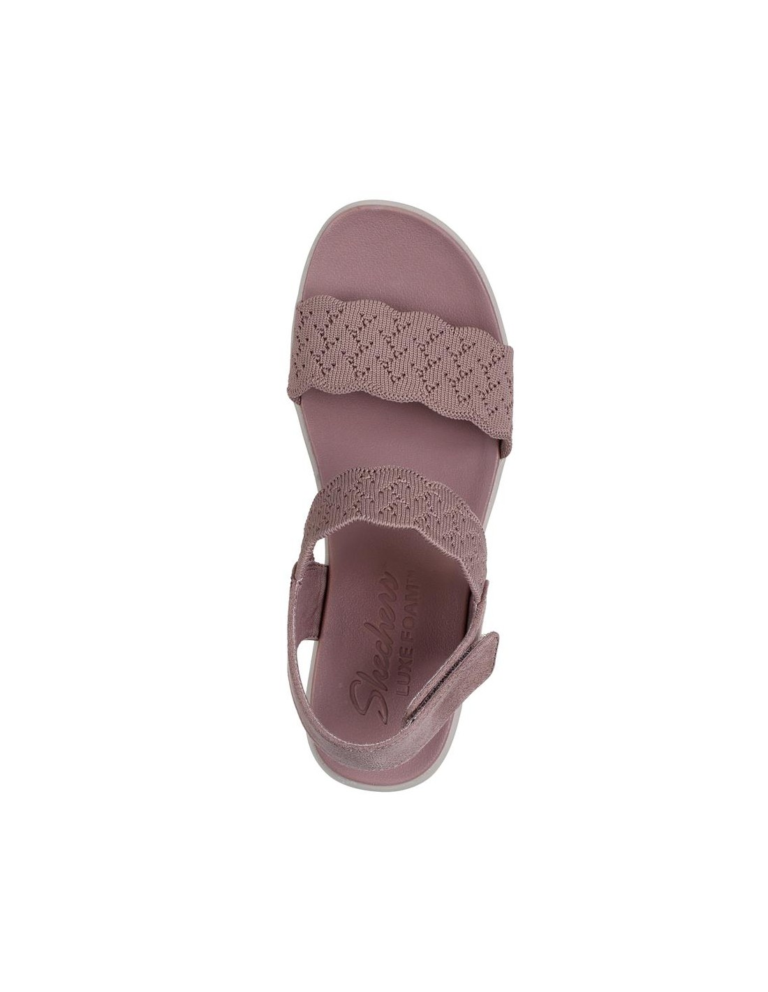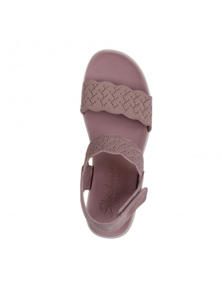 Descripción: Sandalia de mujer Skechers ARYA ON THE RISE de tiras tejido malva de tejido knit texturizado Stretch Fit® ajustable con velcro en el talón. plantilla con amortiguación Skechers Air-Cooled Memory Foam®
