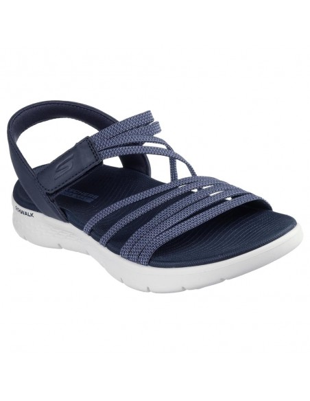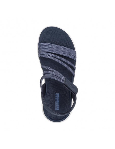 Descripción: Sandalia sport mujer SKECHERS GO WALK FLEX SANDAL - EMMA en suaves tiras elásticas azules. Ajuste velcro. Plantilla Goga Mat® y entresuela ULTRA GO® con retención de memoria amortiguadora.