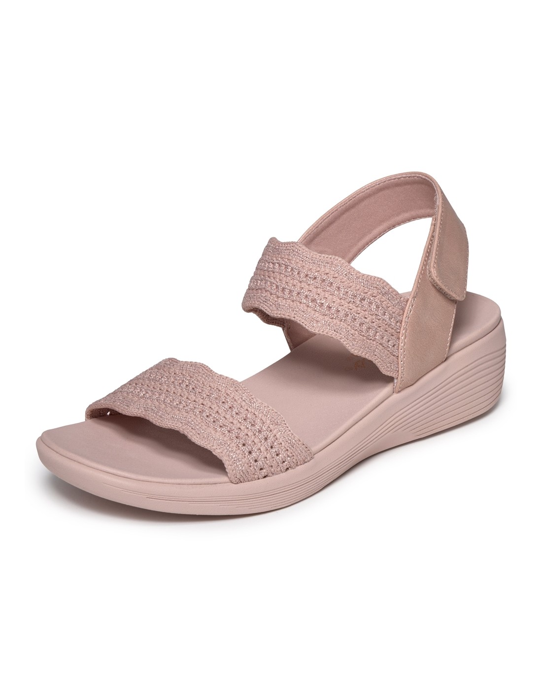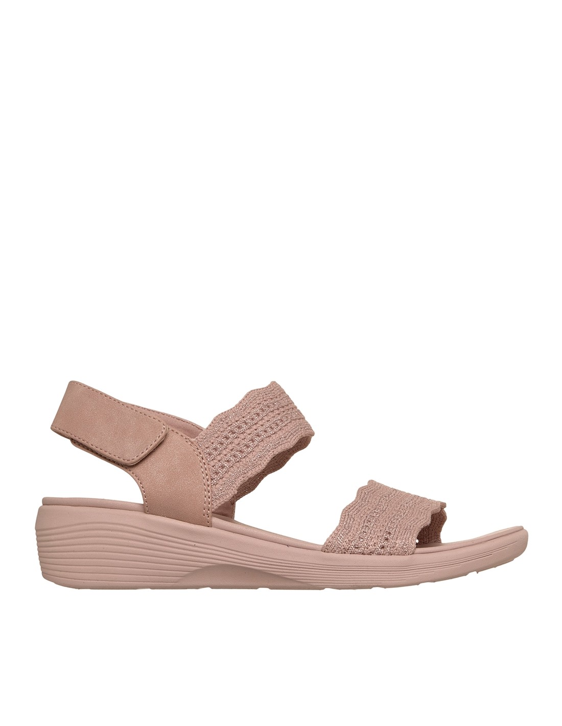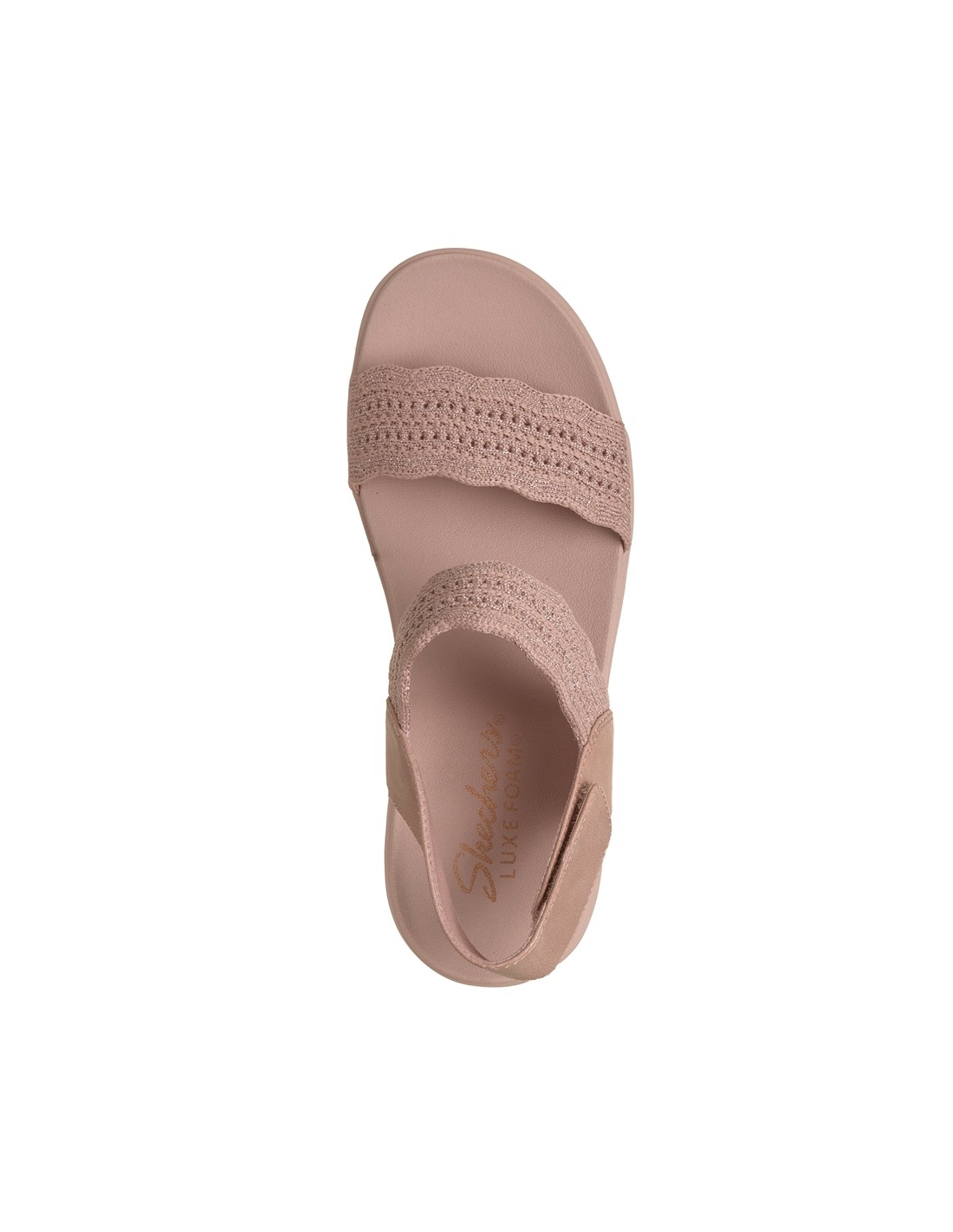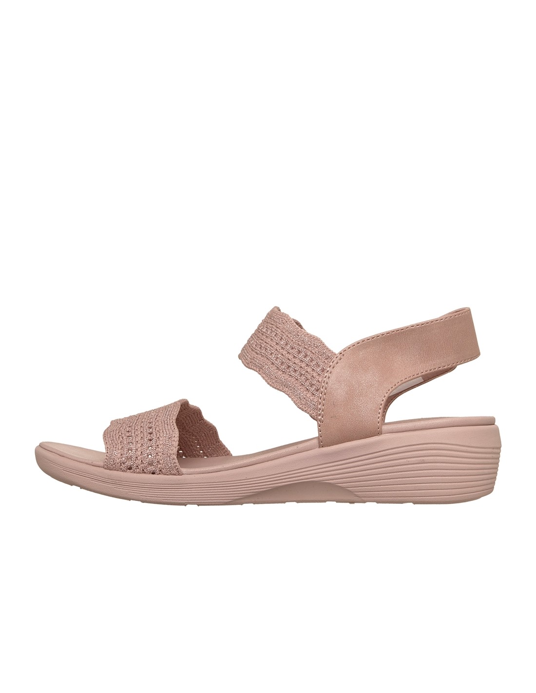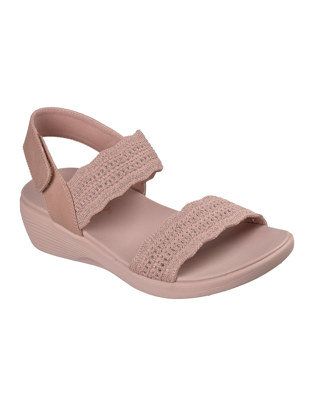 Descripción: Sandalia de mujer Skechers ARYA FAVORITE FINDSE en tiras tejido rosa de knit texturizado Stretch Fit® ajustable con velcro en el talón. Plantilla amortiguadora Luxe Foam, cómoda todo el día.