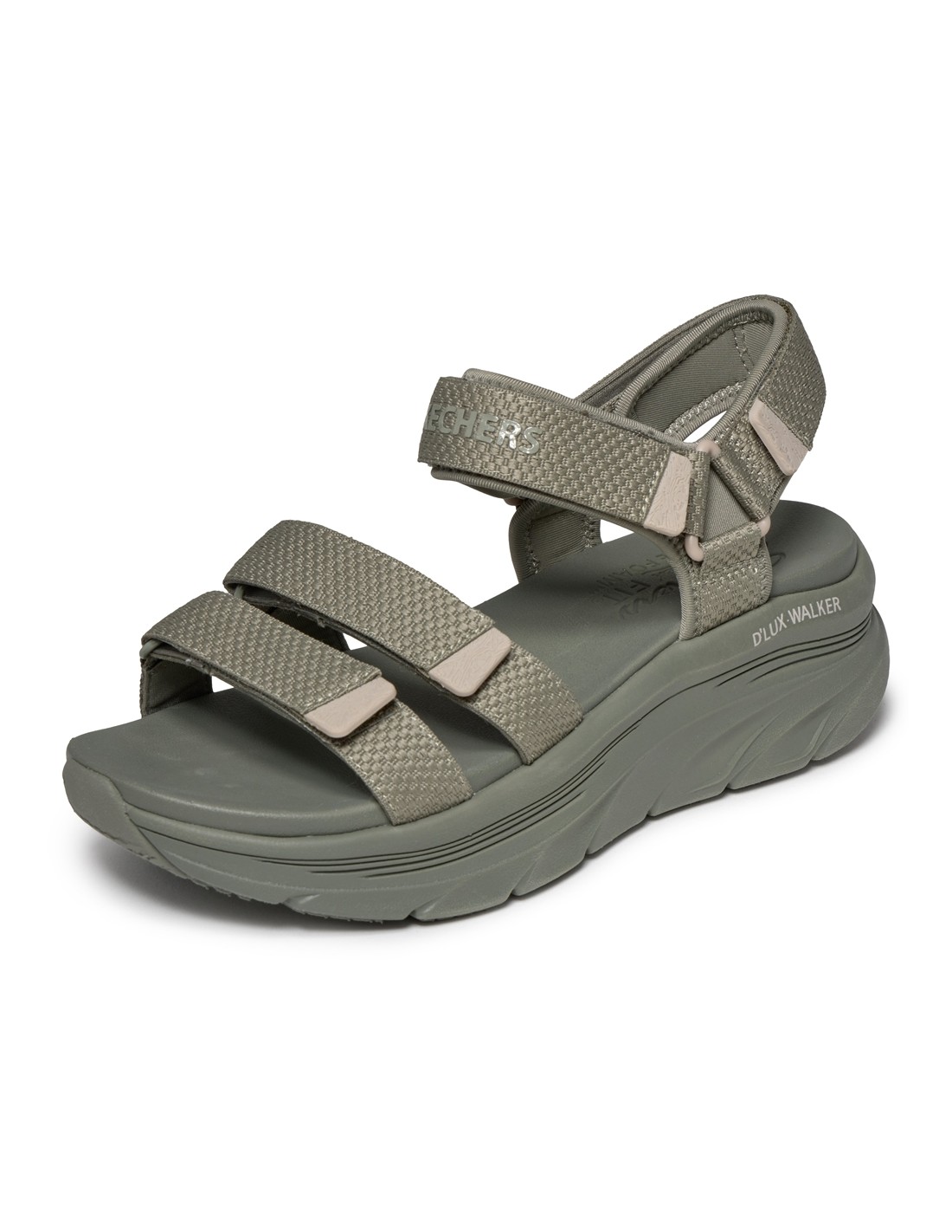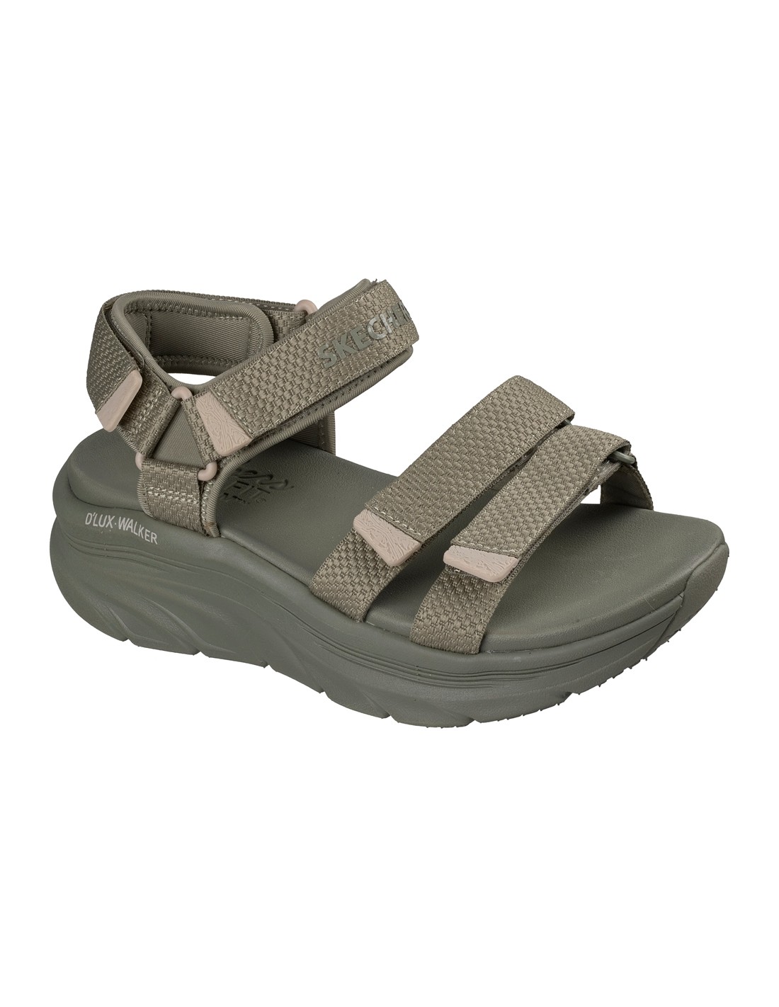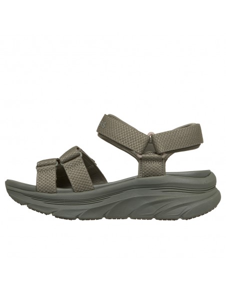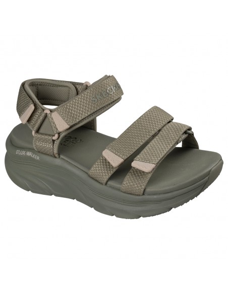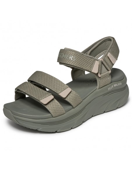 Descripción: Sandalia mujer Skechers D'LUX WALKER SANDAL SEA-SCAPE de tejido kaki ajustable con velcro. Más espacio con Relaxed Fit. Plataforma Lux Foam diseñada para pasear con flexibilidad y amortiguación todo el día.