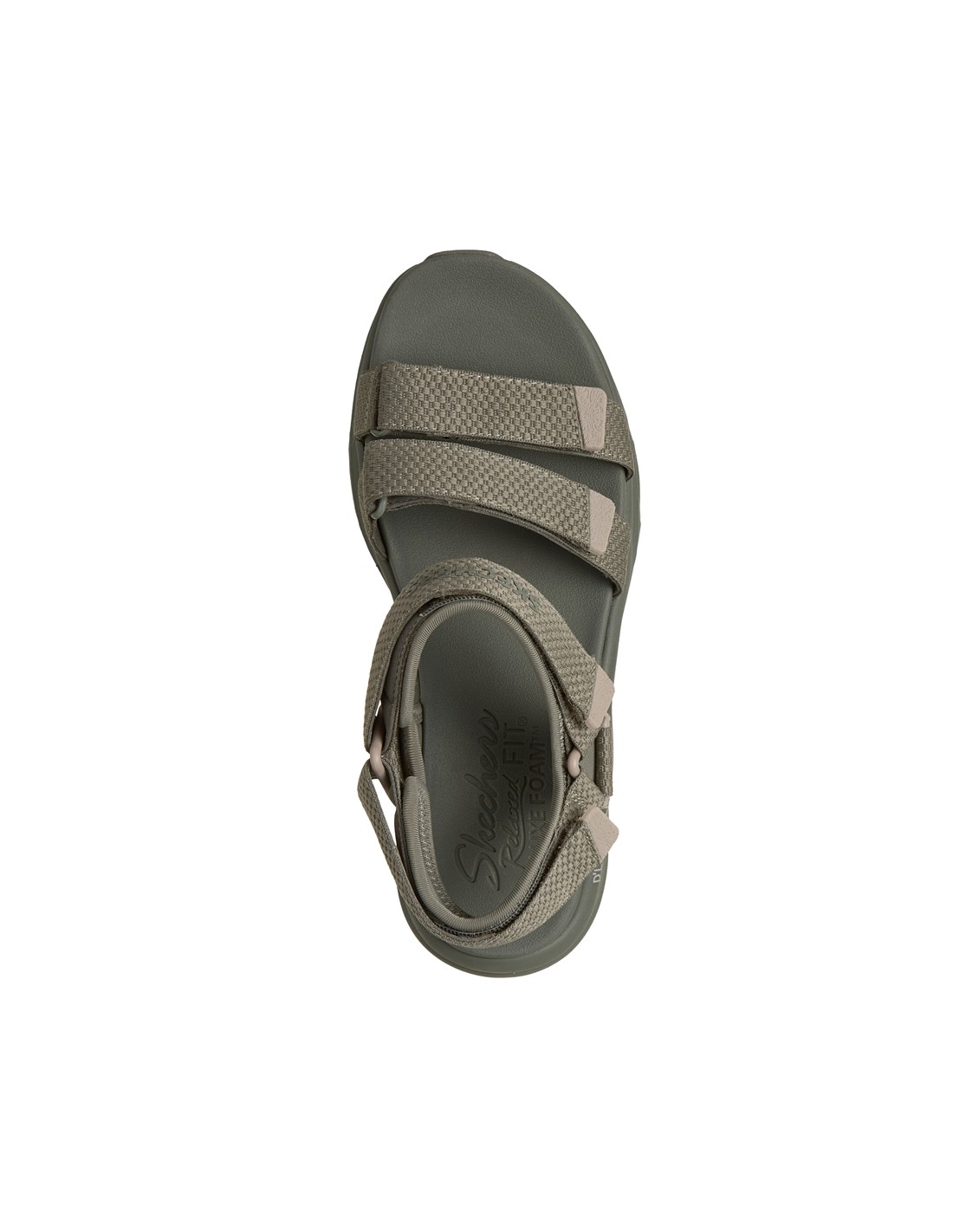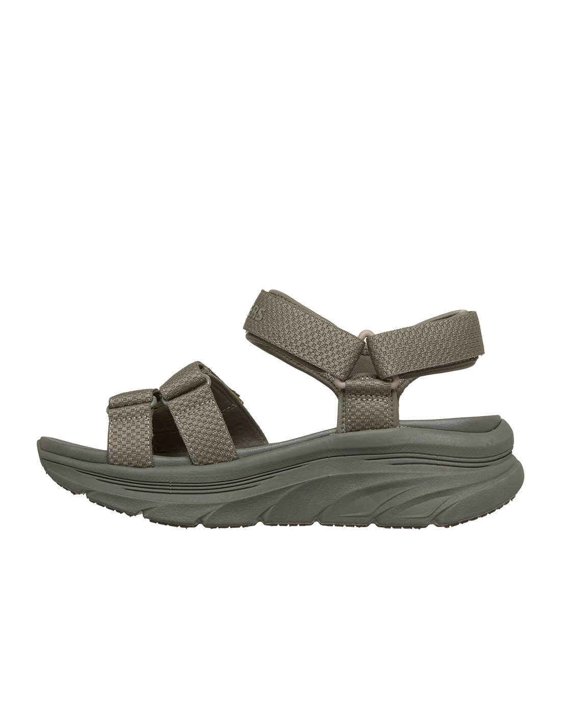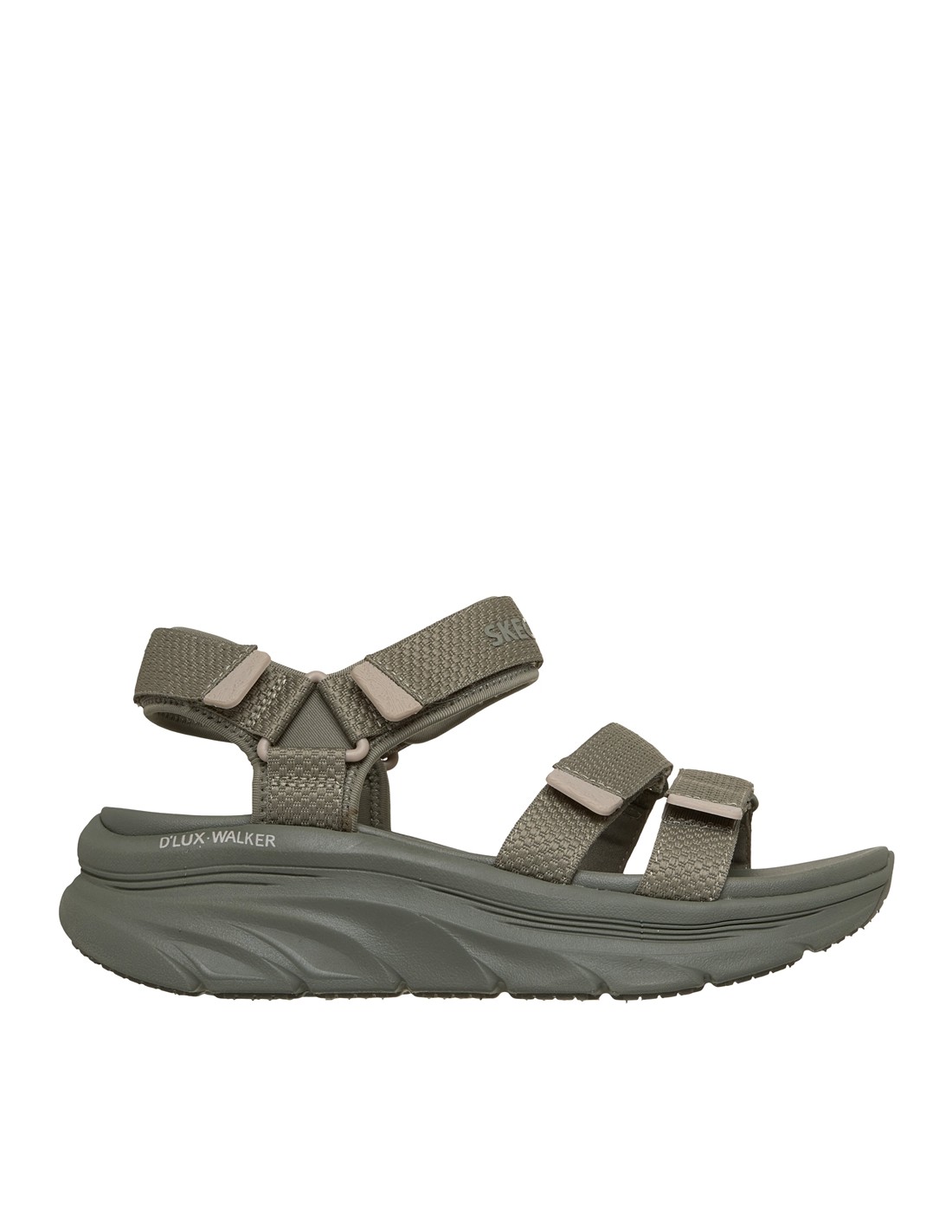 Descripción: Sandalia mujer Skechers D'LUX WALKER SANDAL SEA-SCAPE de tejido kaki ajustable con velcro. Más espacio con Relaxed Fit. Plataforma Lux Foam diseñada para pasear con flexibilidad y amortiguación todo el día.