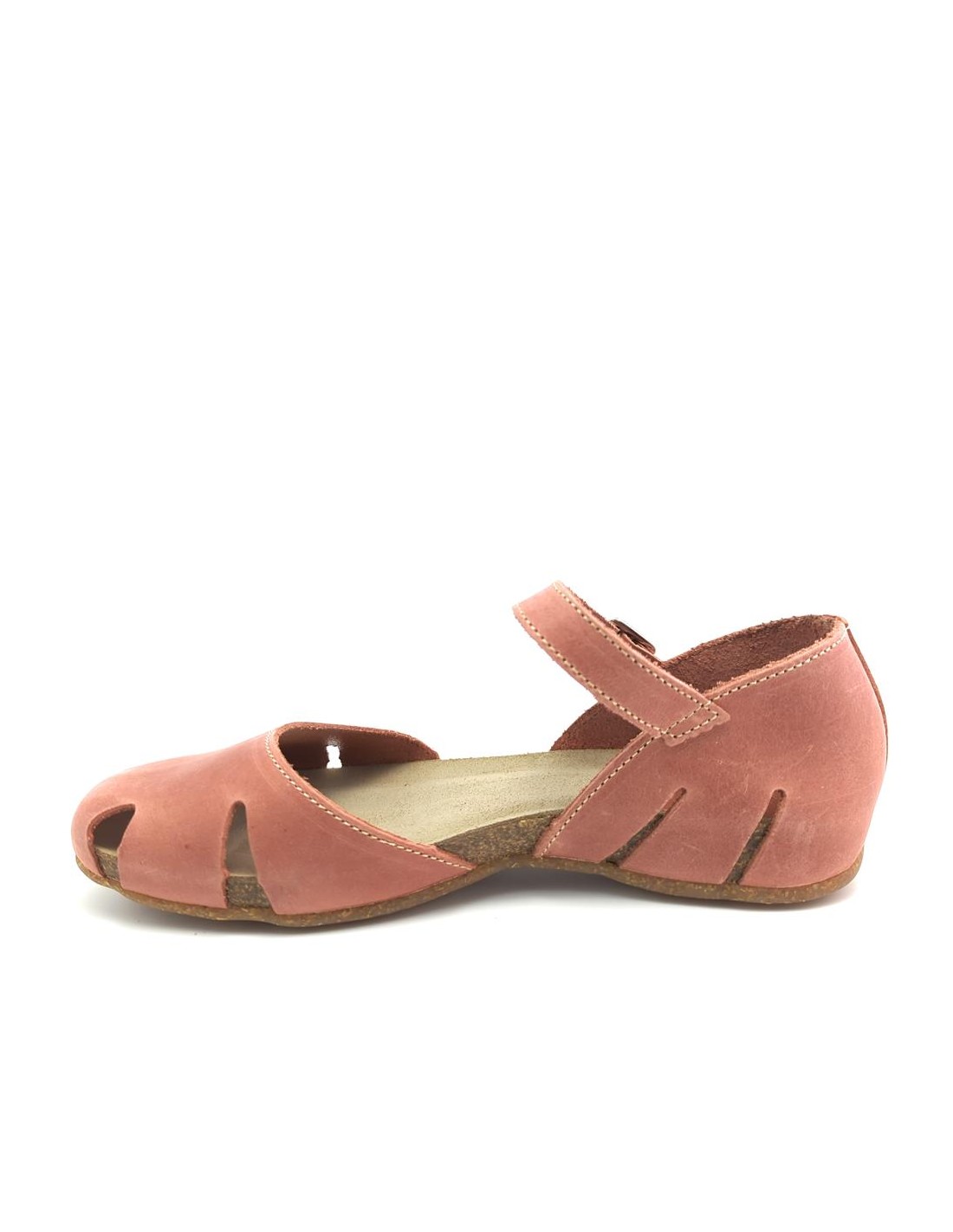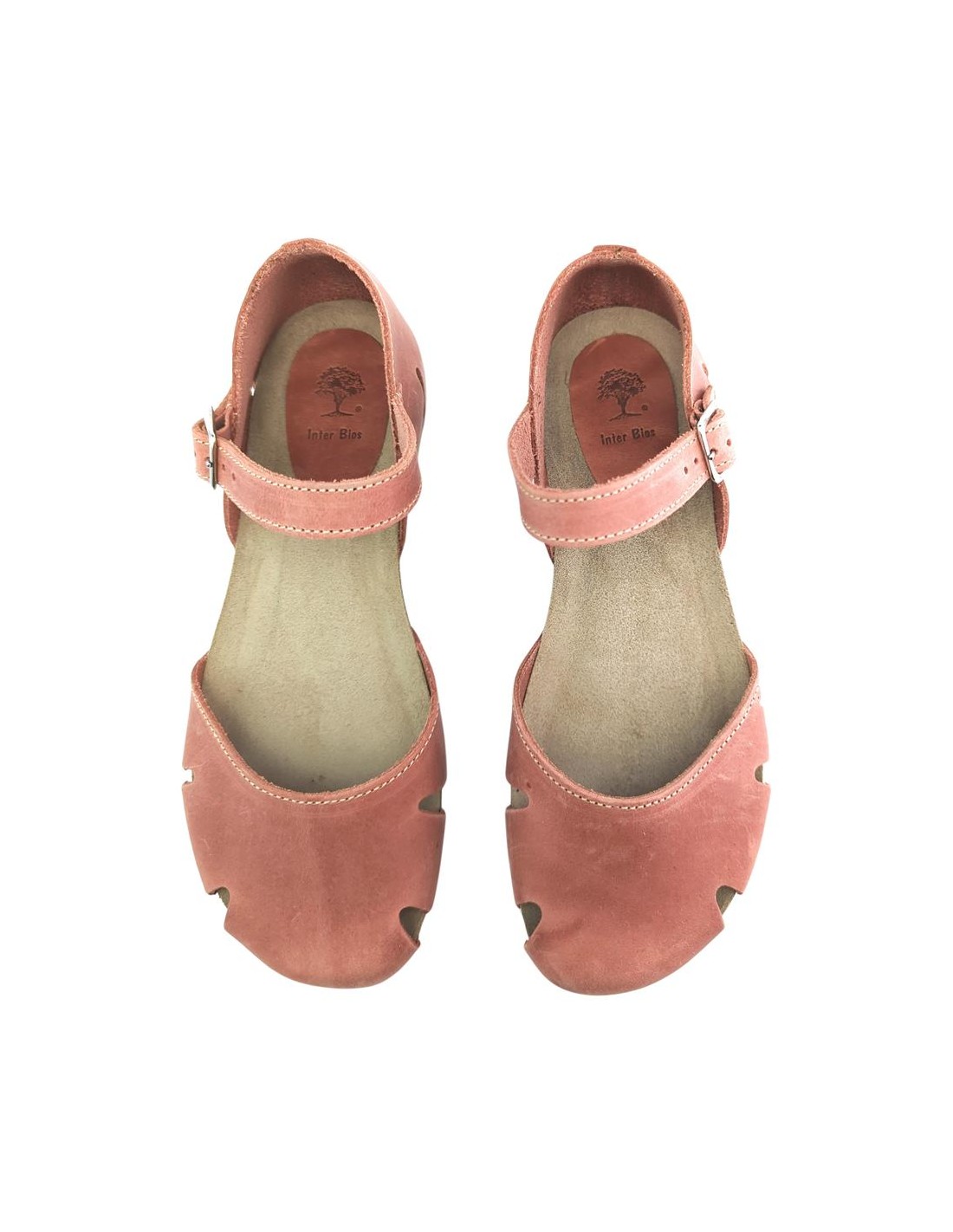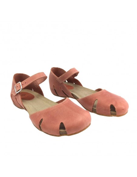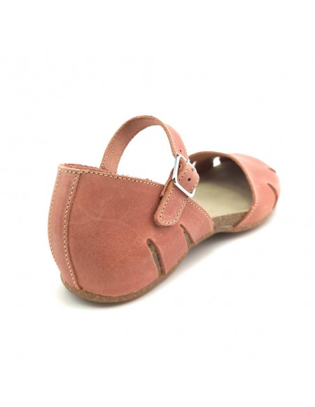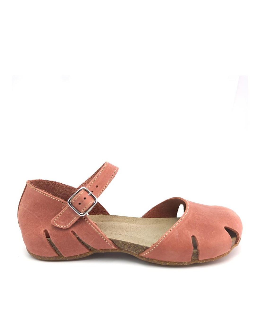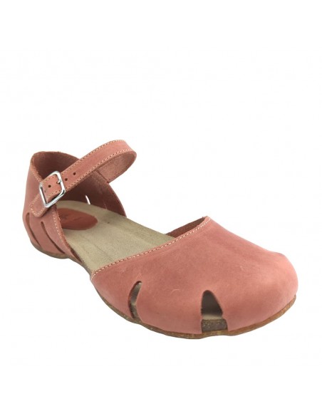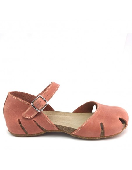 Descripción: Sandalia mujer INTERBIOS 4449 cerrada de la punta, con talonera y ajuste de tira con hebilla en piel natural tono teja. Cómoda planta anatómica en piel estilo BIO. Piso de goma antideslizante.