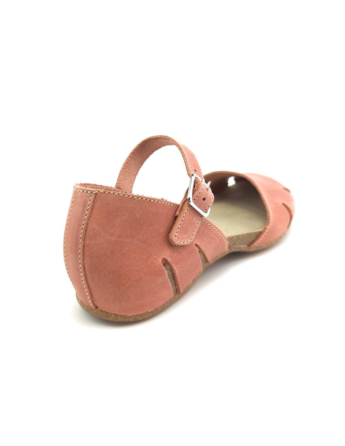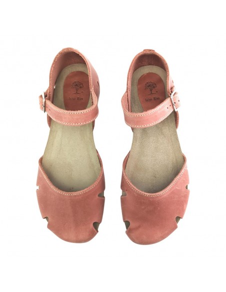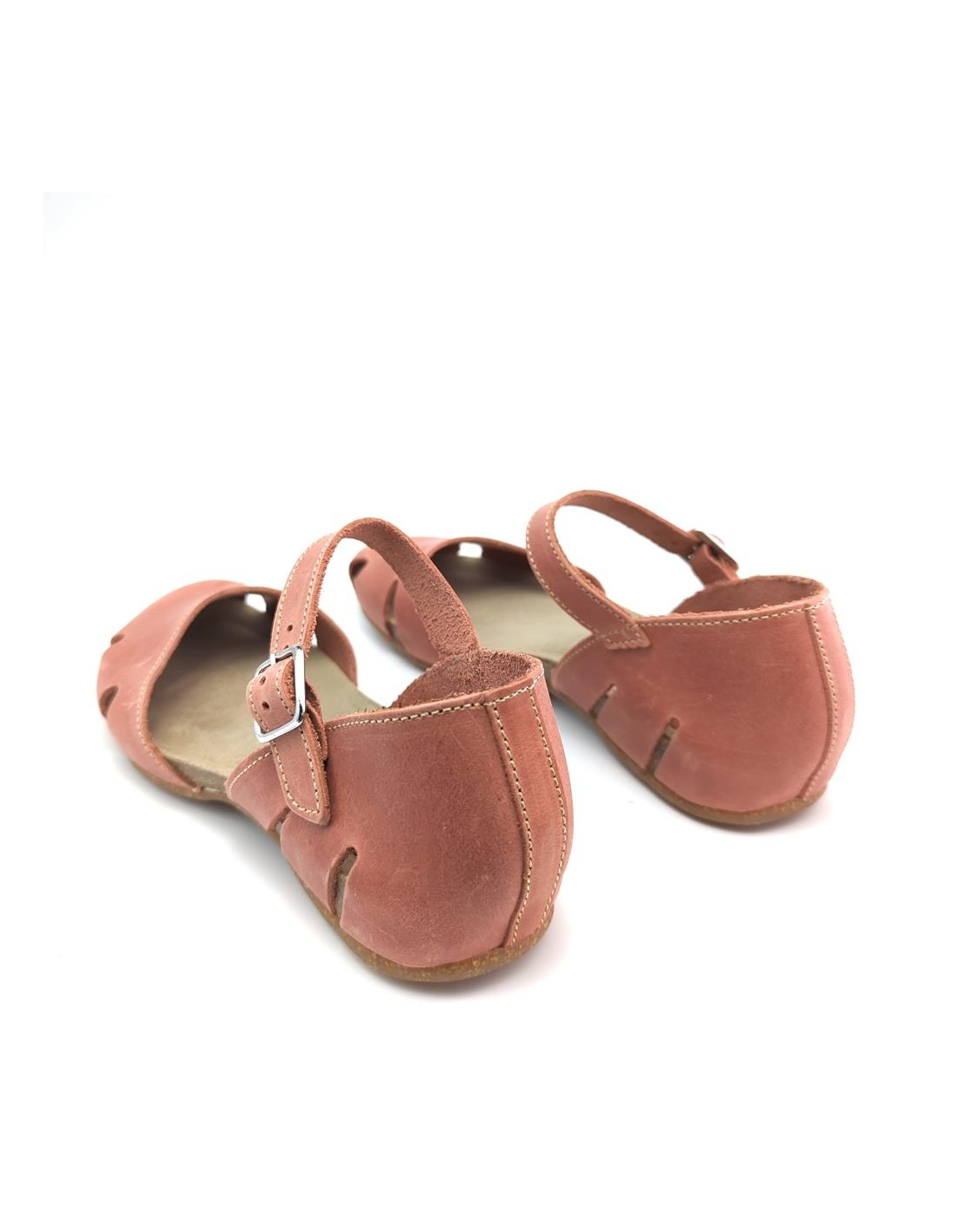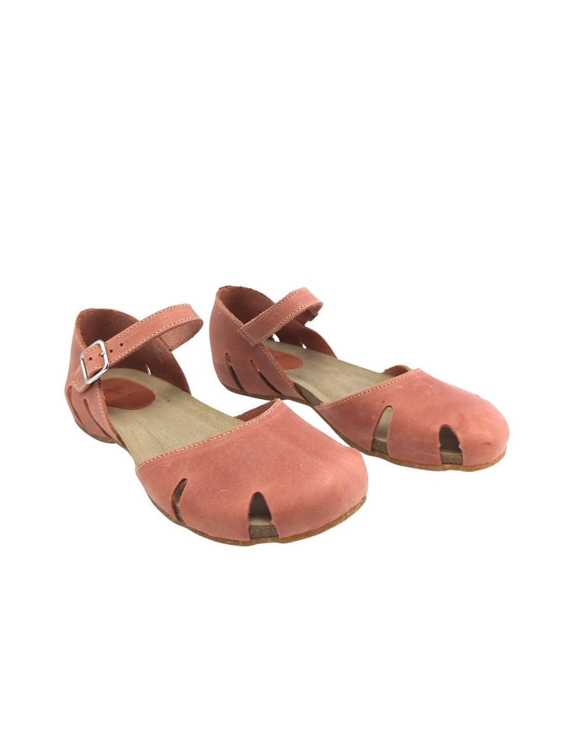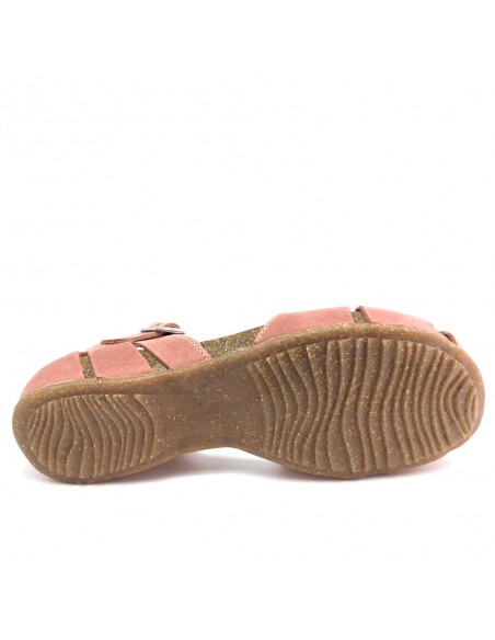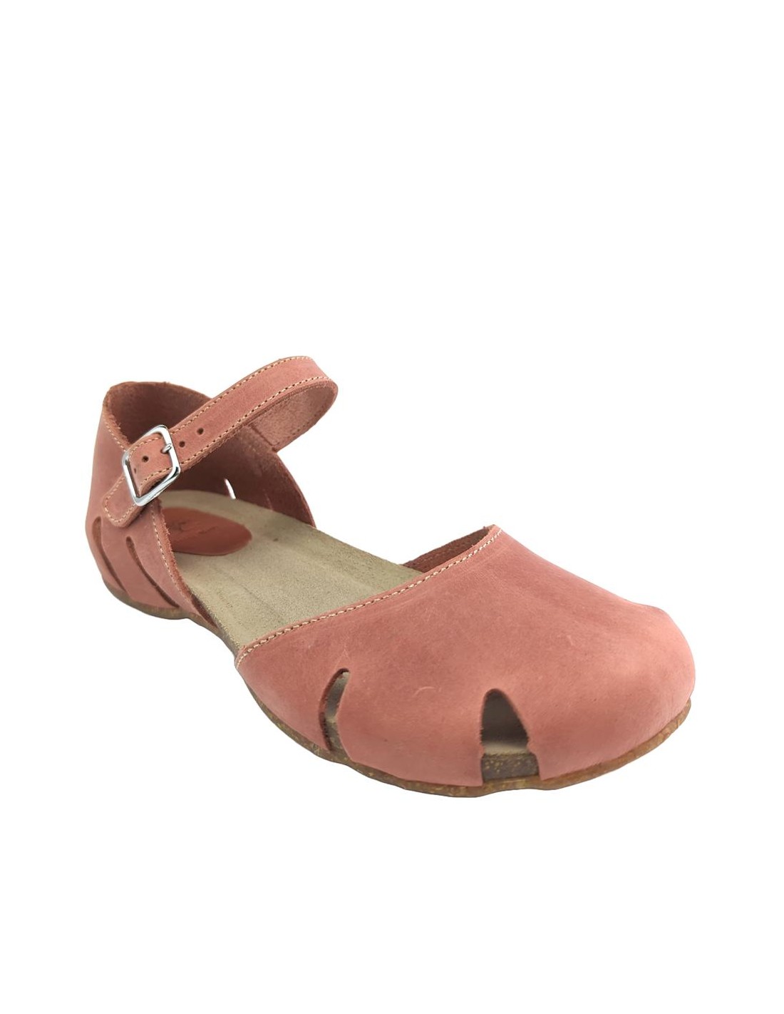 Descripción: Sandalia mujer INTERBIOS 4449 cerrada de la punta, con talonera y ajuste de tira con hebilla en piel natural tono teja. Cómoda planta anatómica en piel estilo BIO. Piso de goma antideslizante.