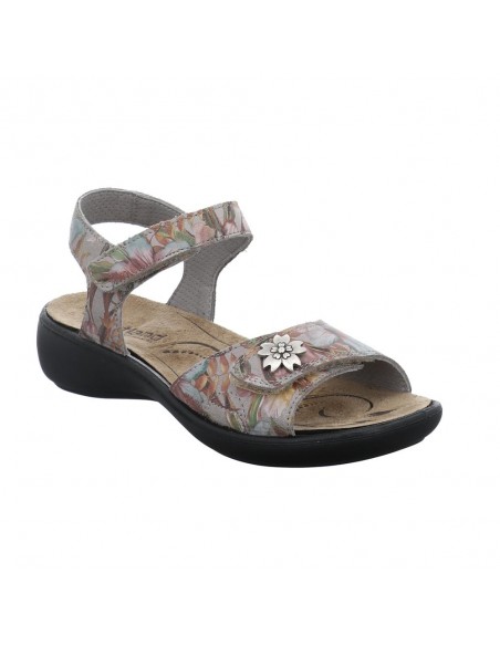 Descripción: Sandalia mujer Westland by Josef Seibel (nueva Romika) Ibiza-115 en piel estampada gris y detalle de pedrería. Tiras ajustables con velcro. Plantilla extraible anátomica. Cómoda cuña ligera y flexible