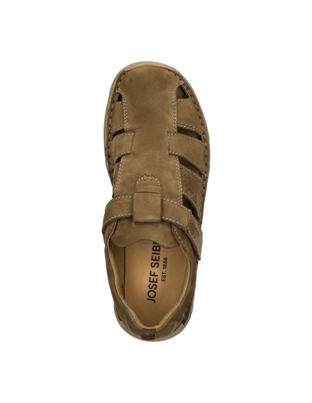 Descripción: Sandalia cerrada de hombre LIAM-04 de Josef Seibel en suave nubuck camel. Cómoda planta anatómica móvil en piel. Piso cosido a mano de espuma de poliuretano súper ligero, flexible y antideslizante.