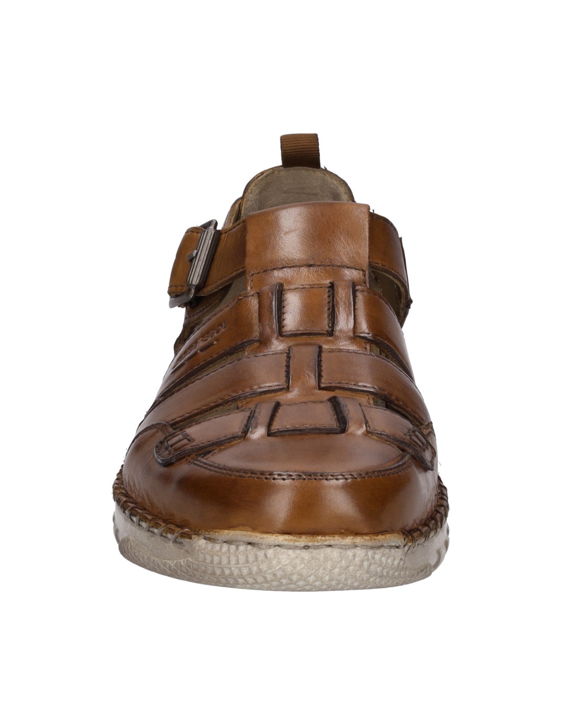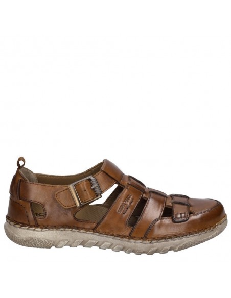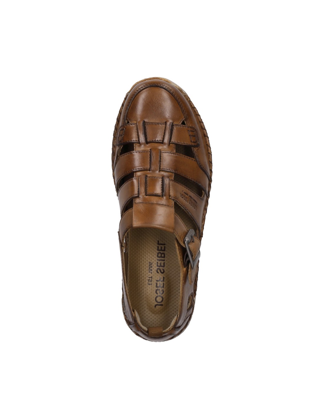 Descripción: Sandalia cerrada de hombre WILSON-08 DE Josef Seibel en suave piel tono cuero. Cómoda planta anatómica móvil en piel. Piso cosido a mano de espuma de poliuretano súper ligero, flexible y antideslizante.
