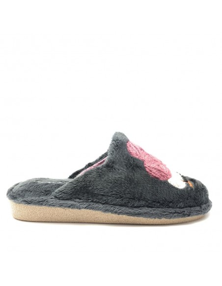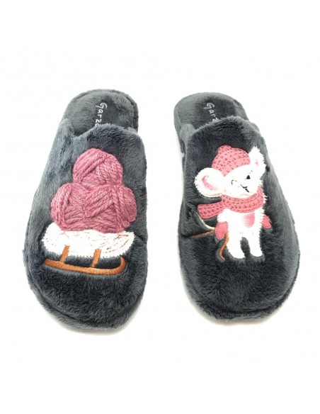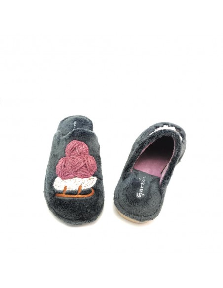 Descripción: Zapatilla mujer para casa de Garzon 261 TRINEO. En suave tejido antracita y cálido forro. Suela de Microporoso especial parquet ligera que no deja marca. Cómoda y duradera. Lavable a 30º